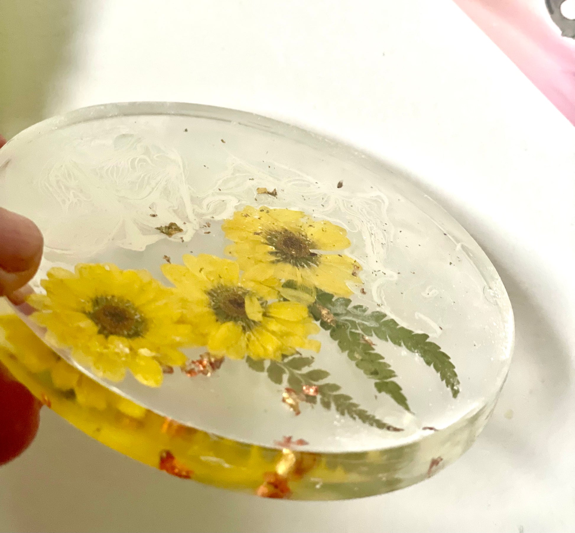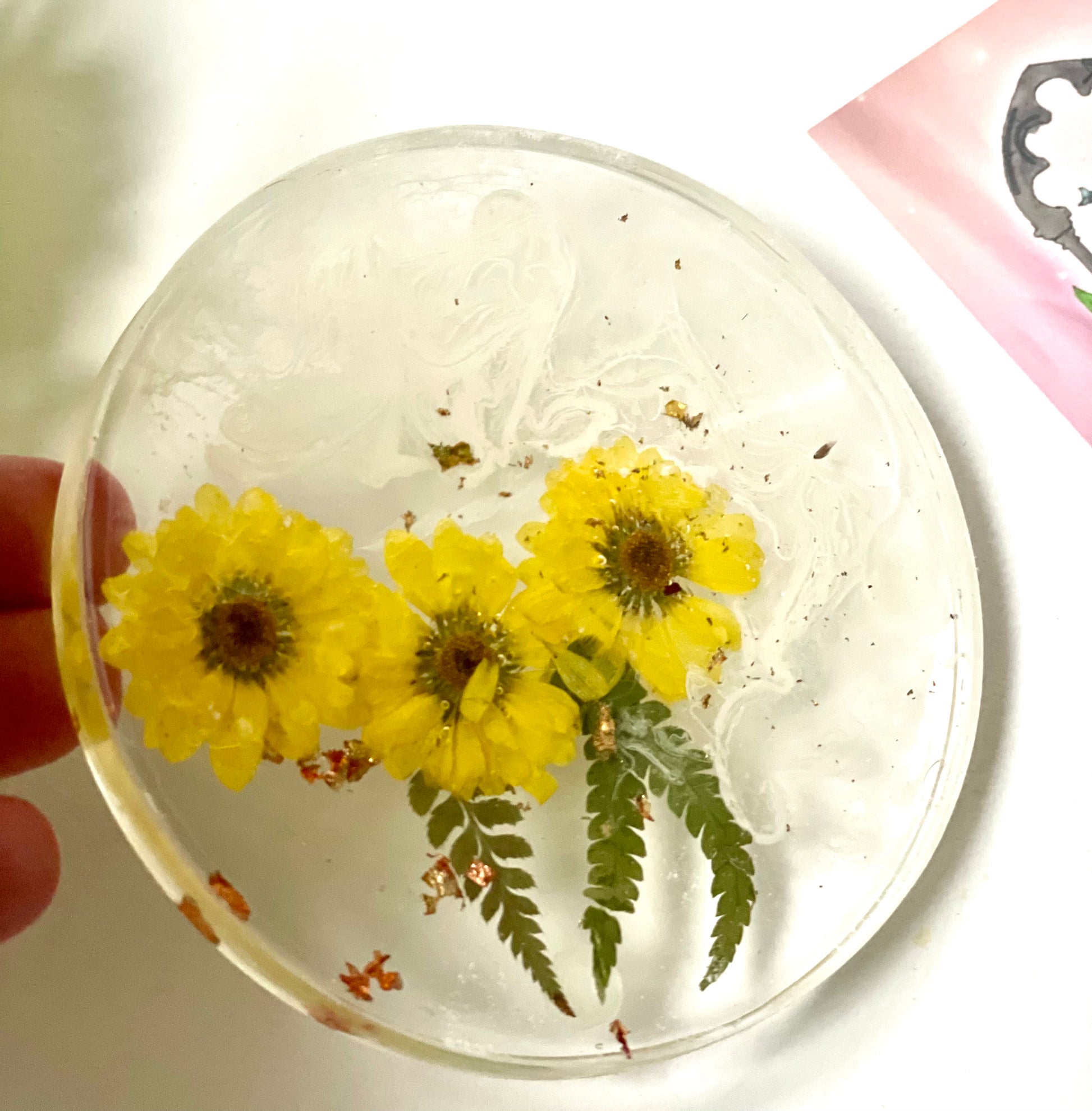Dried yellow flower and resin coasters