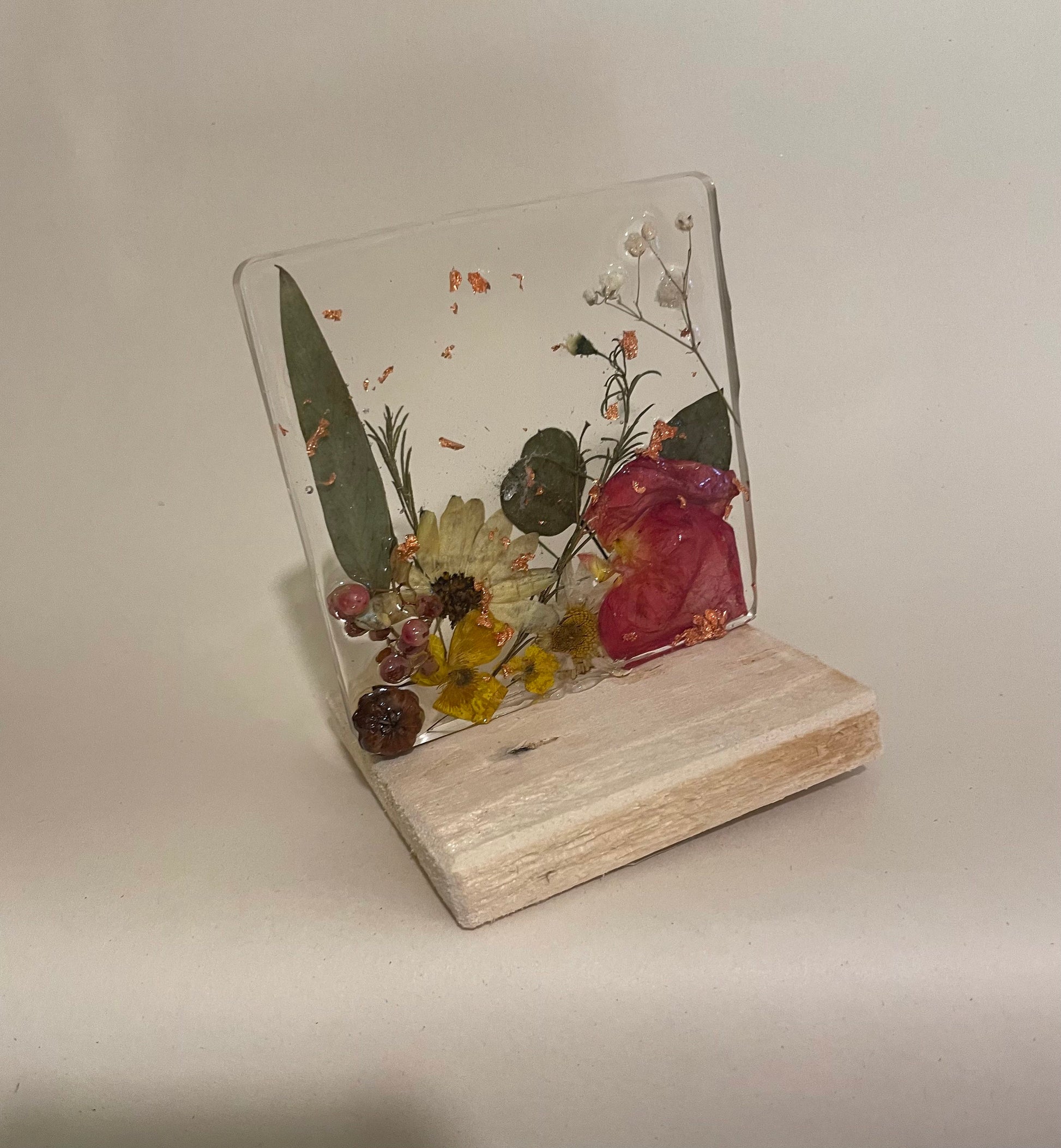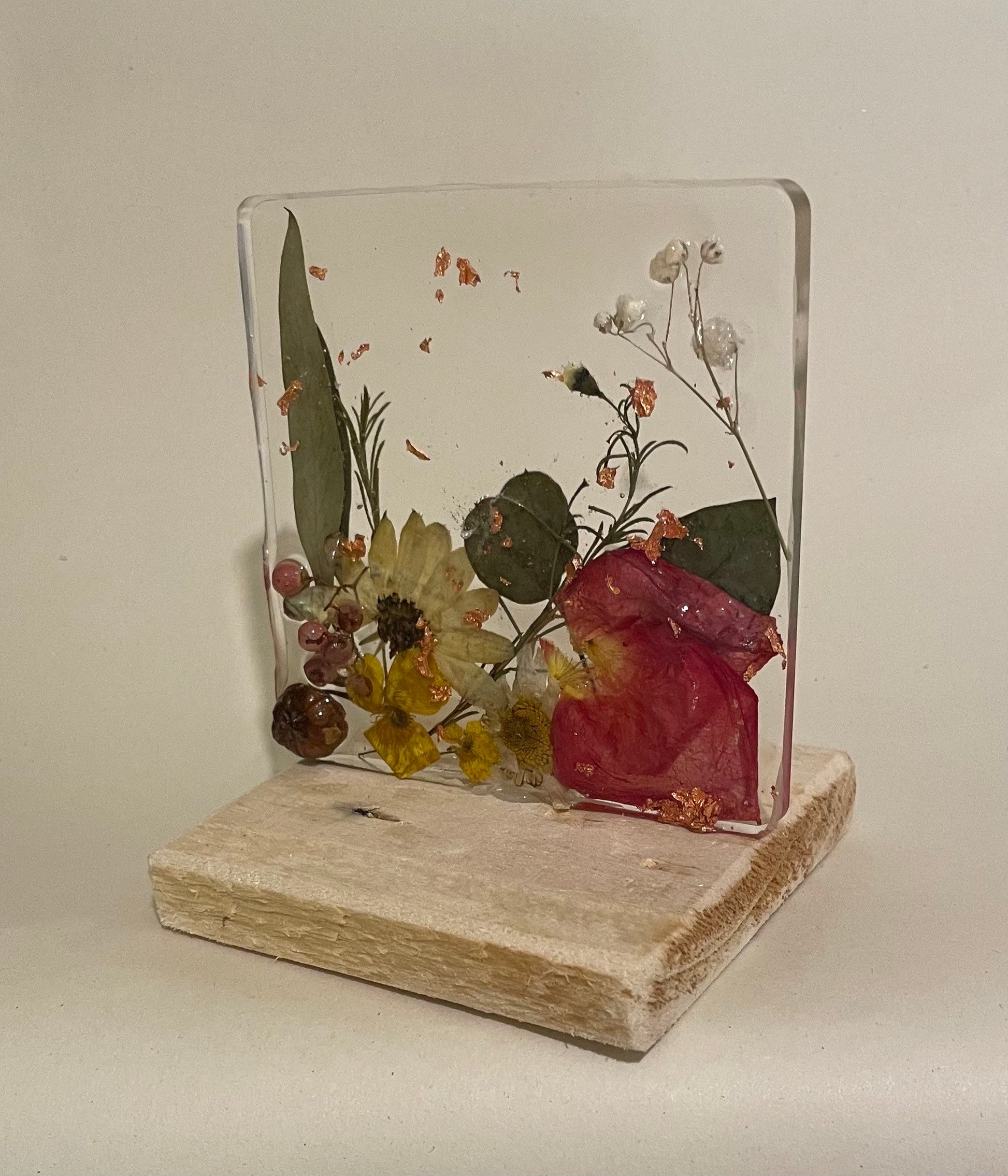 Flower and resin unique freestanding home decor, gift for her, birthday gift for nature lovers, mothers day gift, rustic flower preservation