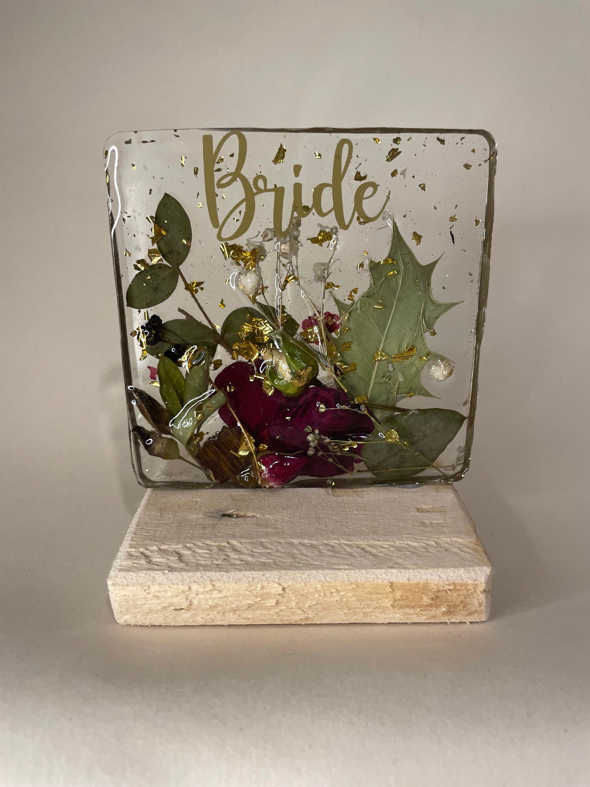All of our items are unique and handmade with love and care using real pressed flower and foliage preserved in epoxy resin. We grow as many of our own flowers as we can, but occasionally we do have to outsource to meet demands.