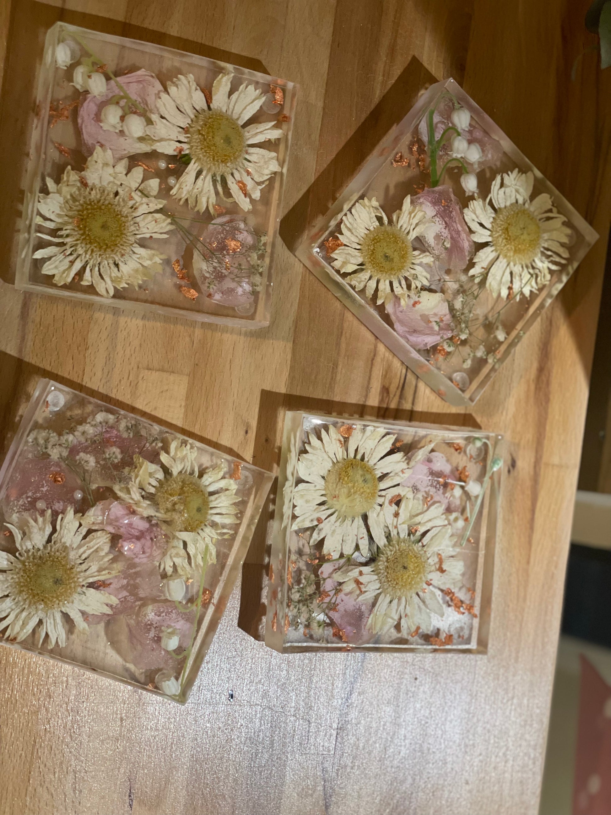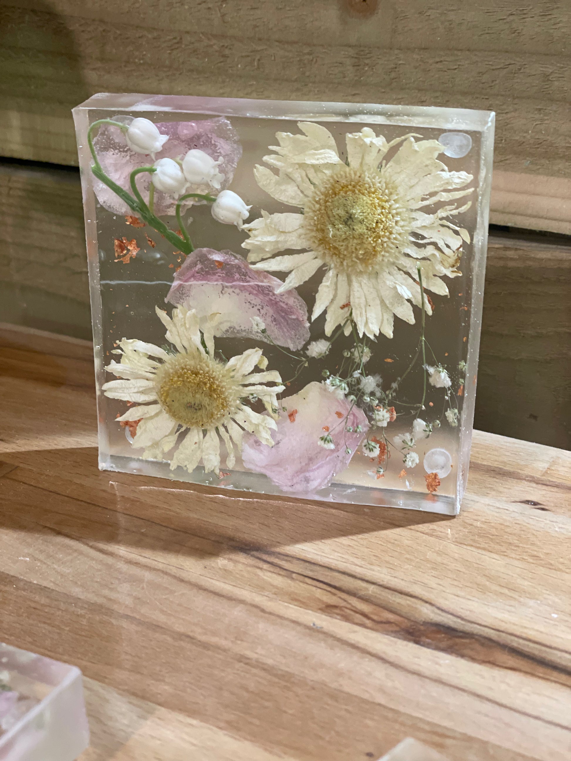 Your flowers preserved and set in high quality, non toxic, uv resistant resin.