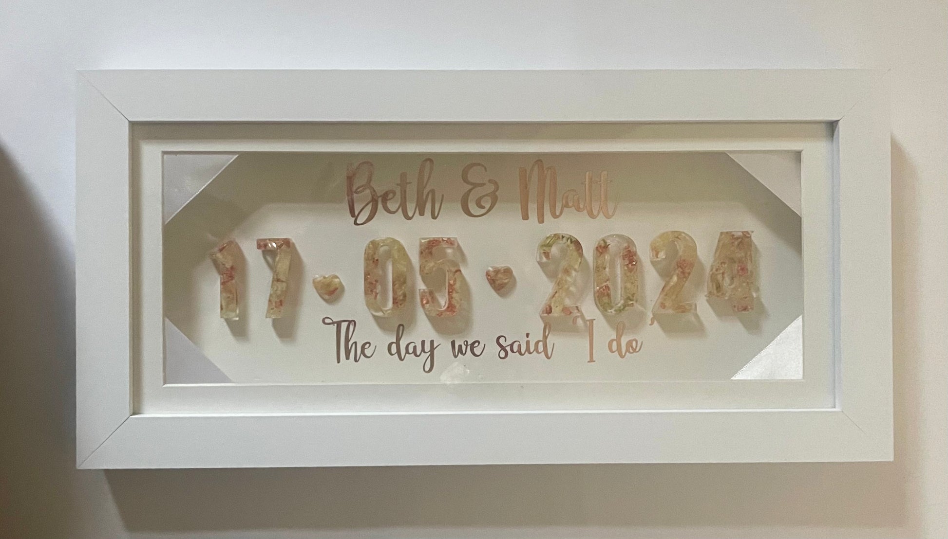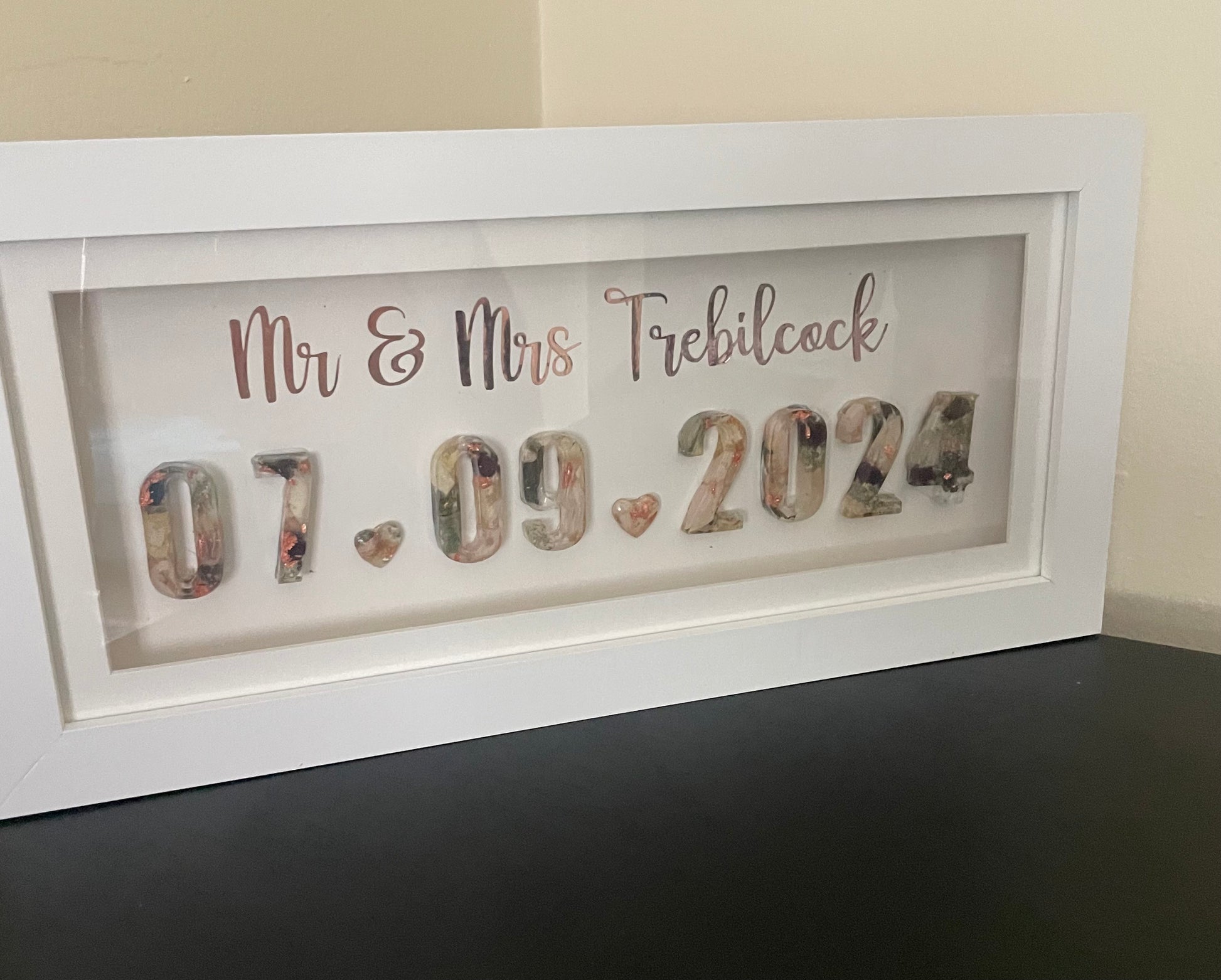 Wedding flowers in resin numbers, wedding date frame, resin date frame, wedding gift, anniversary gift, unique gift, date of birth gift