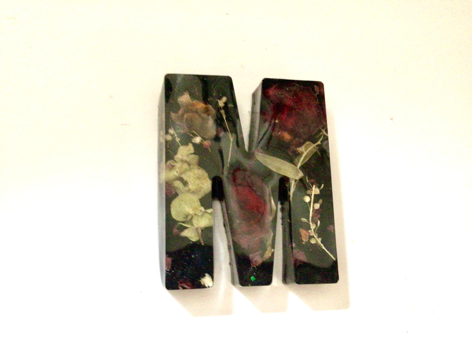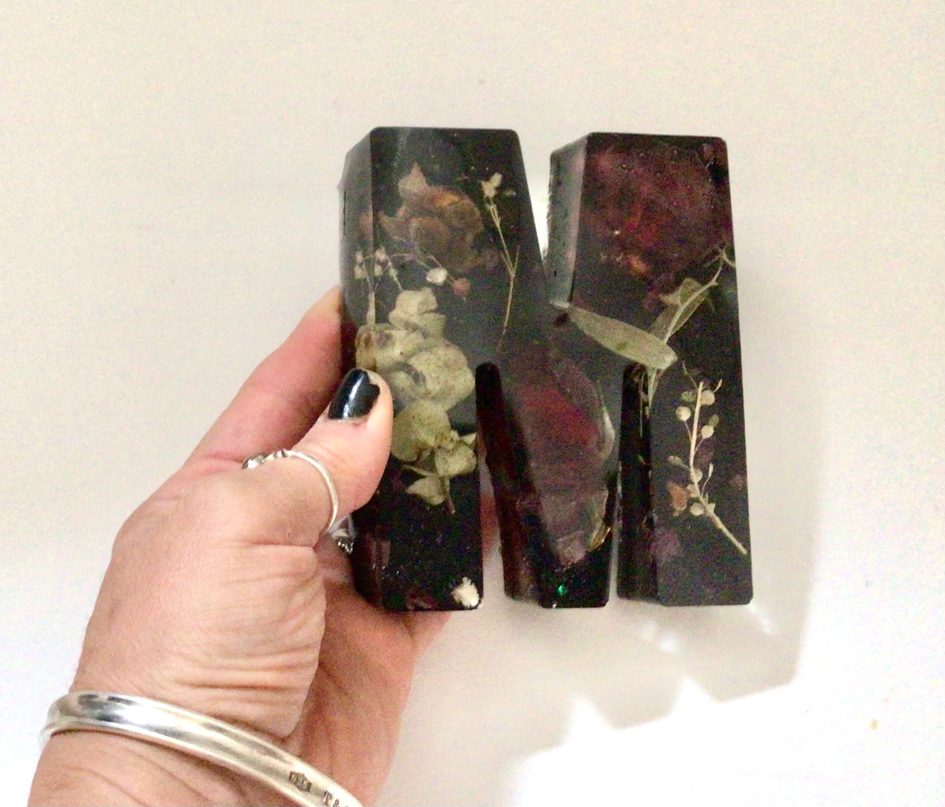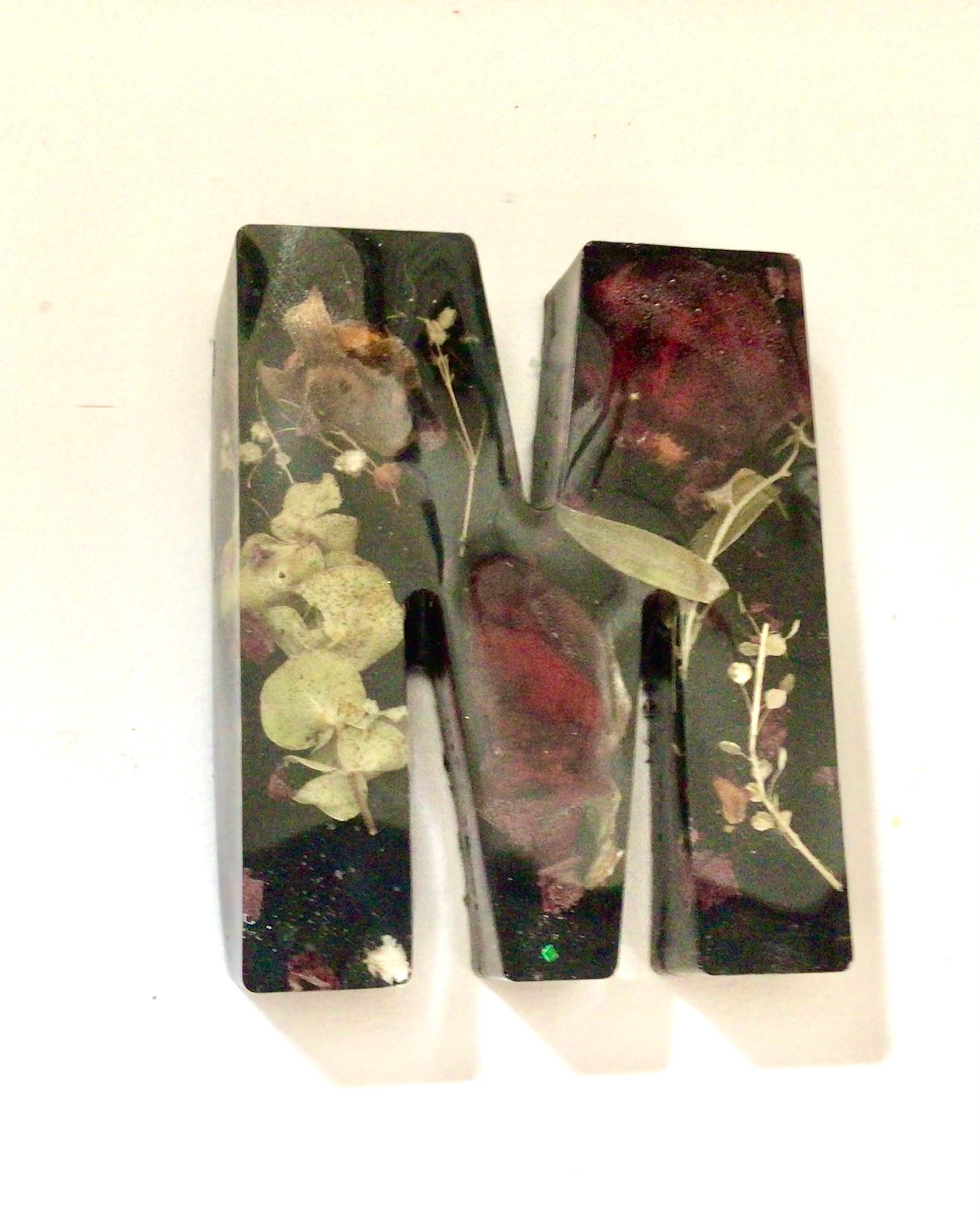 Letters and initials with a striking black layer added to enchanted the colour of the flowers, this black layer works well with pale flowers to help them show up, or with bright flowers to make more of a statement
