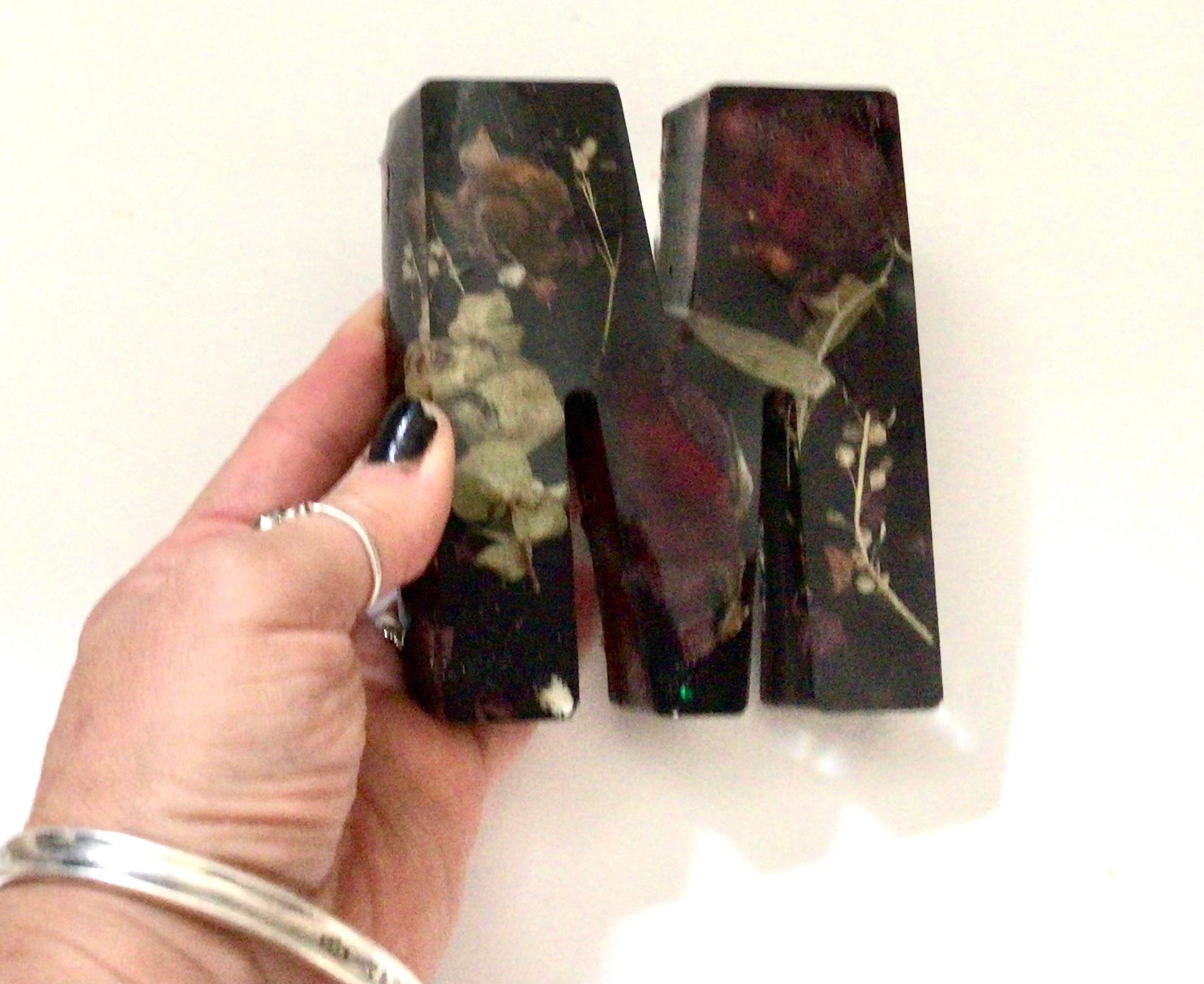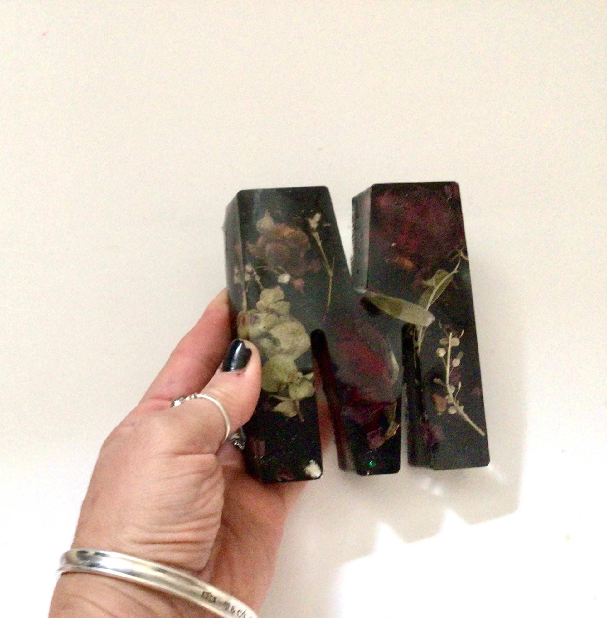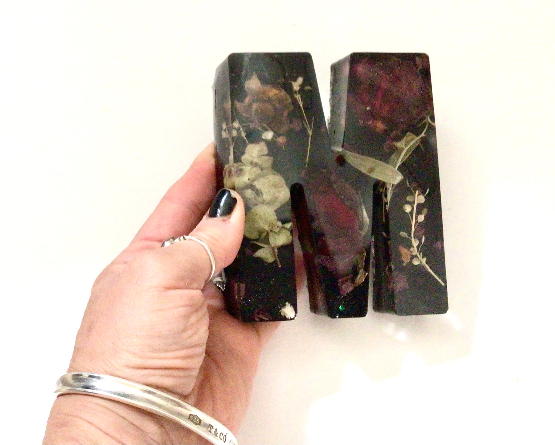 Letters and initials with a striking black layer added to enchanted the colour of the flowers, this black layer works well with pale flowers to help them show up, or with bright flowers to make more of a statement