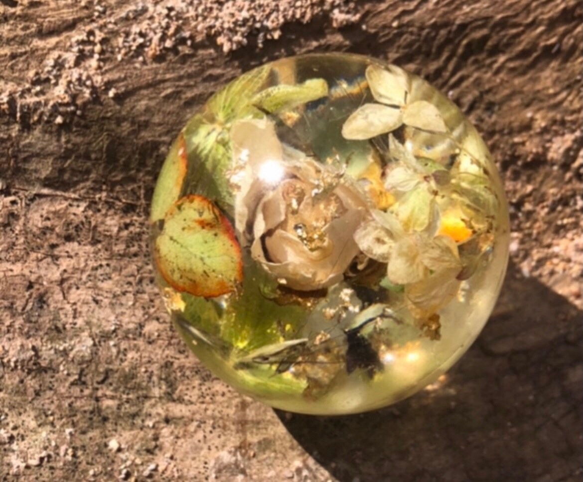 Please be aware that because this item is handmade, each orb will vary in design. There may be minor air bubbles, however, we will try my best to limit these imperfections. Not all flowers preserve their natural color, most flowers dry darker than their original color and some will dry translucent.