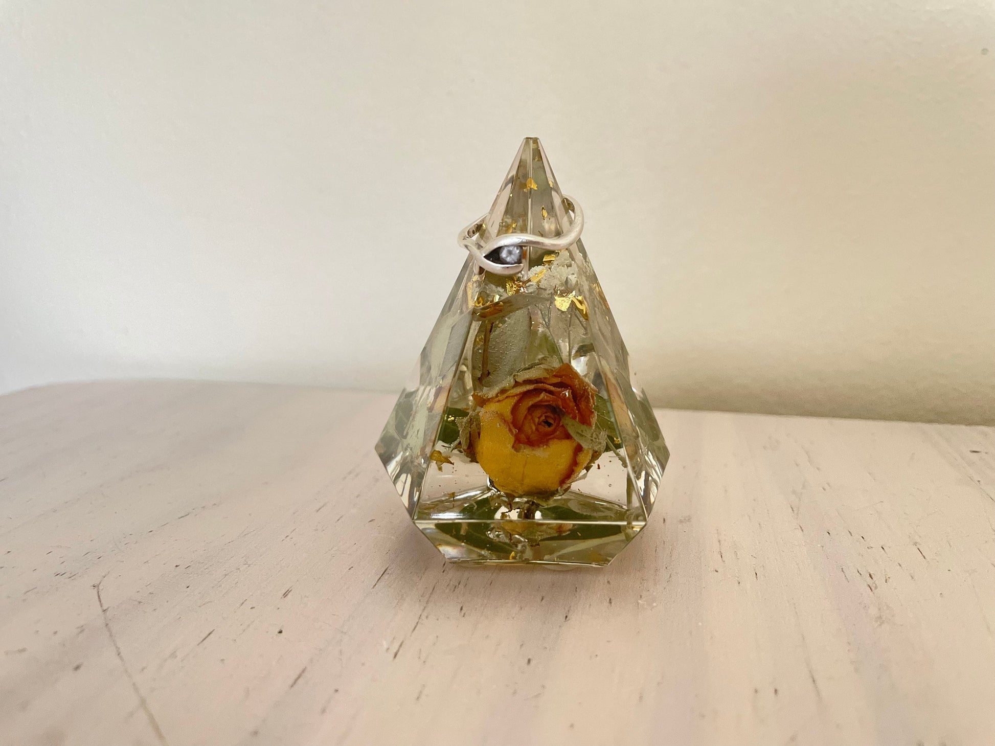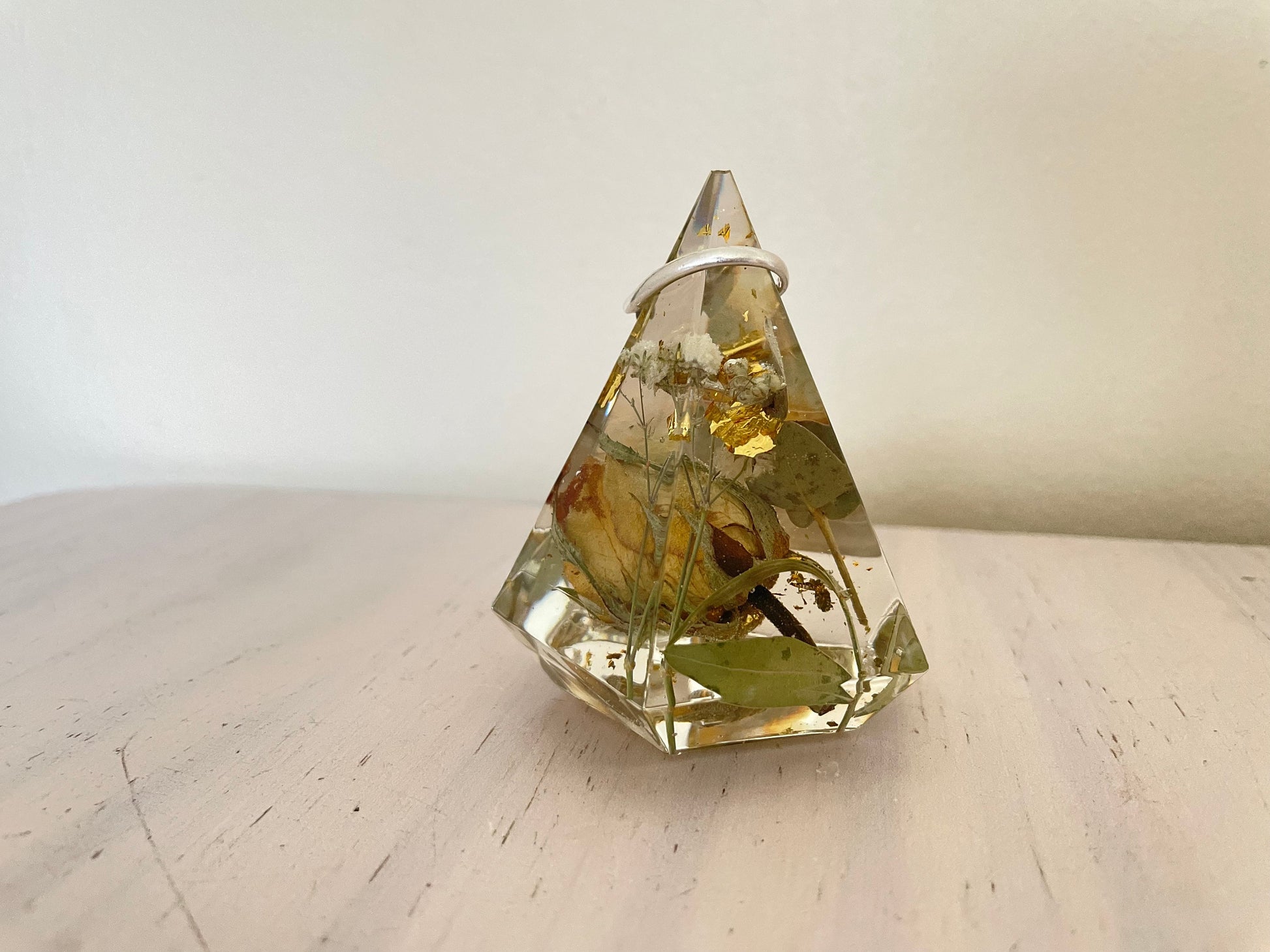 Flower preservation ring cone, wedding bouquet flower preservation, wedding ring storage, geometric ring holder, wedding bouquet keepsake,