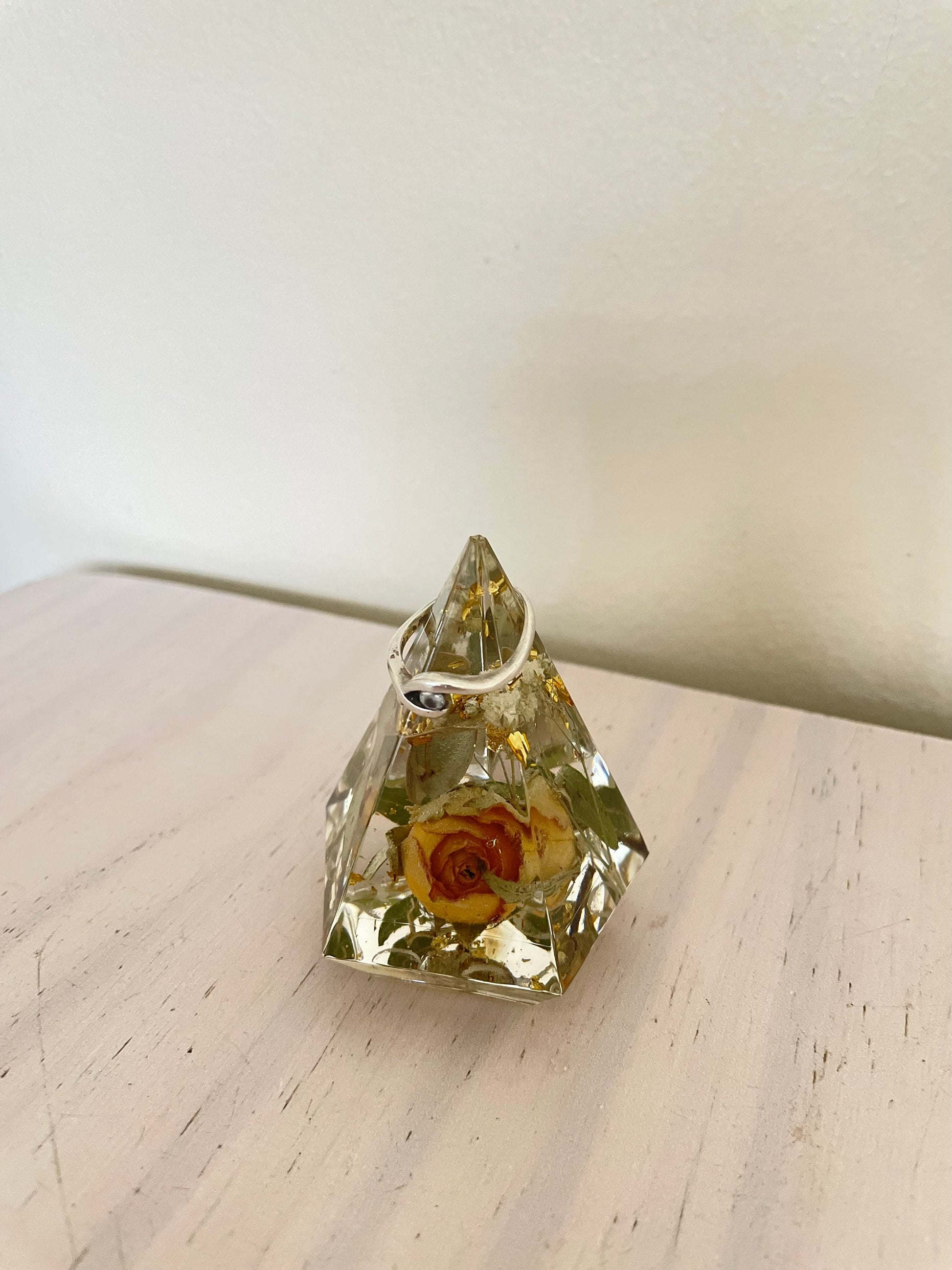 Real flower and resin geometric ring holder, wedding ring storage,flower preservation, wedding bouquet keep sake, wedding gift, gift for her