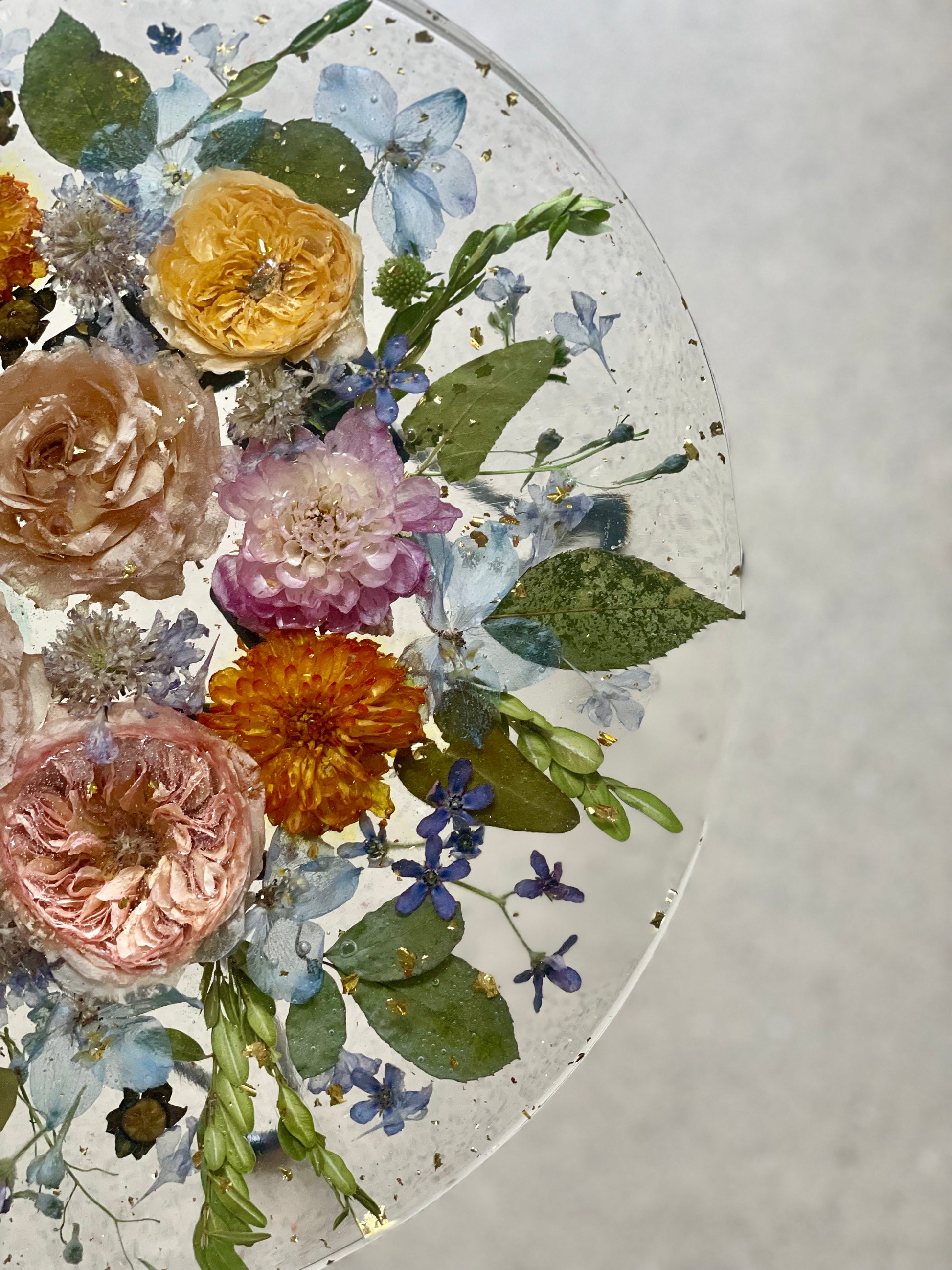 Your flowers preserved and set in high quality, non toxic, uv resistant resin.