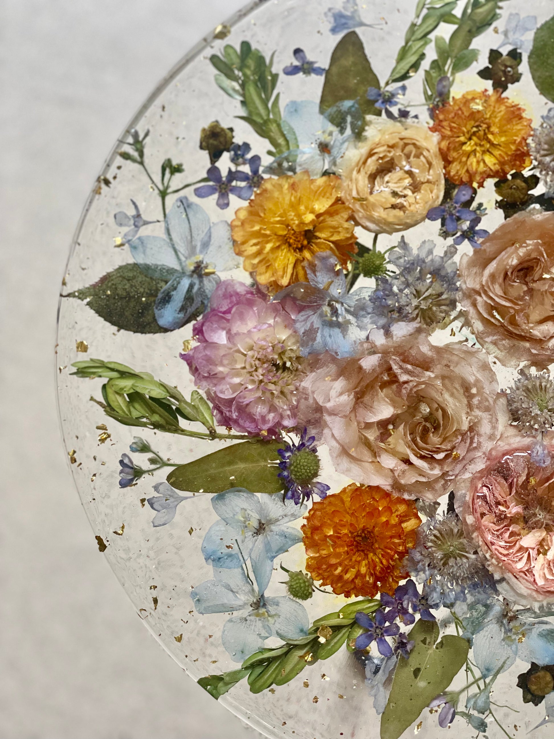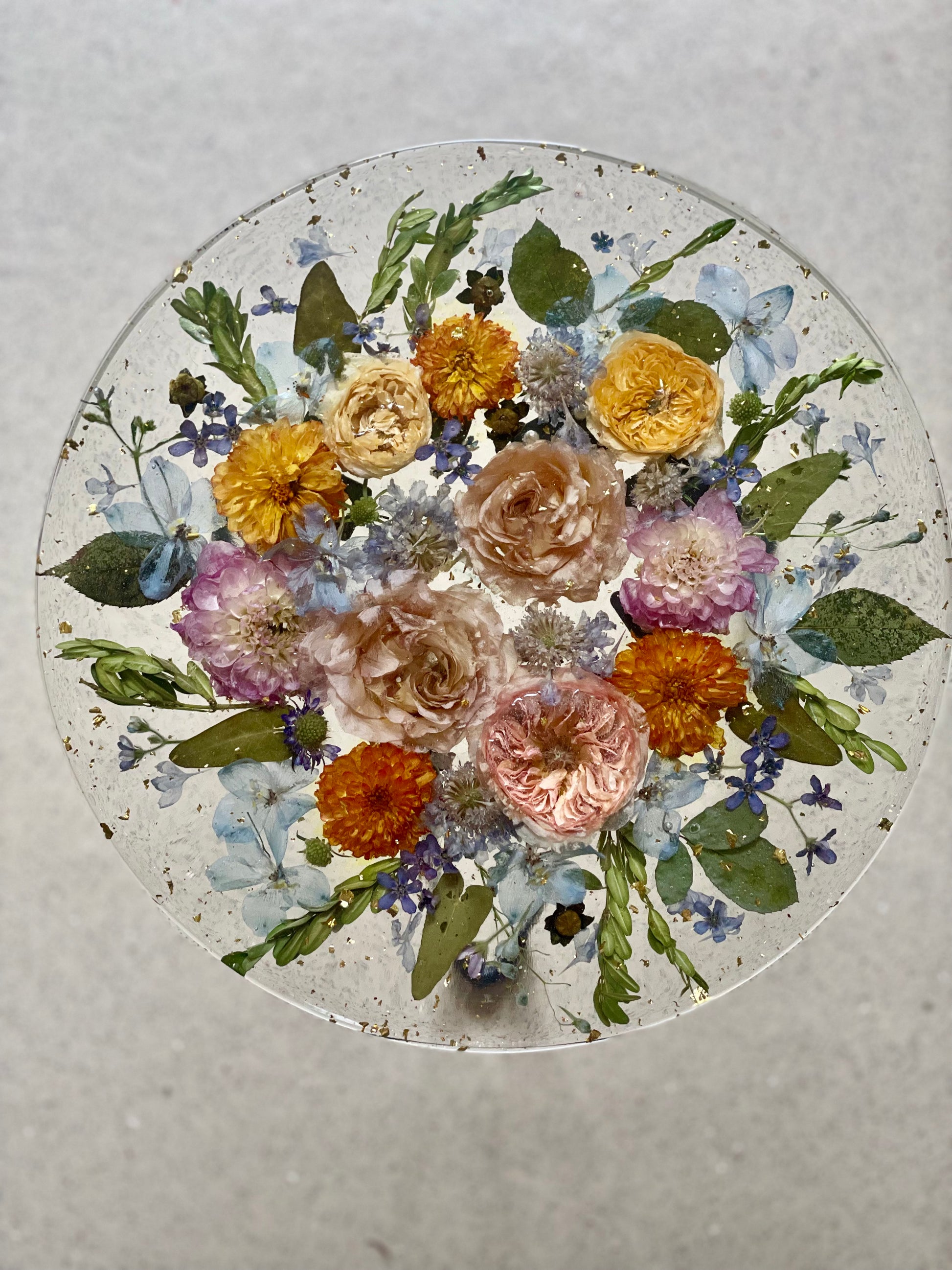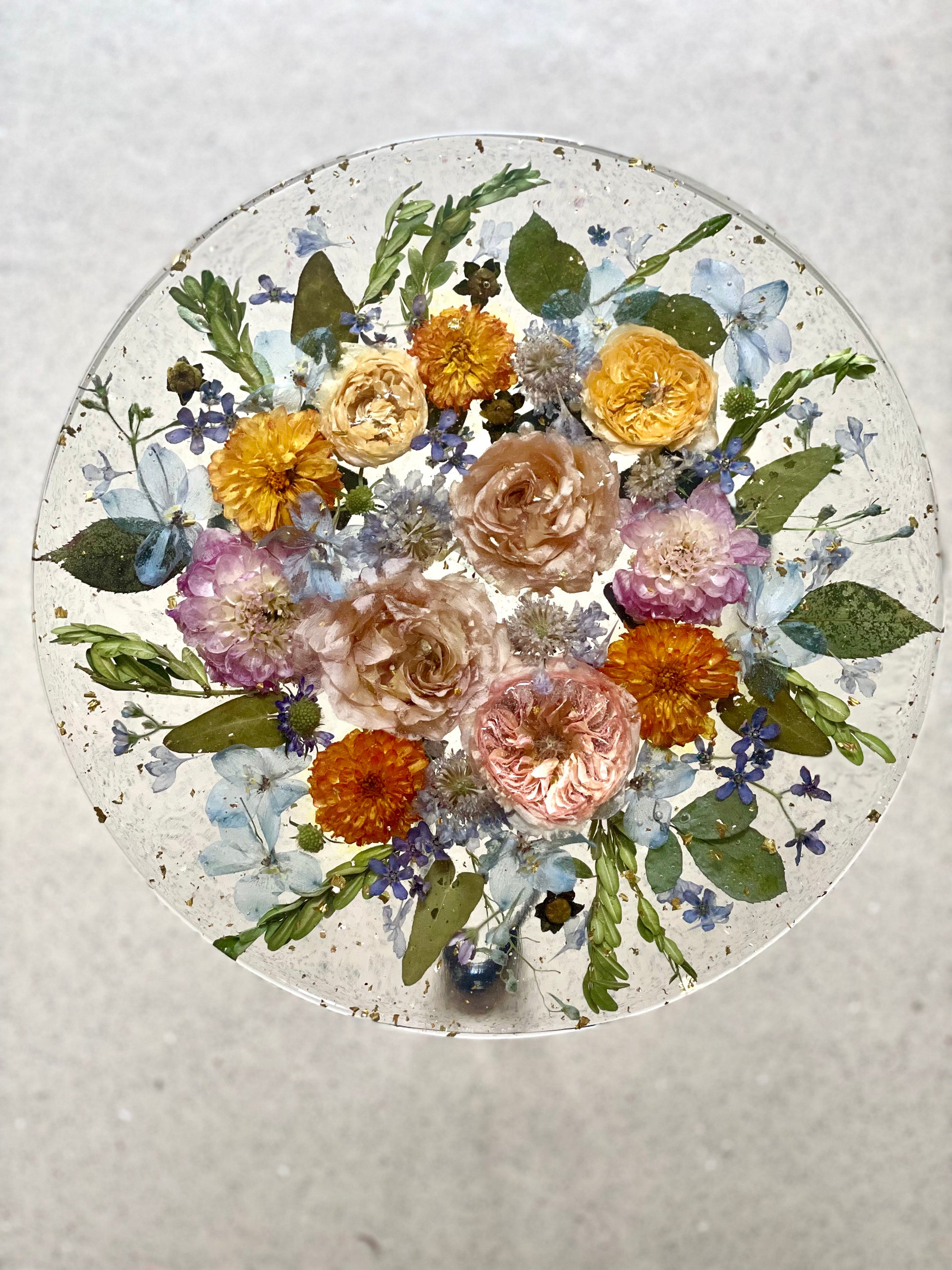 Wedding flower preservation Resin table, wedding bouquet preservation, bridal keepsake in resin , funeral flower preservation