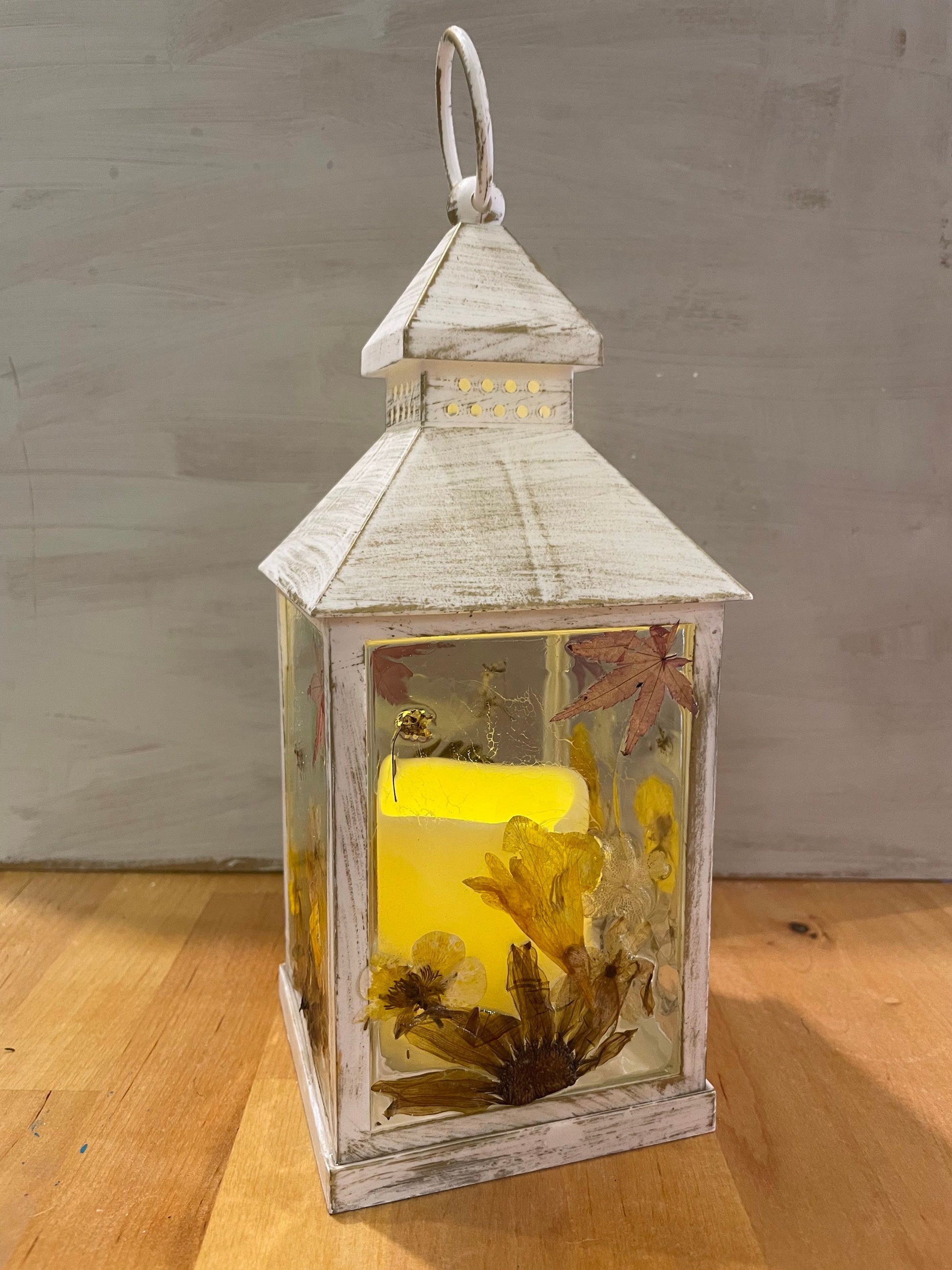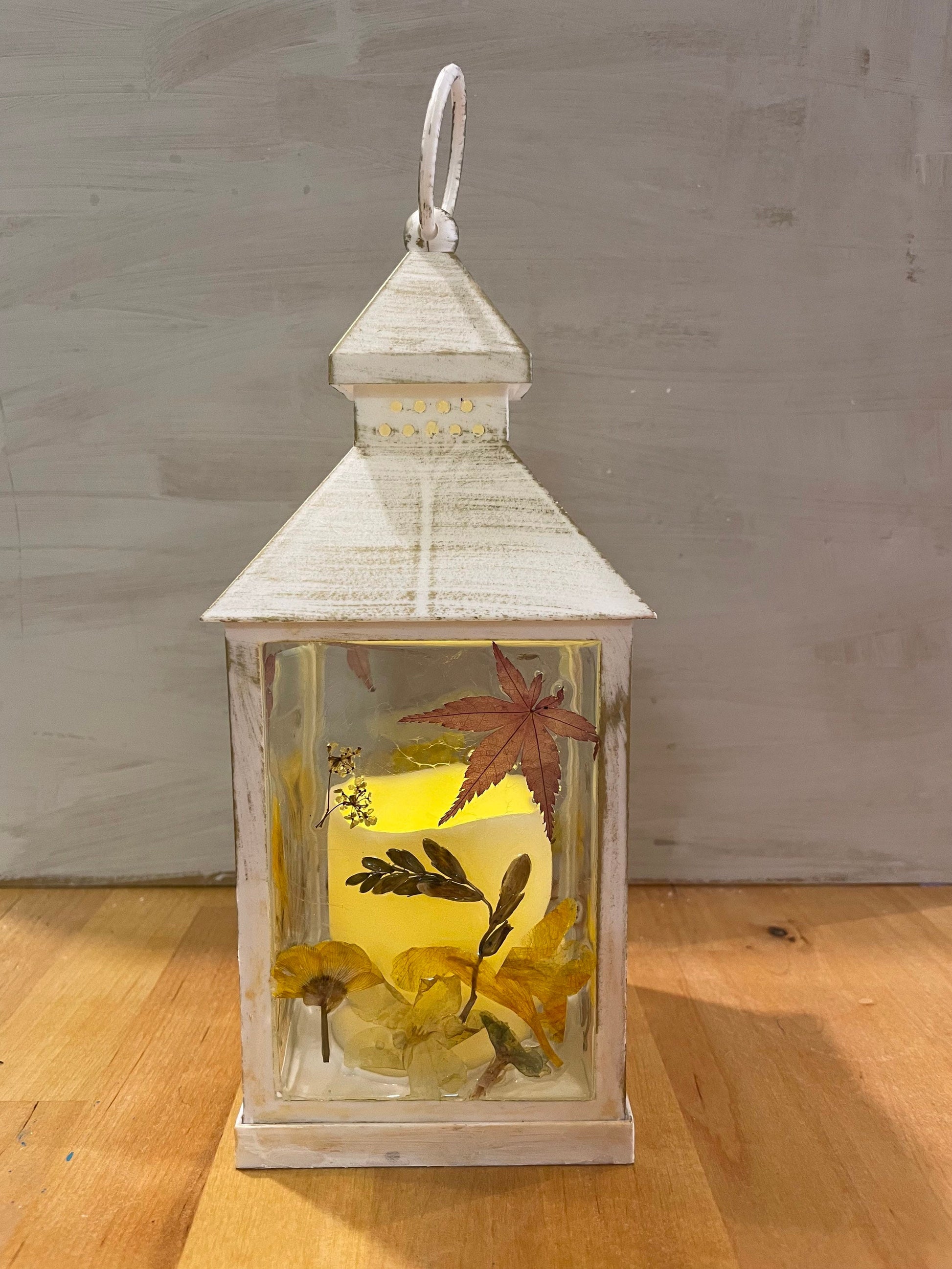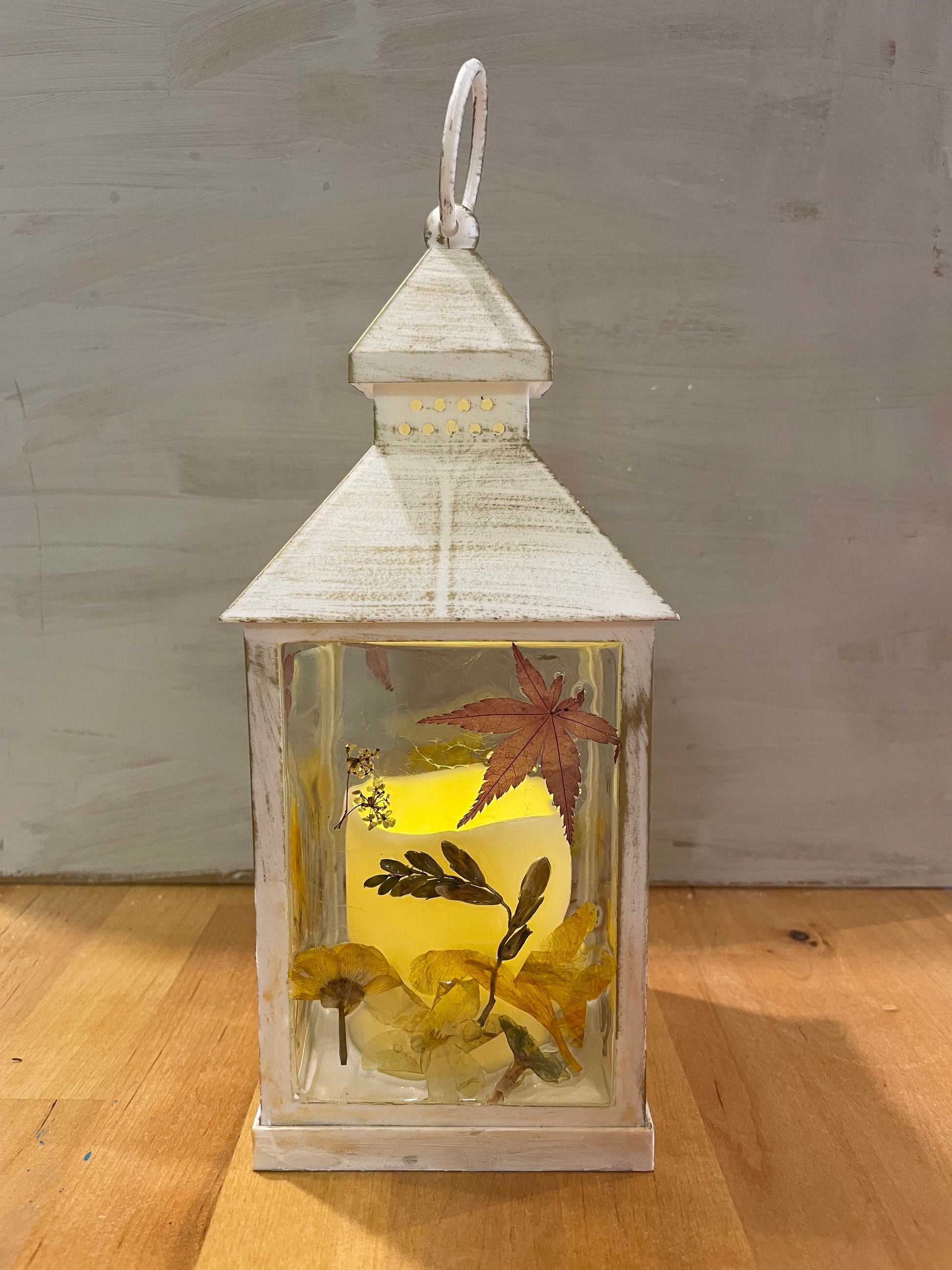 Real flower Lantern light, autumn leaves/ flower lantern, birthday gift for her, hand decorated lantern, cosy autumn colours, gift for home,