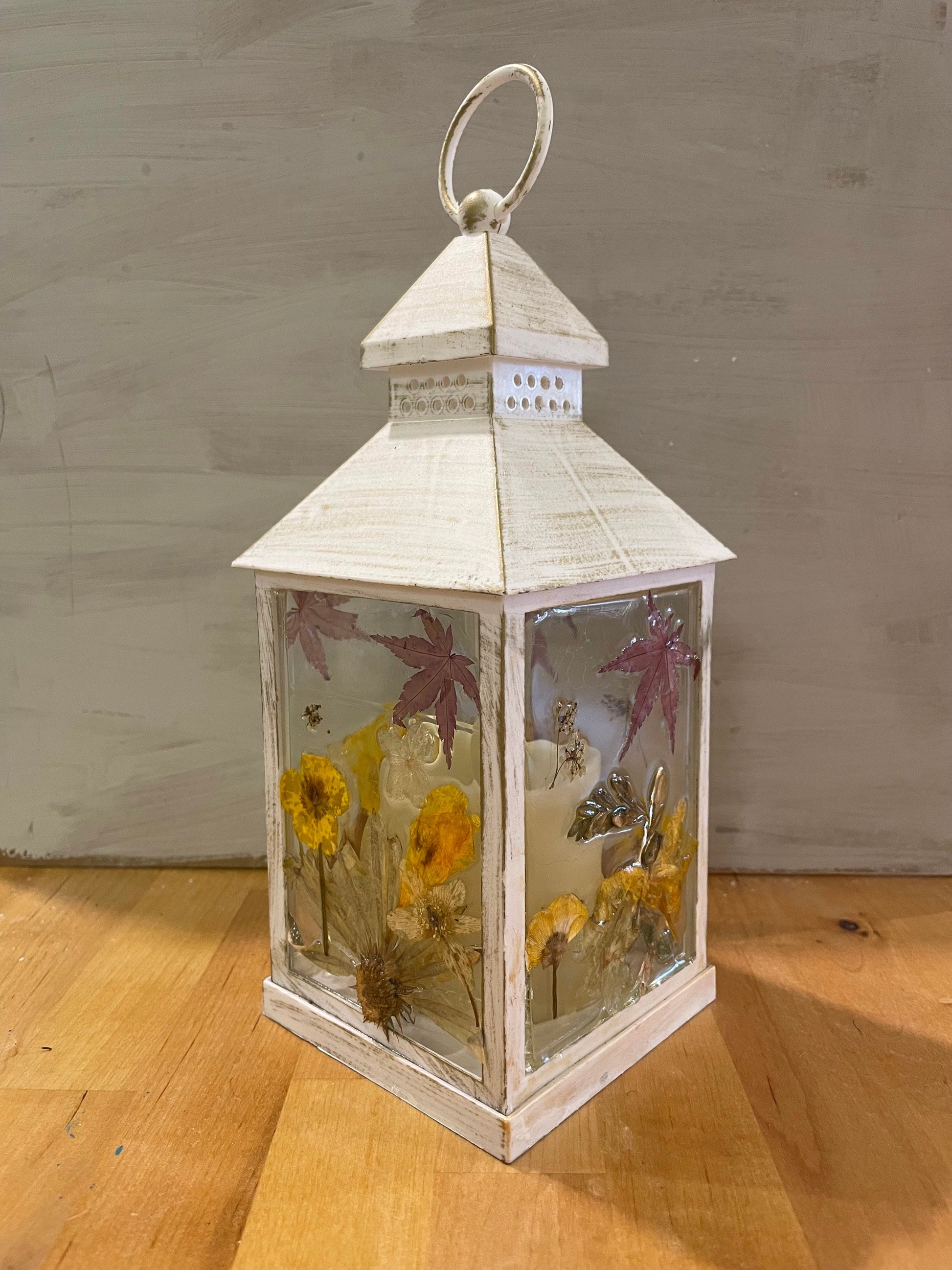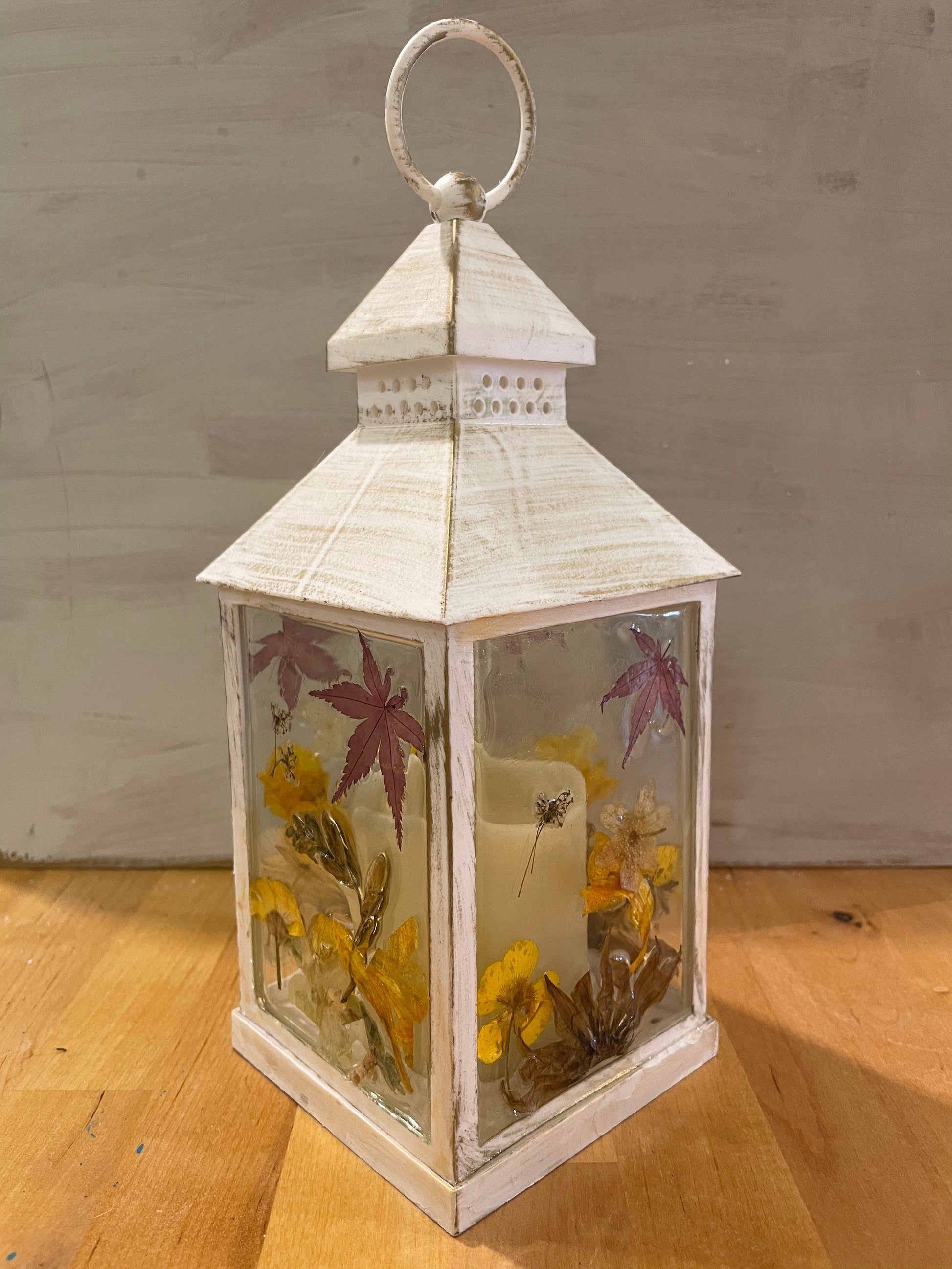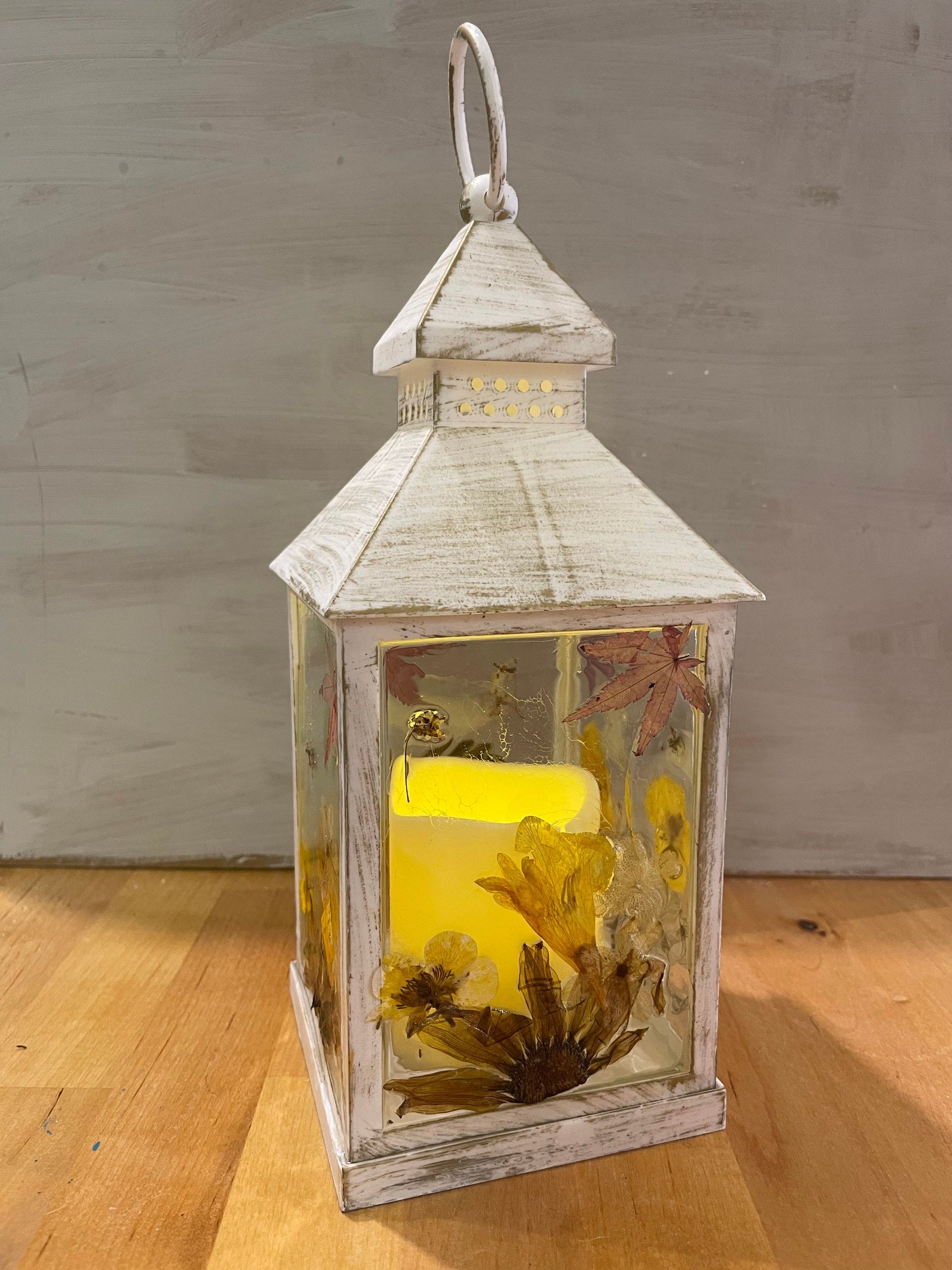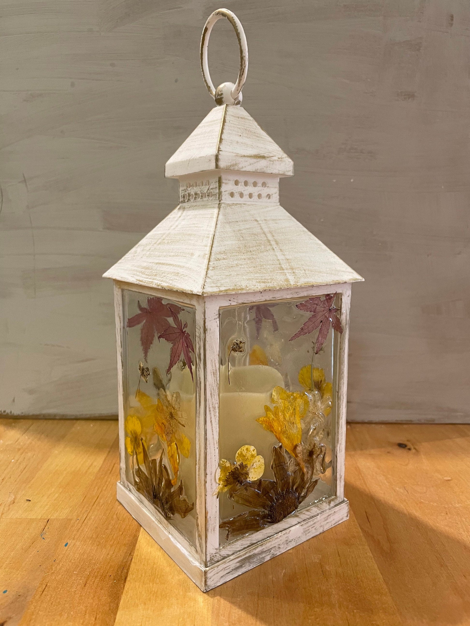 Real flower Lantern light, autumn leaves/ flower lantern, birthday gift for her, hand decorated lantern, cosy autumn colours, gift for home,