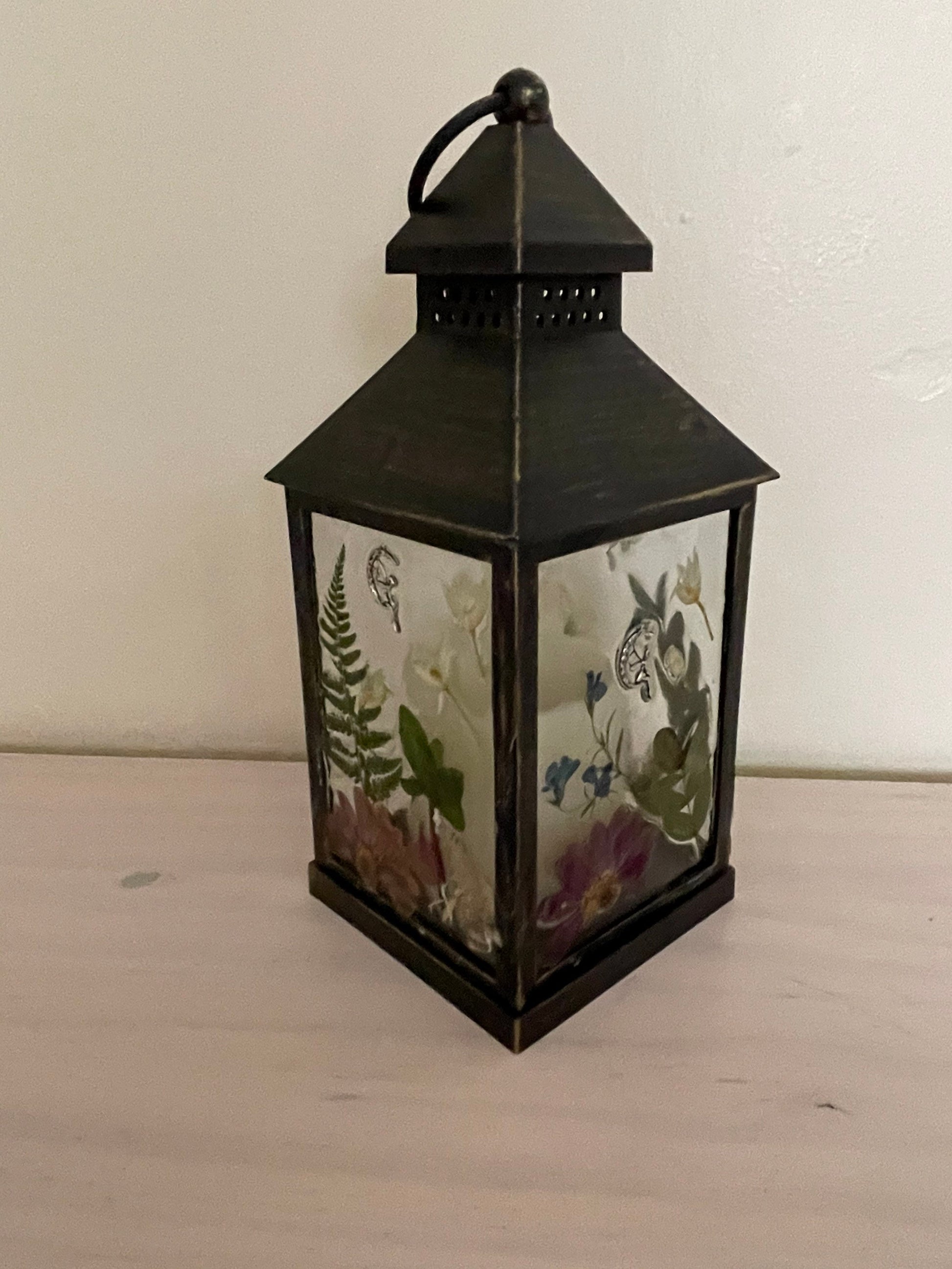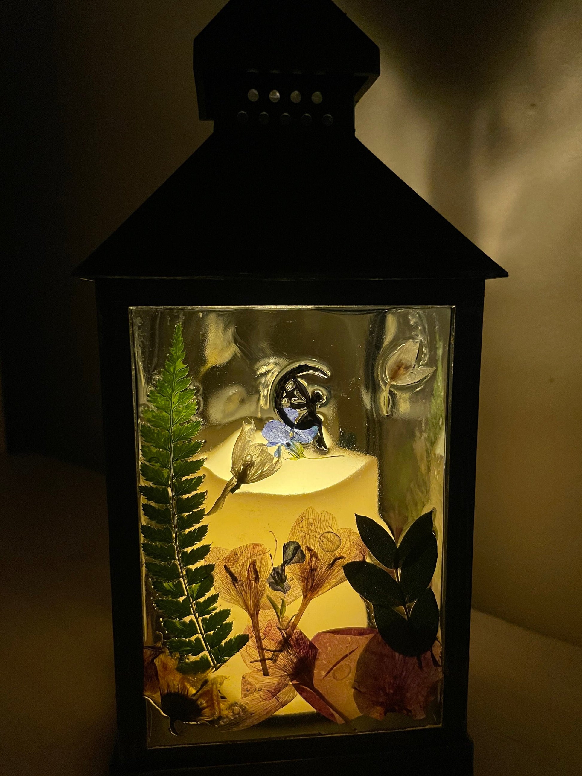 Lantern with real flowers and silver fairy charm, Flower fairy night light, flower decor lantern, lantern with real flower decoration,