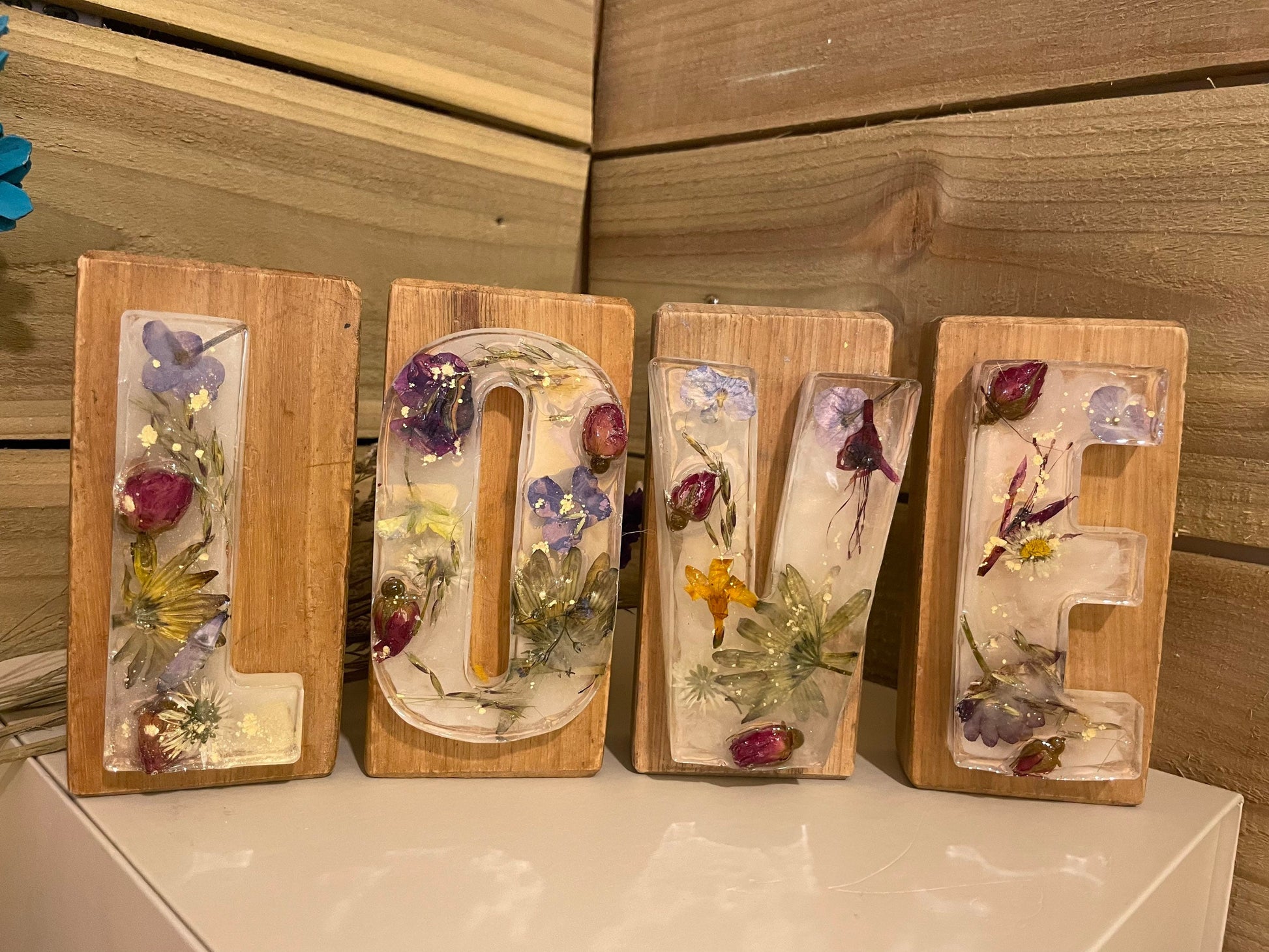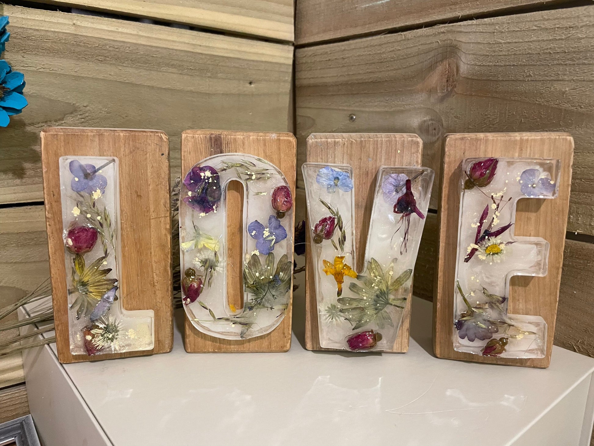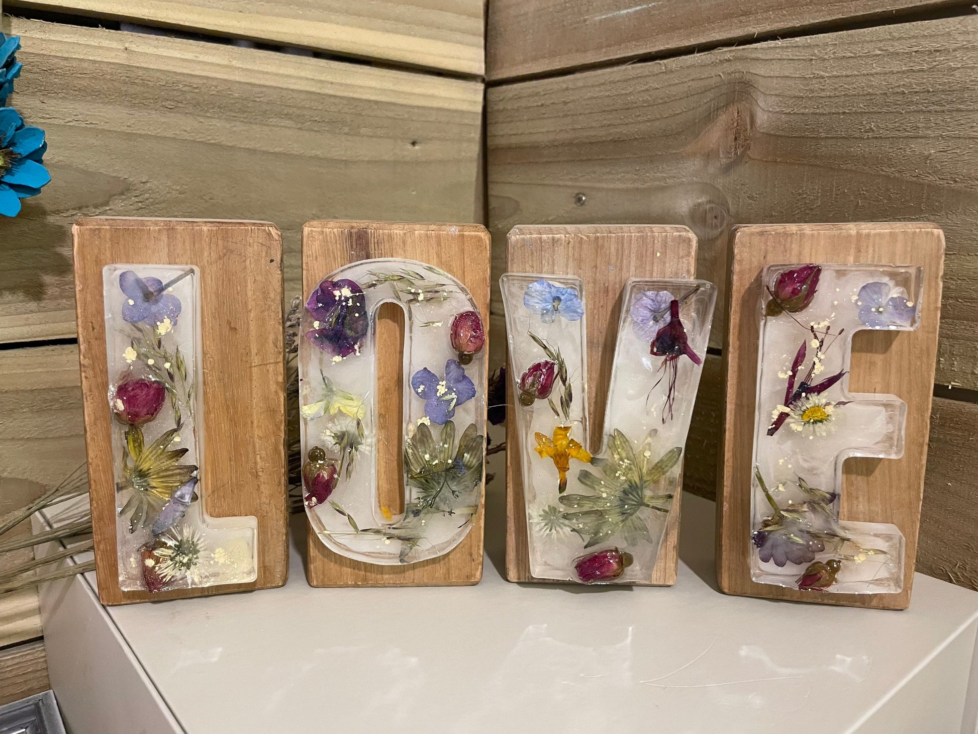 Love sign made from real flowers in resin and reclaimed wood, love gift for her, anniversary gift for special couple, unique wedding gift, Resinate-7003.myshopify.com