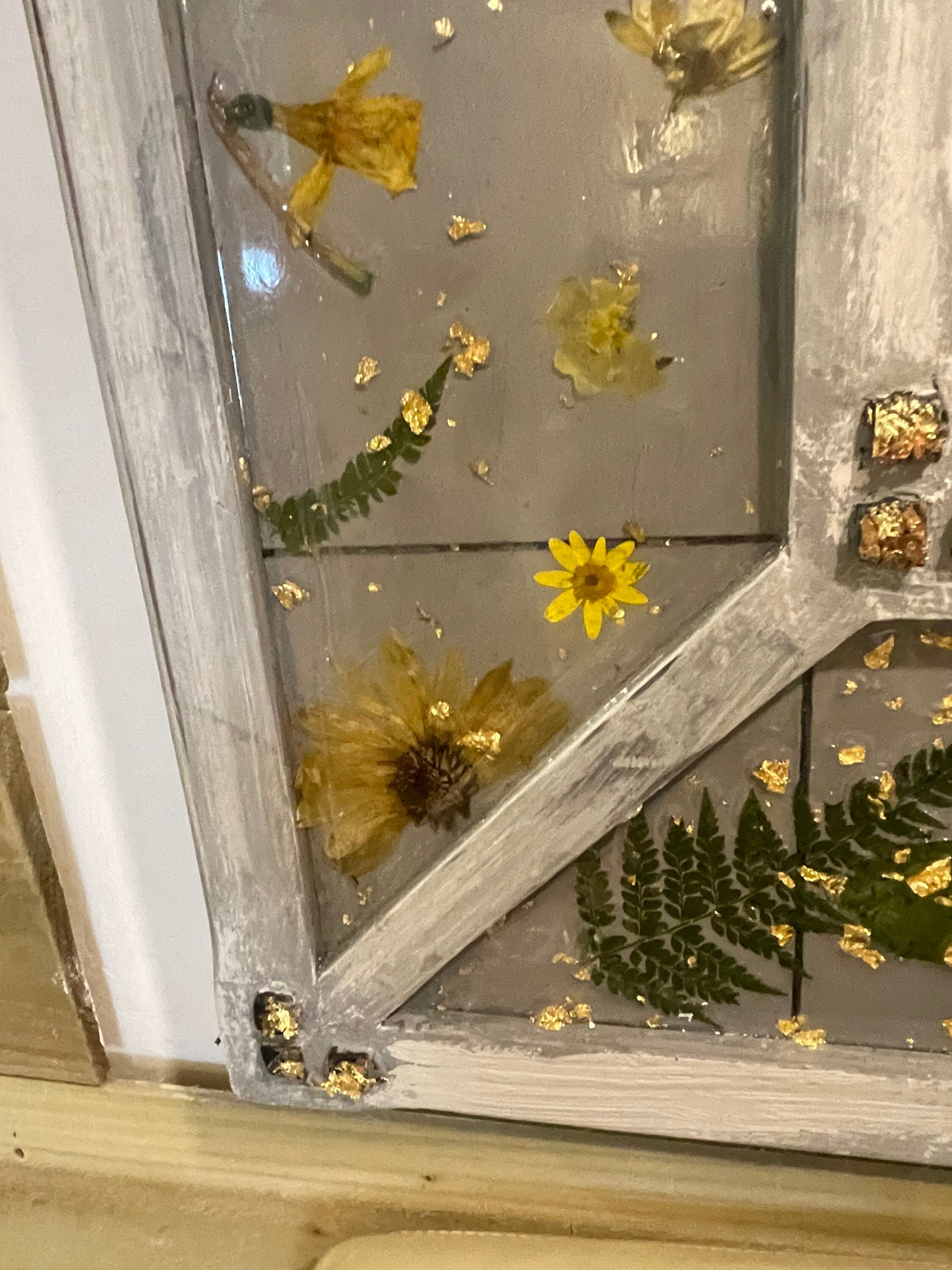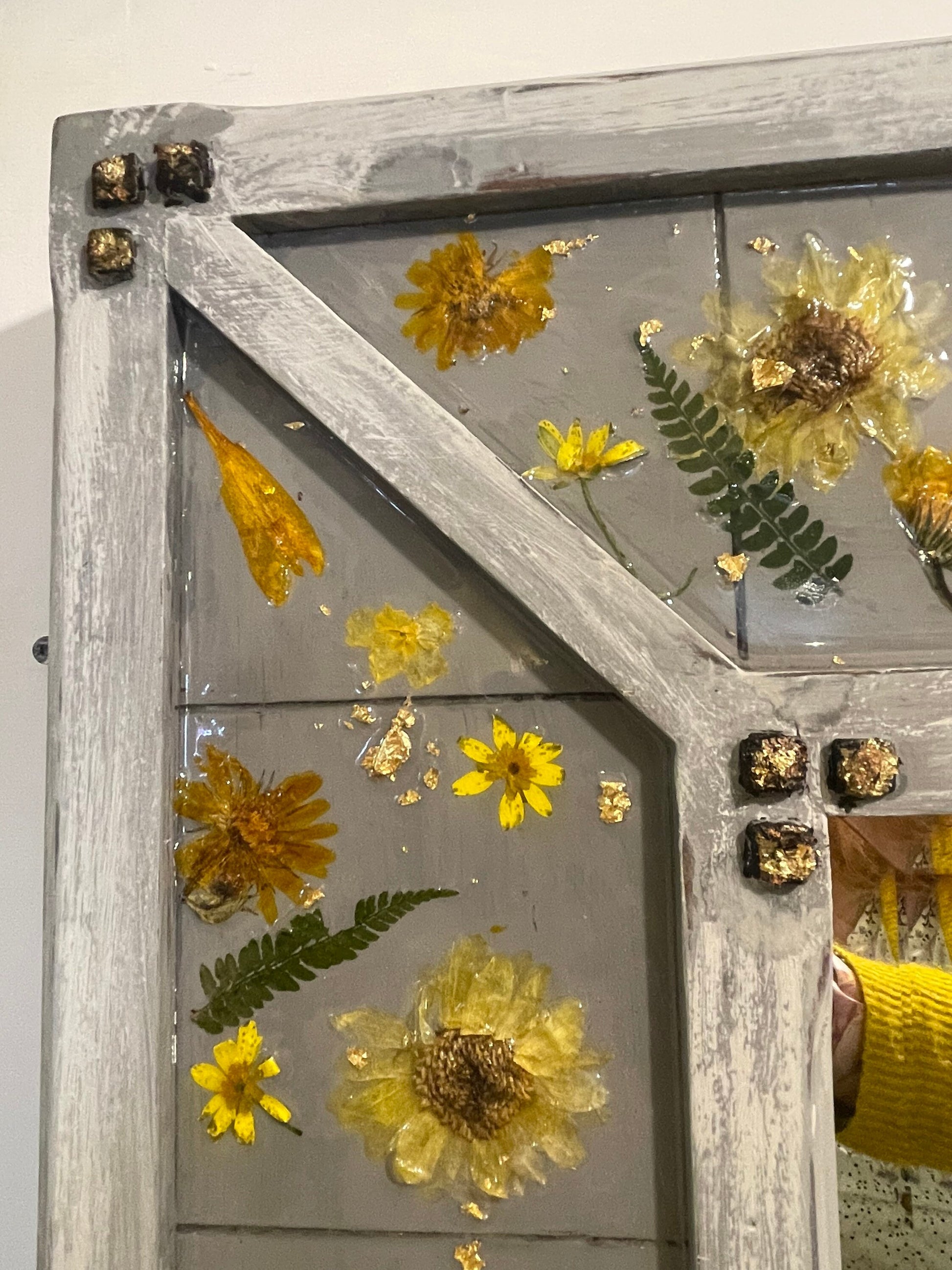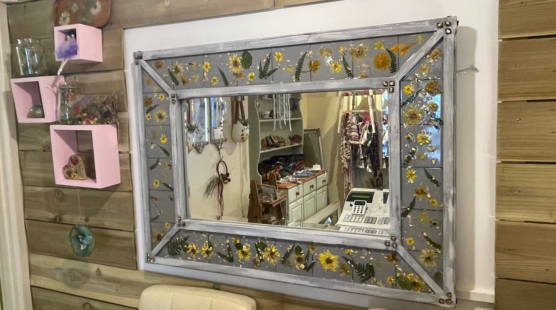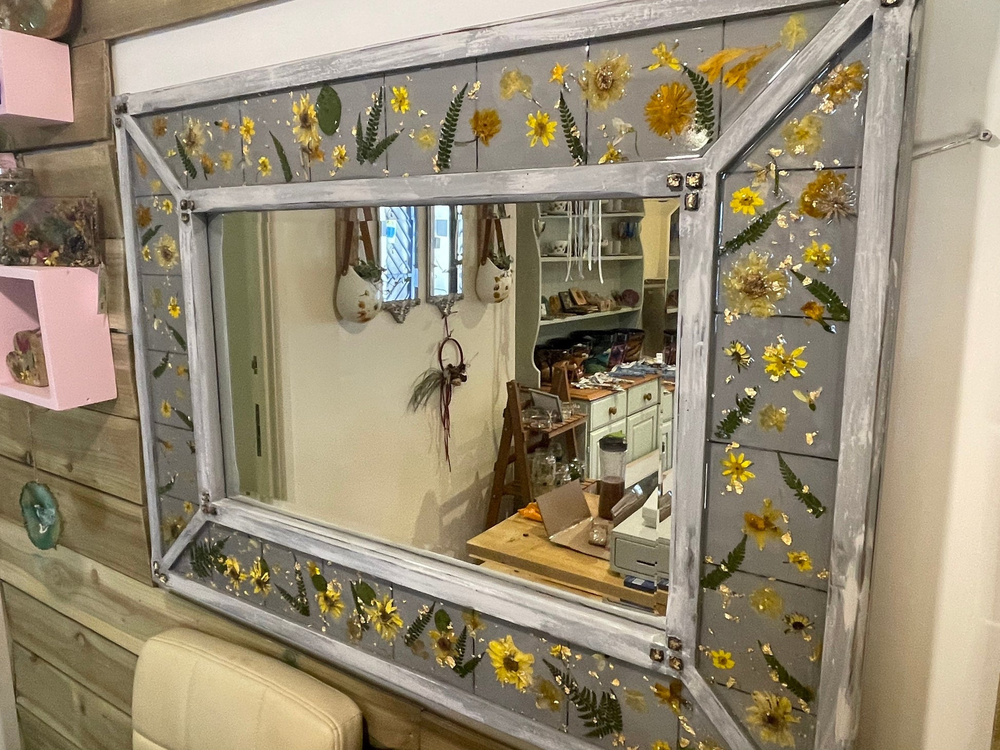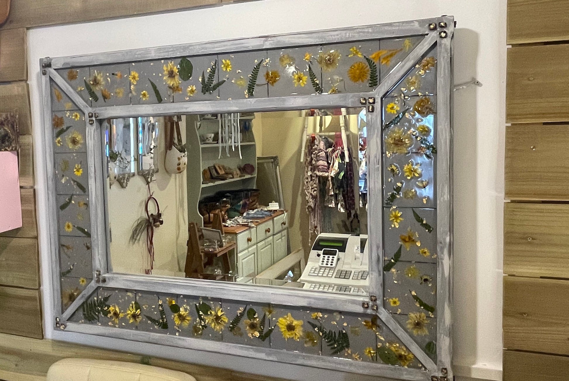 Mirrored wall art with real flowers set in resin, preserved flowers in resin wall art, pressed flowers in resin, mirror with dried flowers,