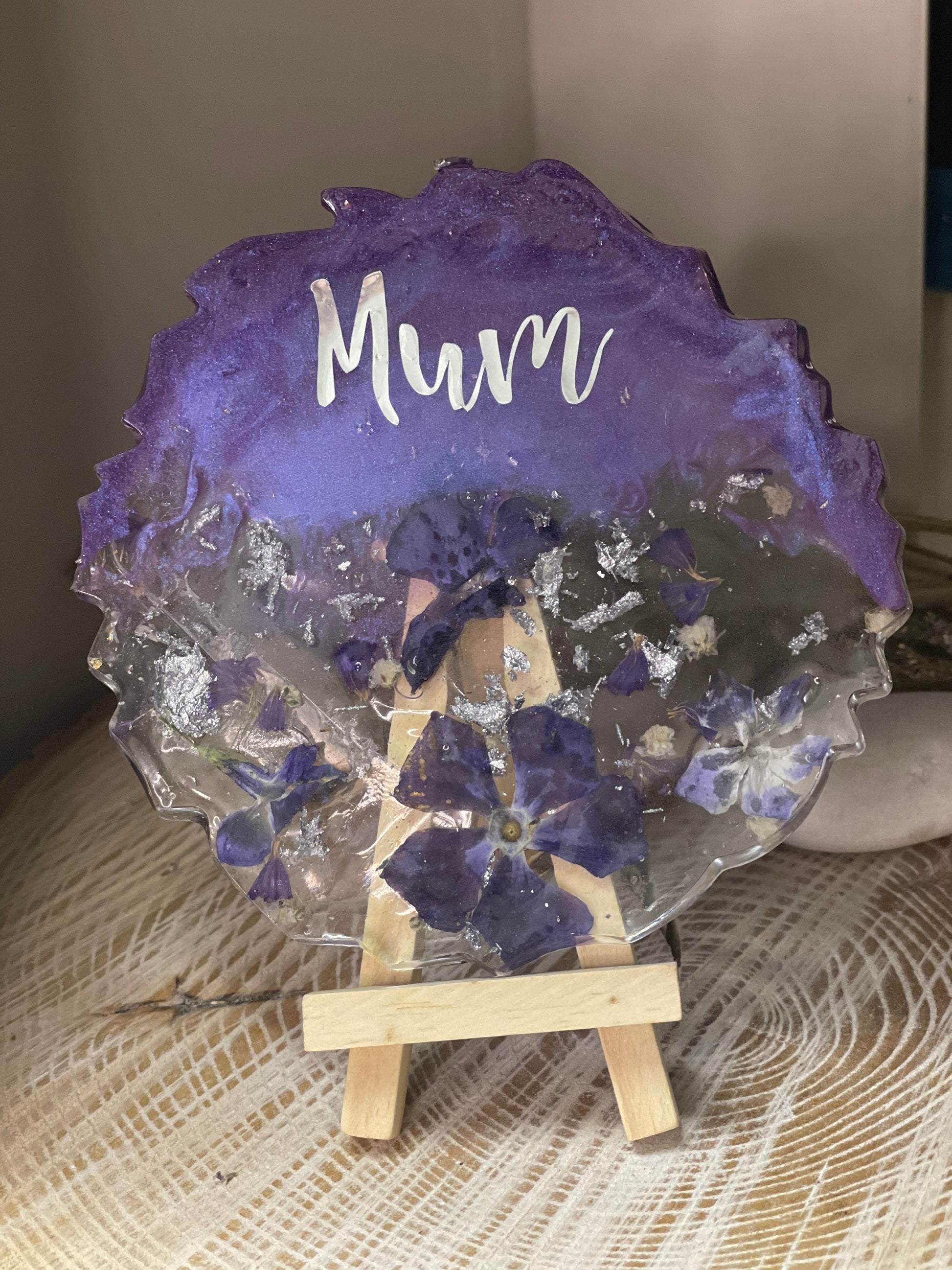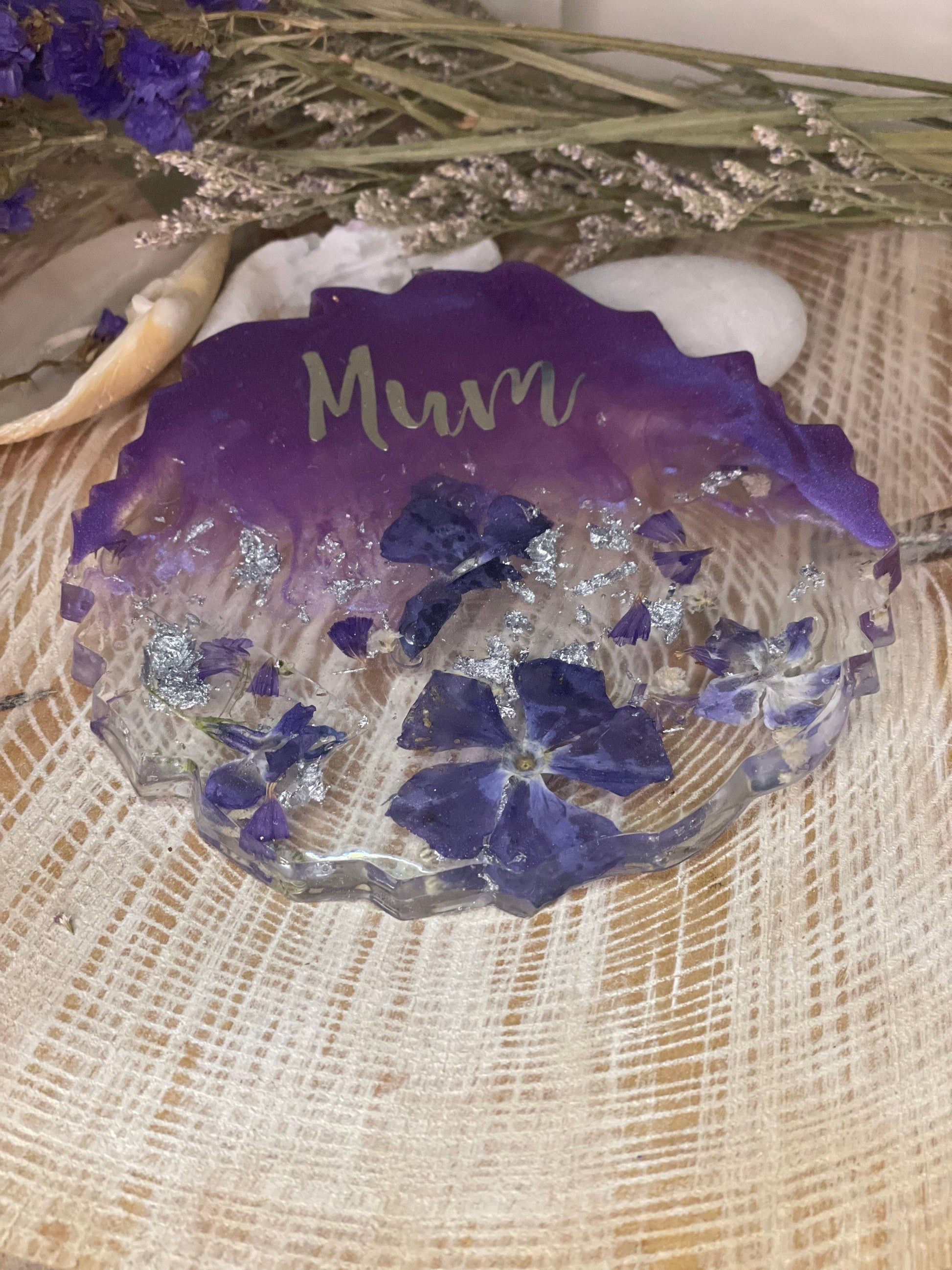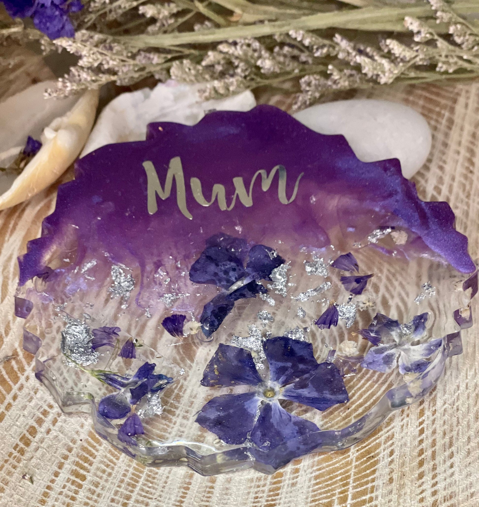 A beautifully sparkling geode coaster with a unique twist, they also contain real flowers and an be personalised.