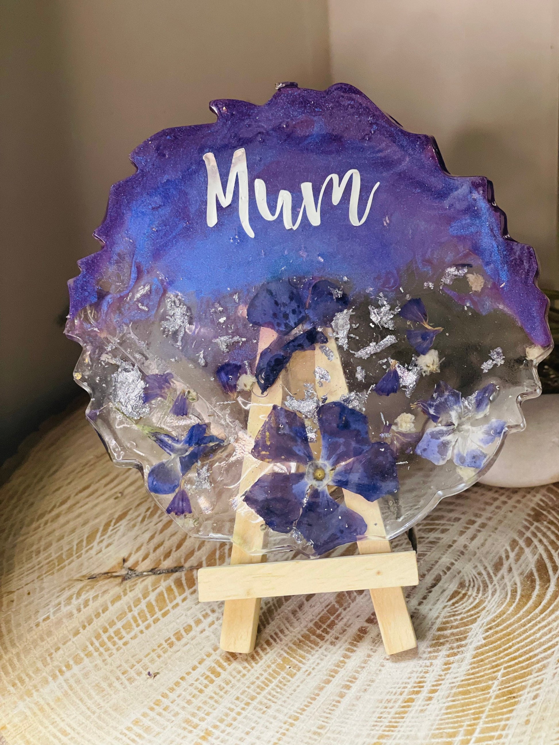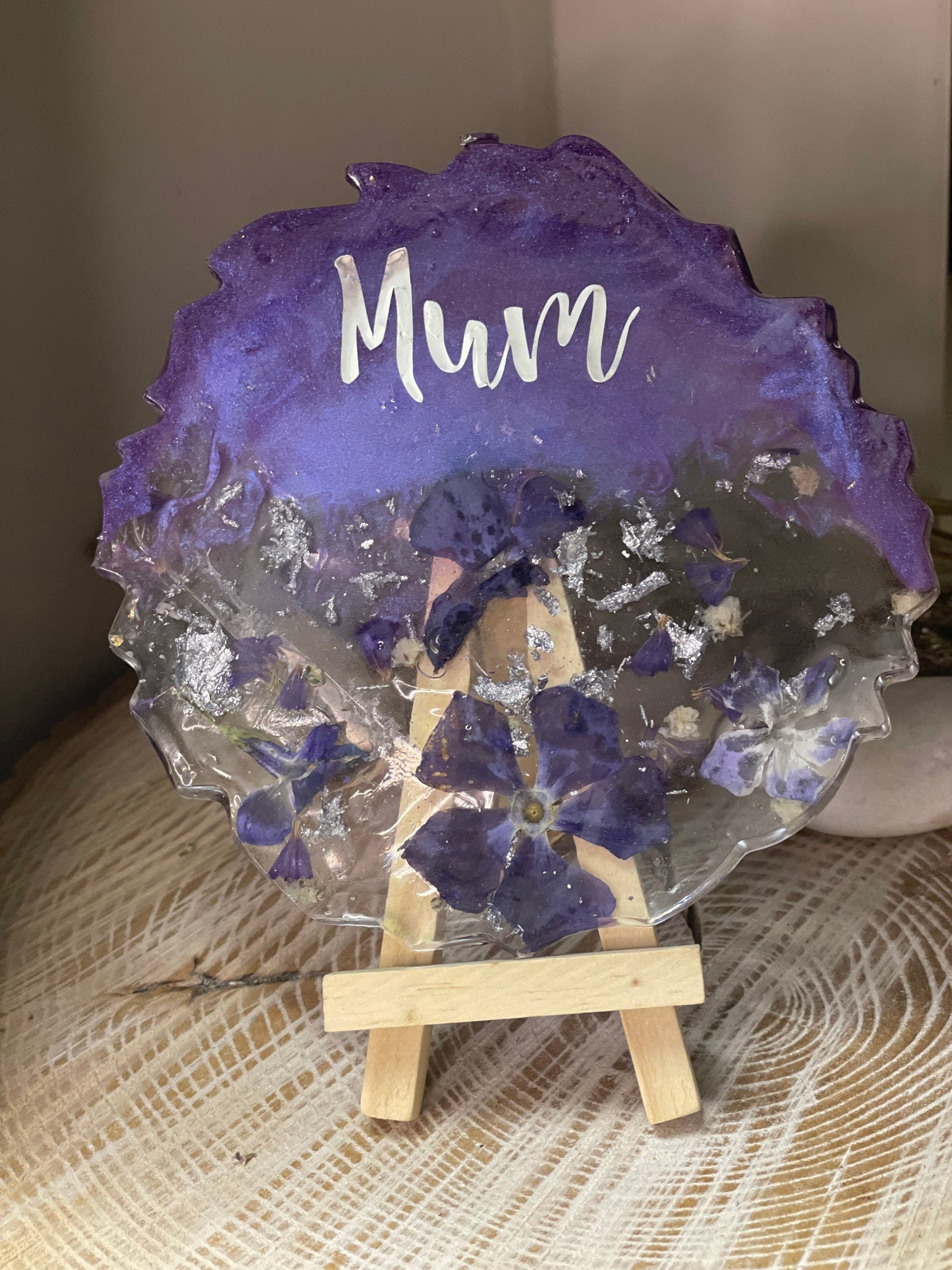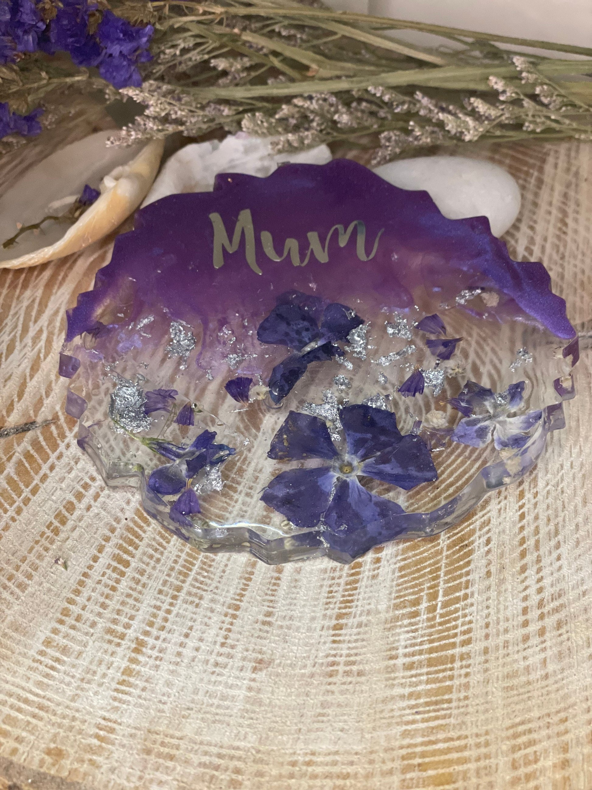 A beautifully sparkling geode coaster with a unique twist, they also contain real flowers and an be personalised.
