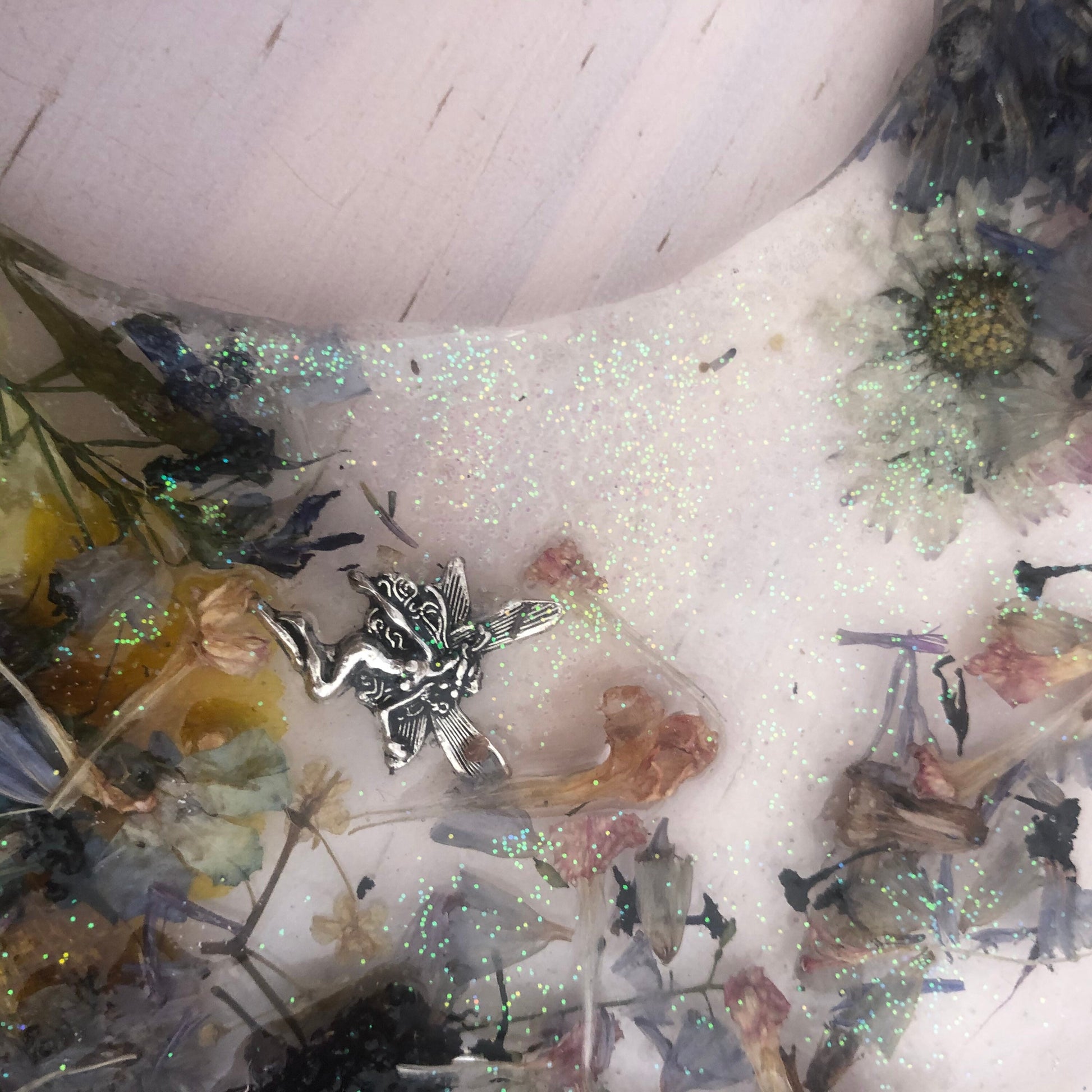 All of our items are unique and handmade with love and care using real pressed flower and foliage preserved in epoxy resin. We grow as many of our own flowers as we can, but occasionally we do have to outsource to meet demands.