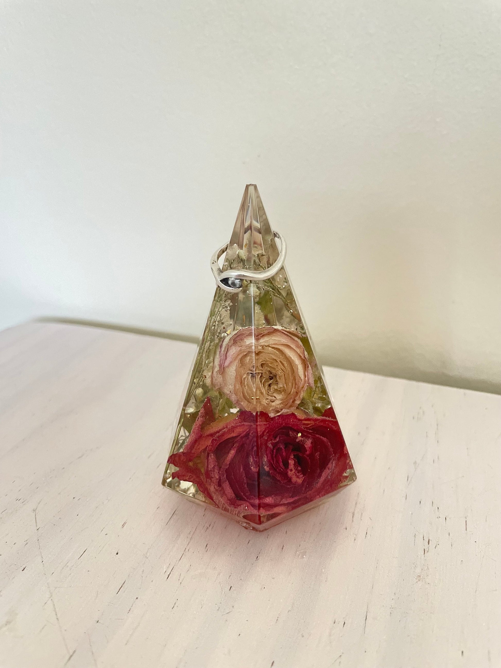 Real flower and resin geometric ring holder, wedding ring storage,flower preservation, wedding bouquet keep sake, wedding gift, gift for her