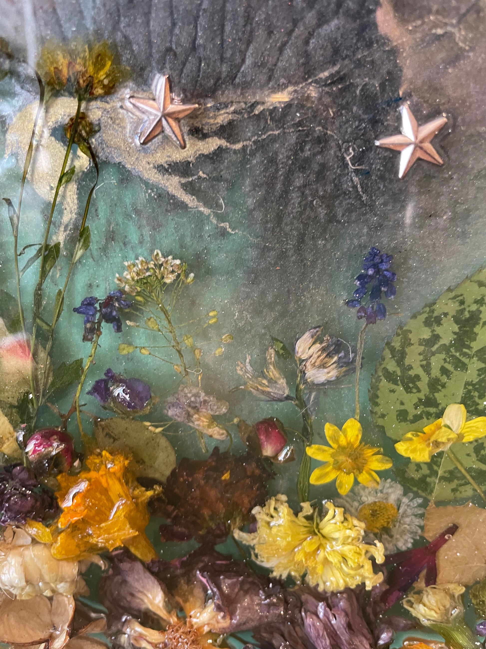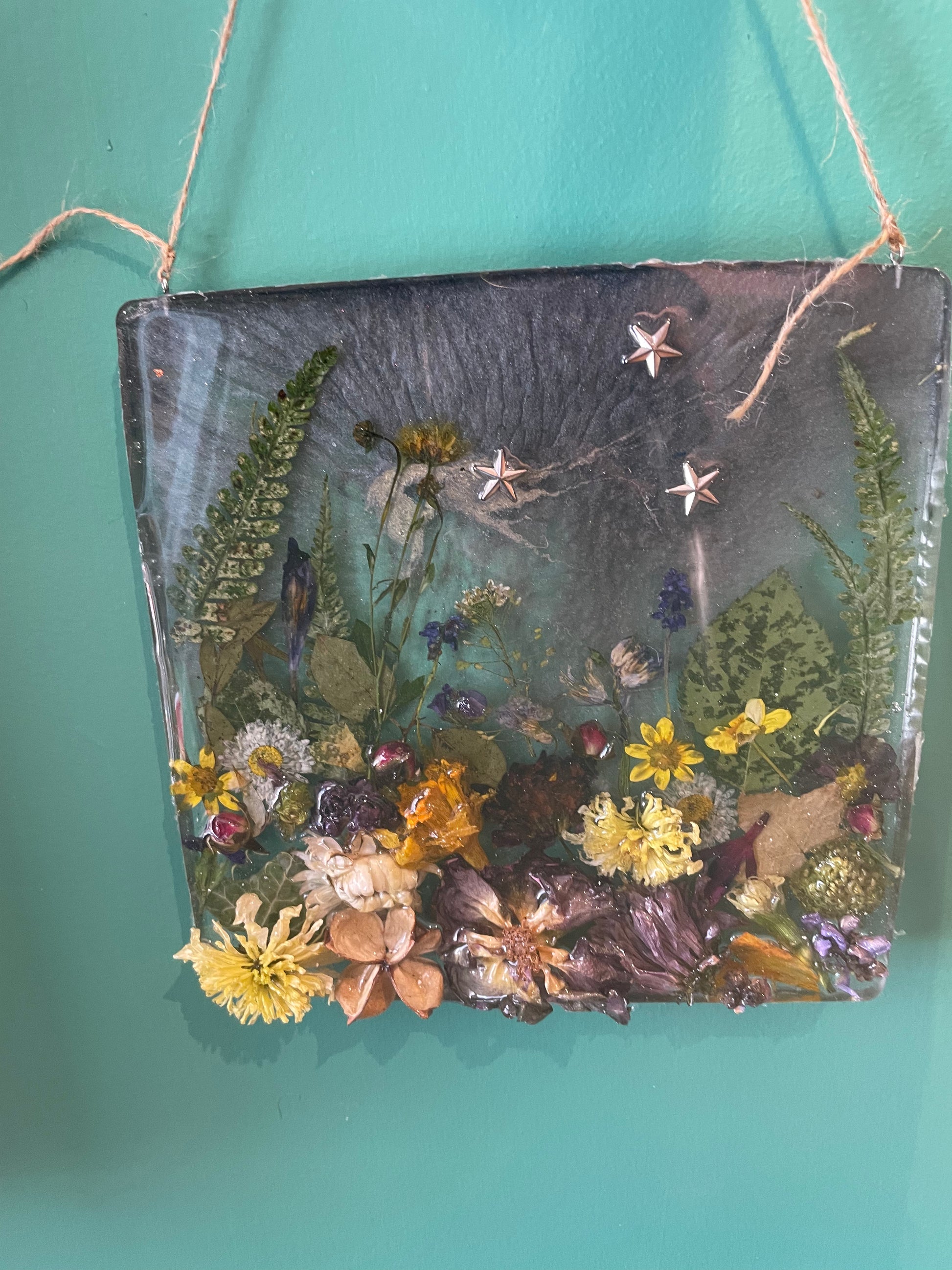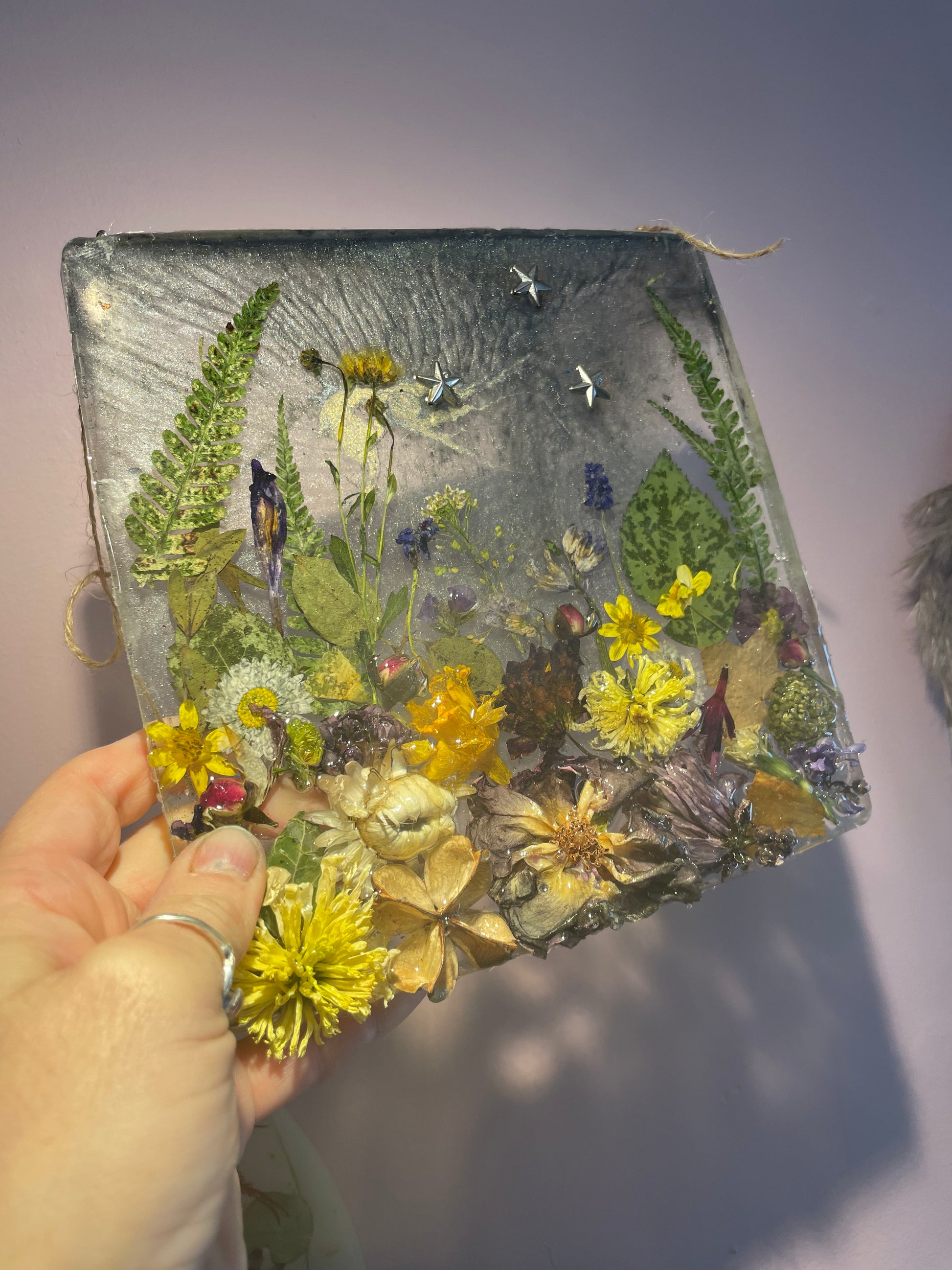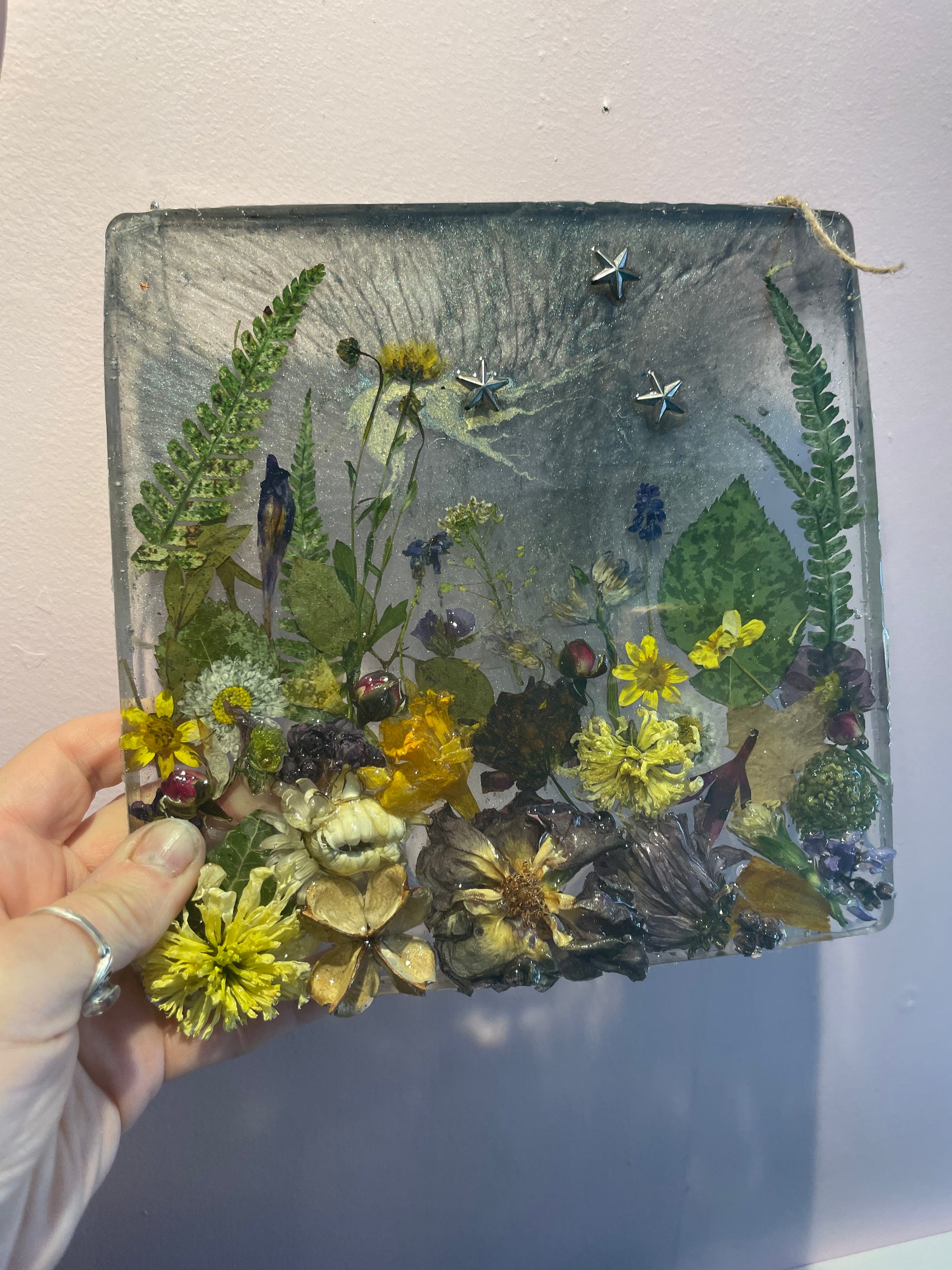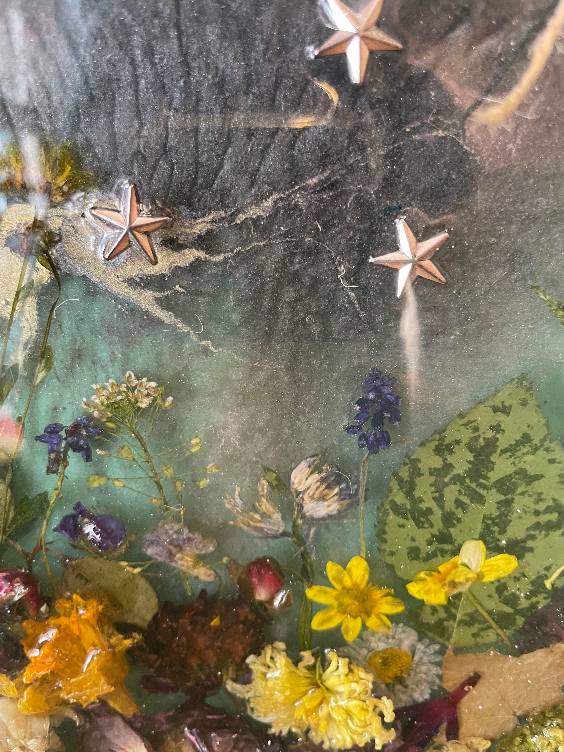 Resin and real flower moonlight scene, woodland and wildflower resin art, gift for nature lover, Christmas gift for her, resin nature decor