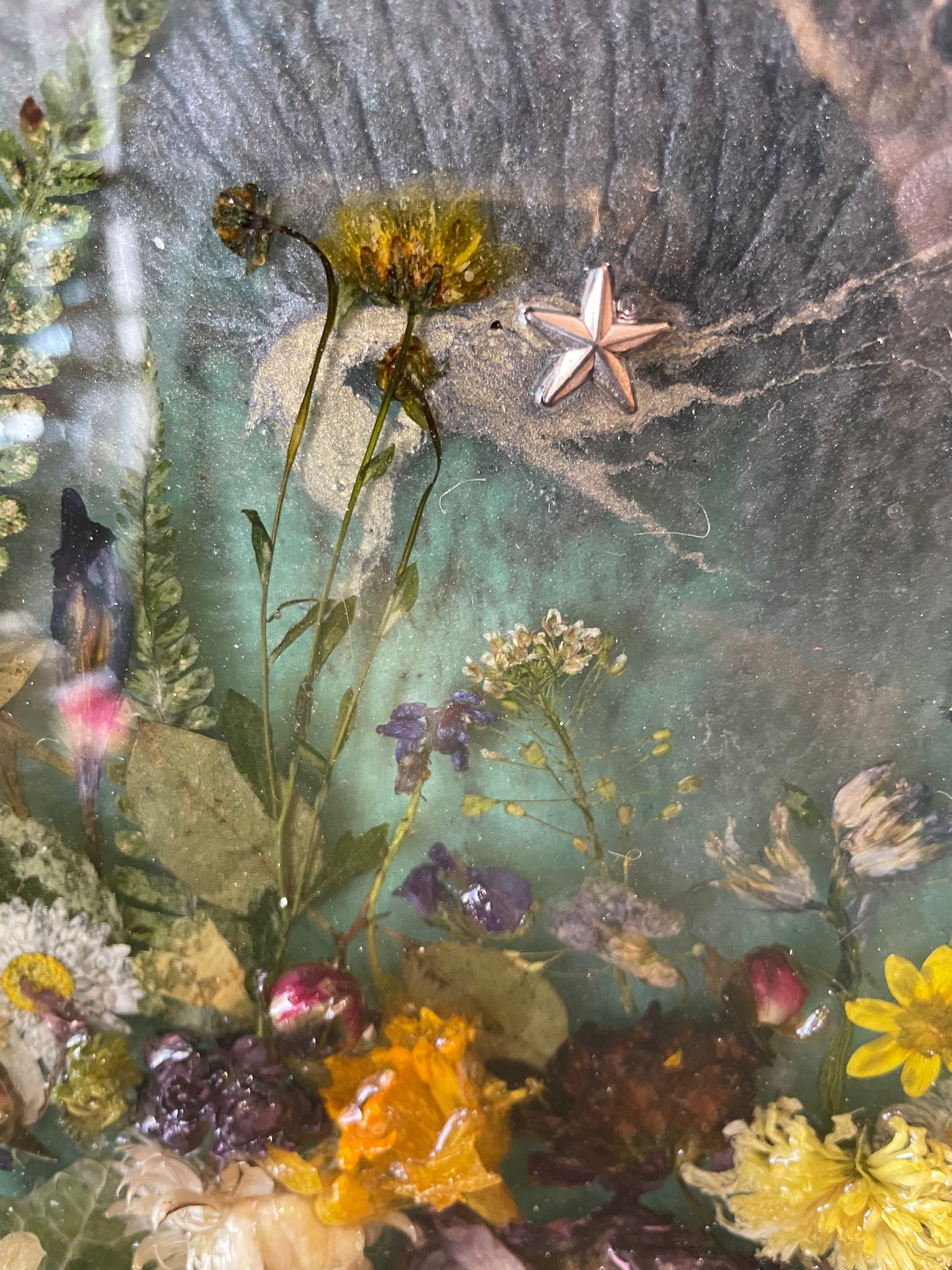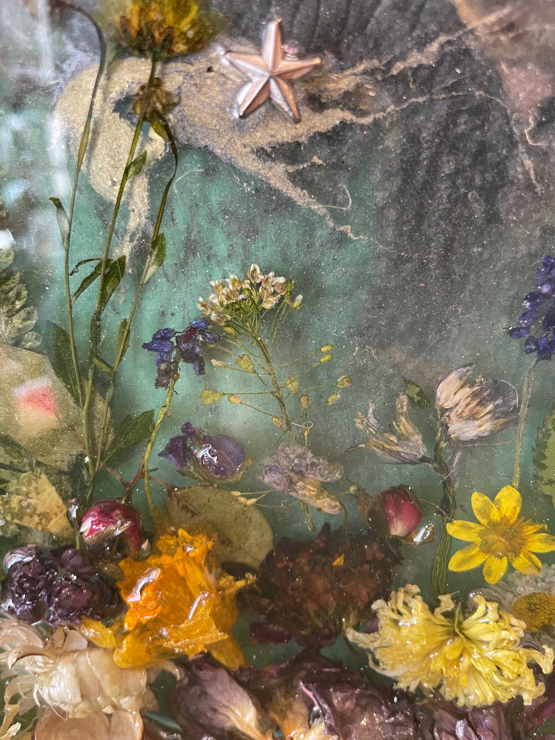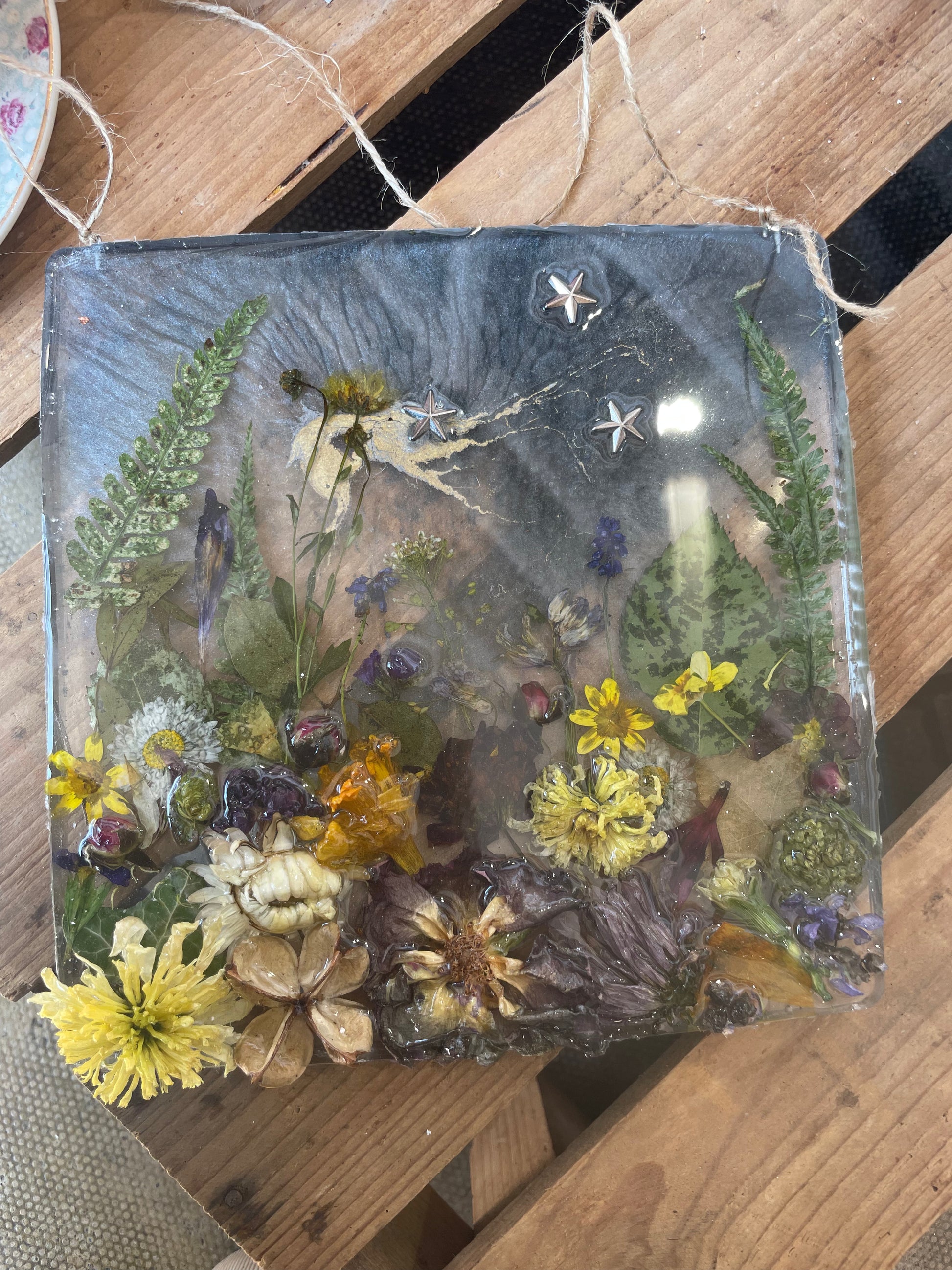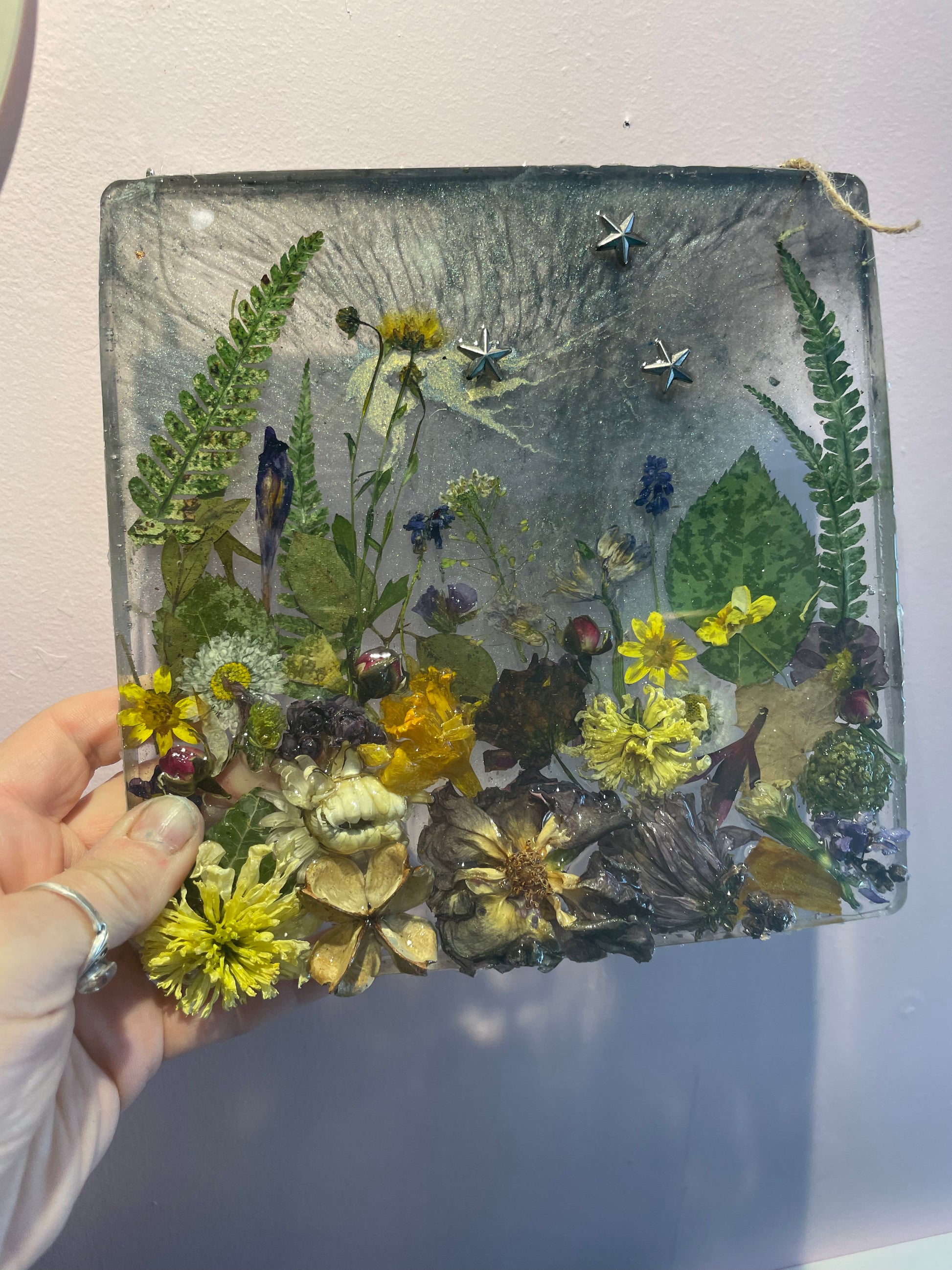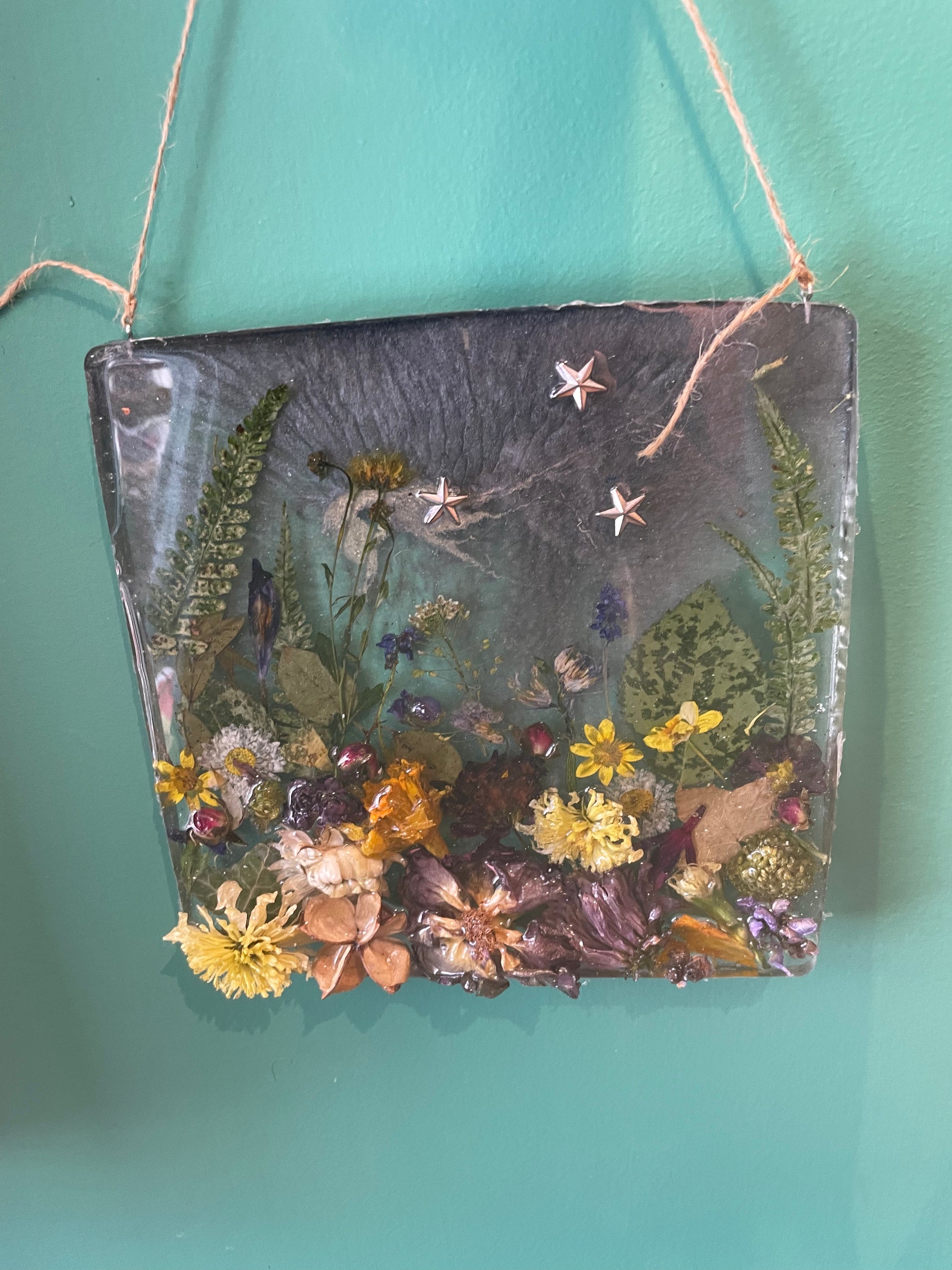 Resin and real flower moonlight scene, woodland and wildflower resin art, gift for nature lover, Christmas gift for her, resin nature decor