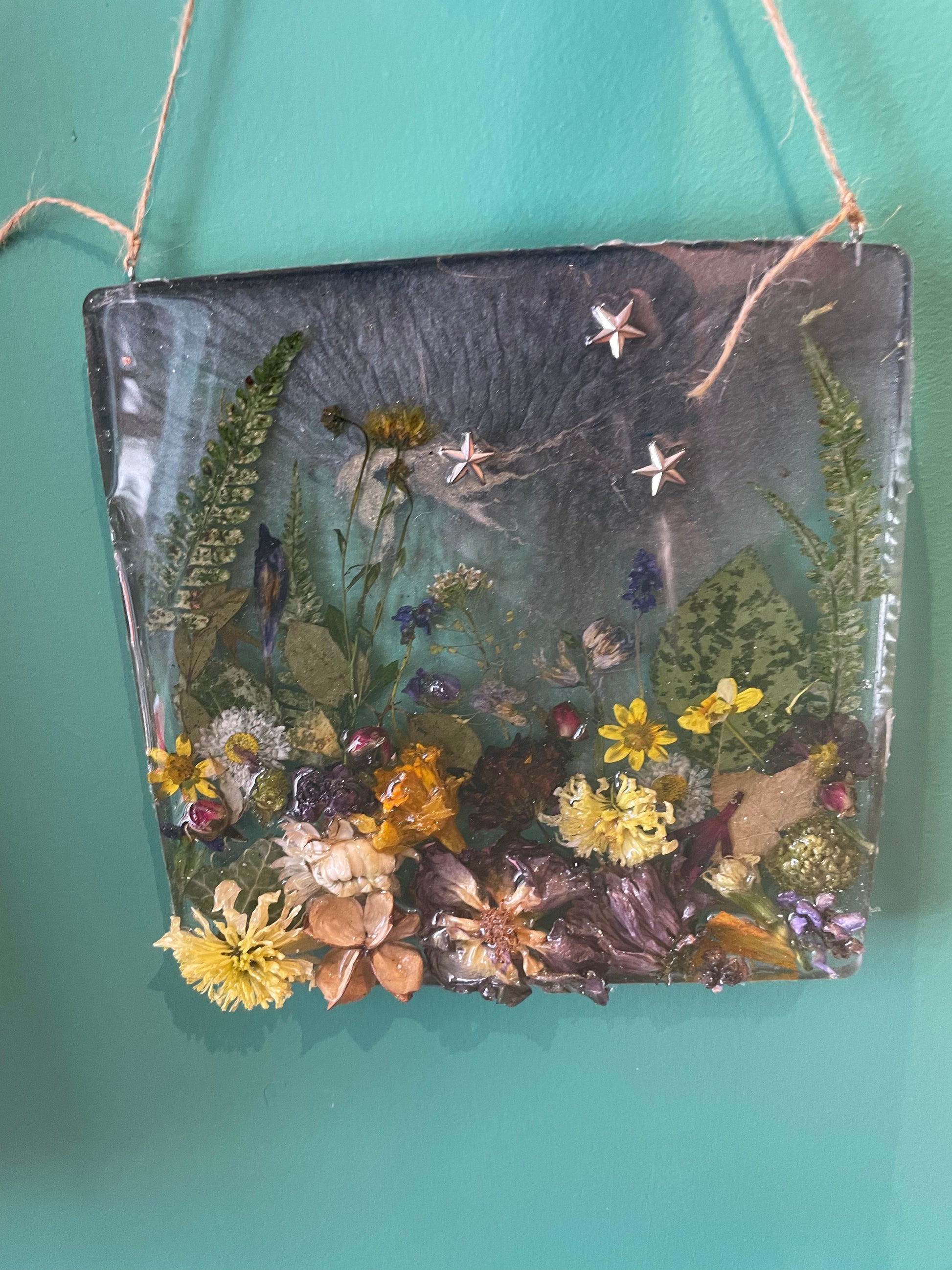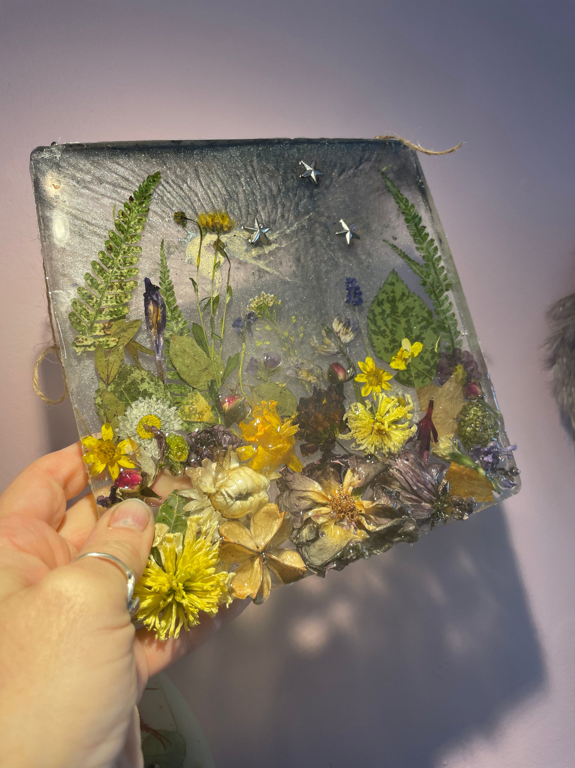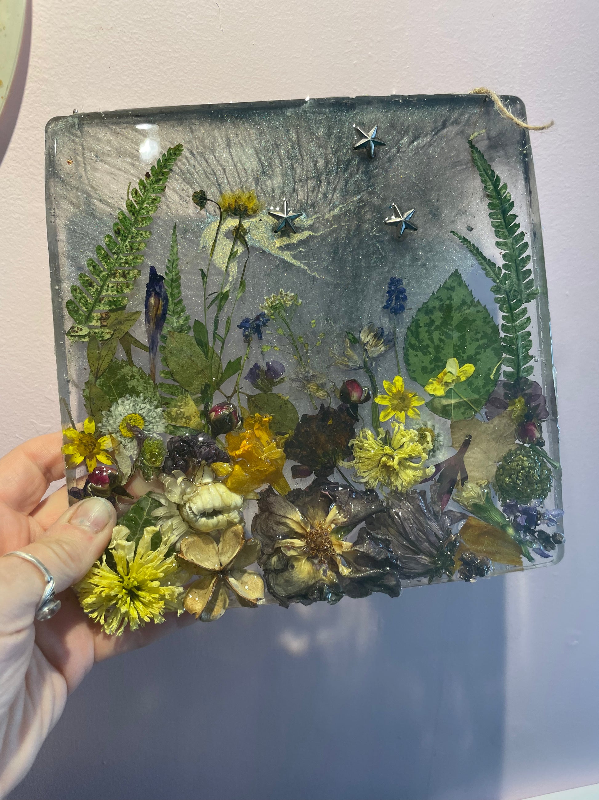 The resin that we use is UV resistant to limit yellowing, to avoid this please keep your resin items out of full sunlight. All orders come wrapped in tissue paper tied with twine, we aim to use recyclable packaging where possible and reuse any packaging that comes to us. We have an optional gift card that is decorated in pressed flowers to add that extra special touch