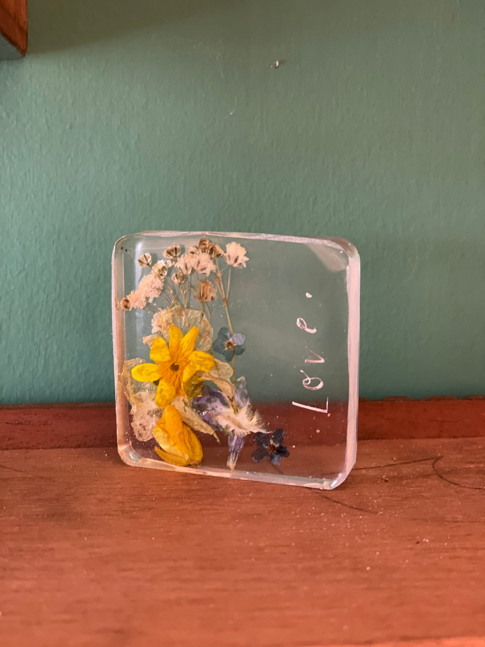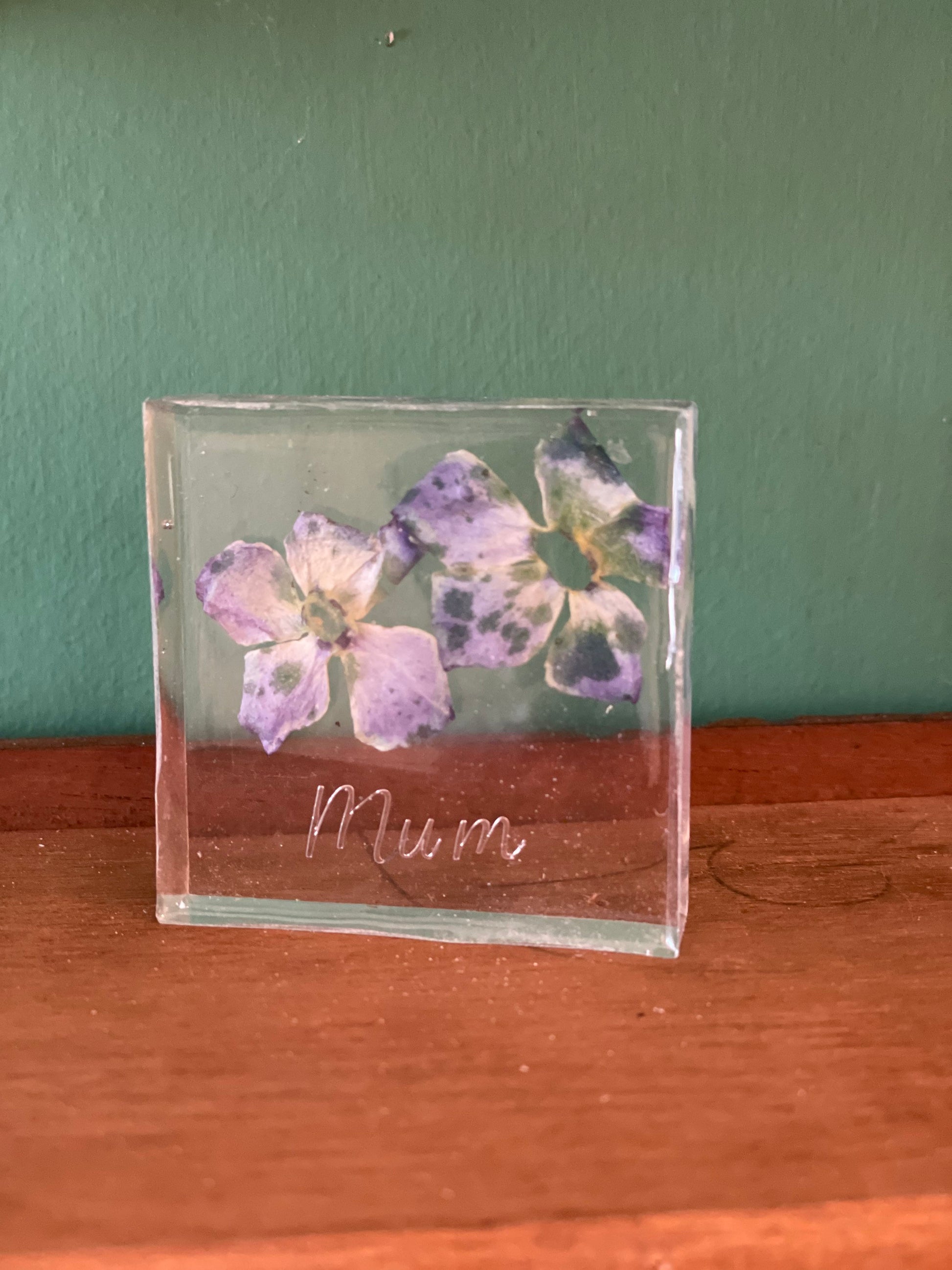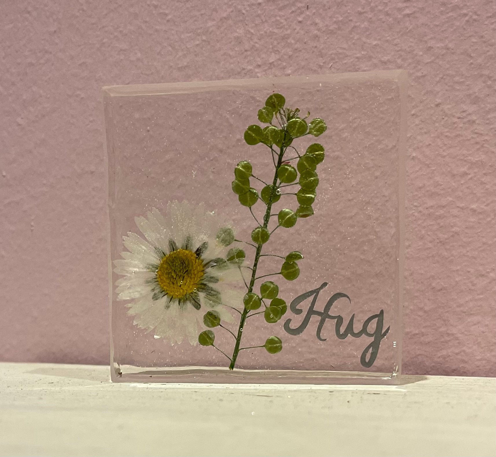 A beautiful square of resin that can be stood or carried with you as a gift that shows you care