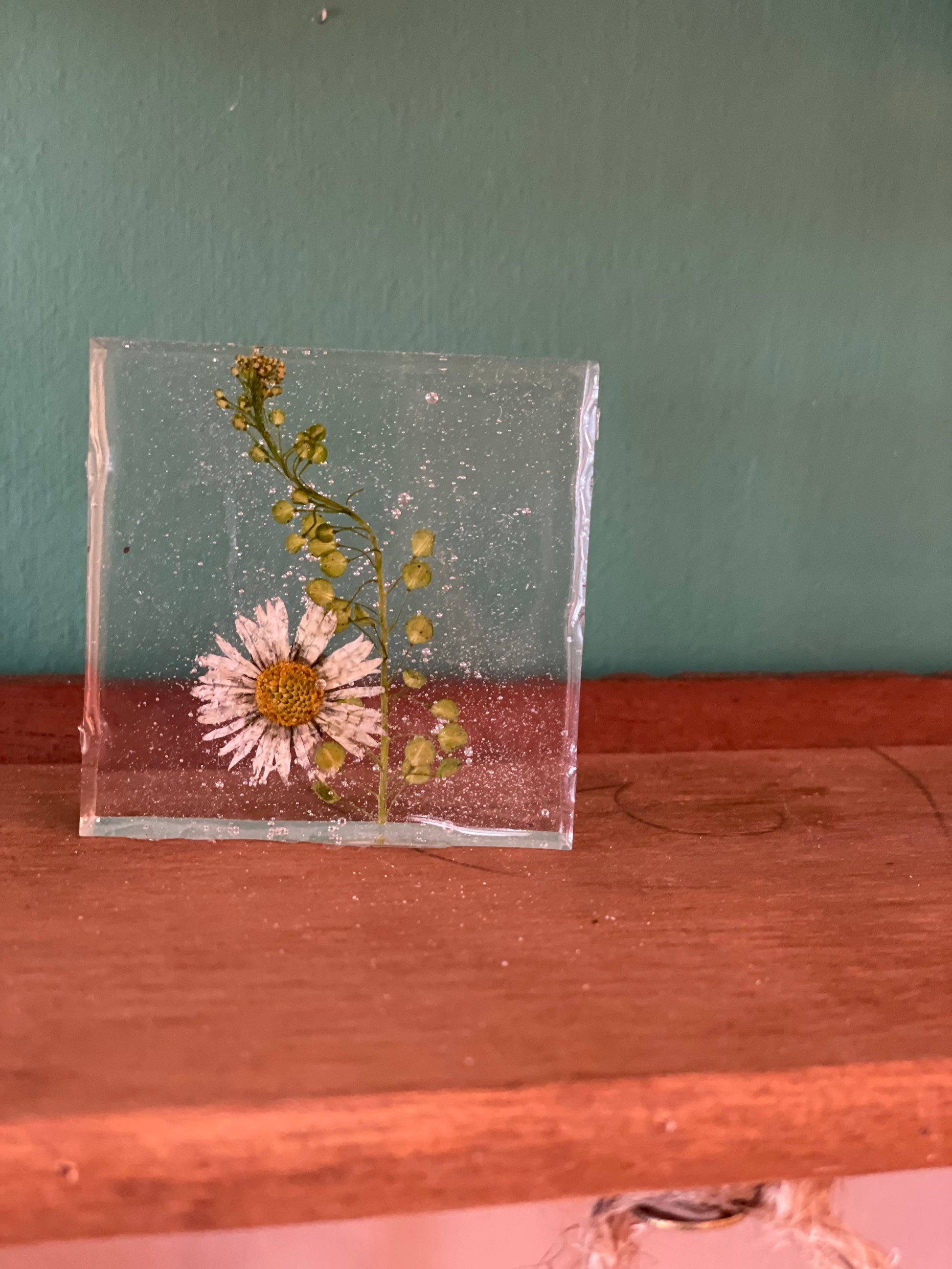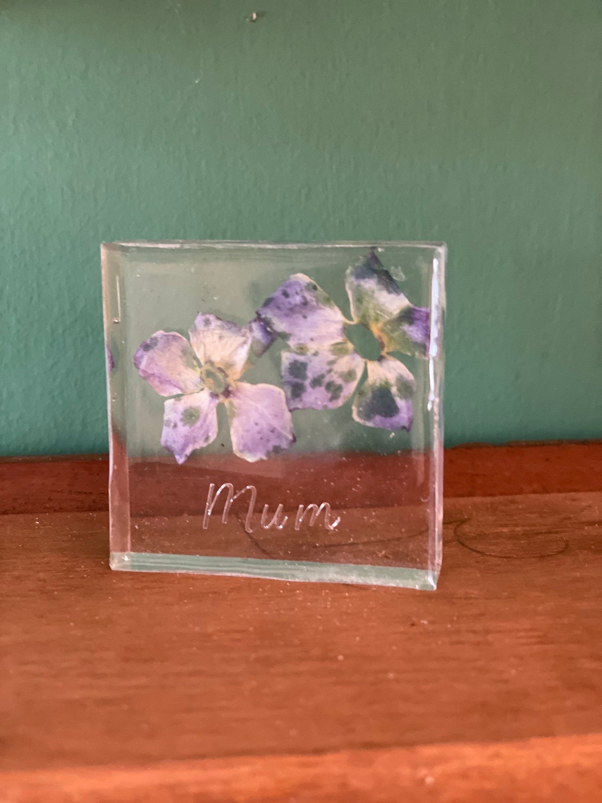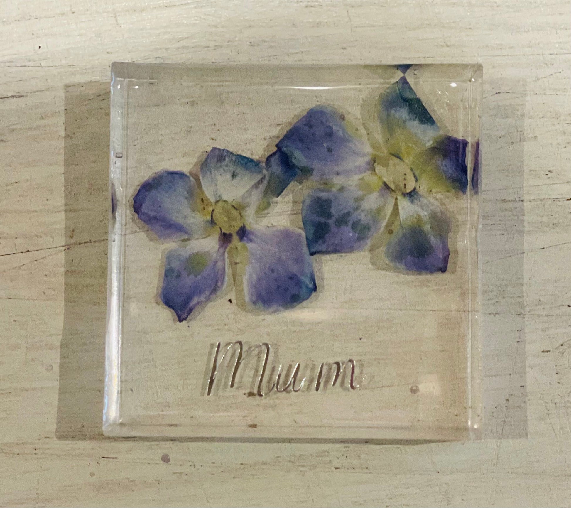 A beautiful square of resin that can be stood or carried with you as a gift that shows you care