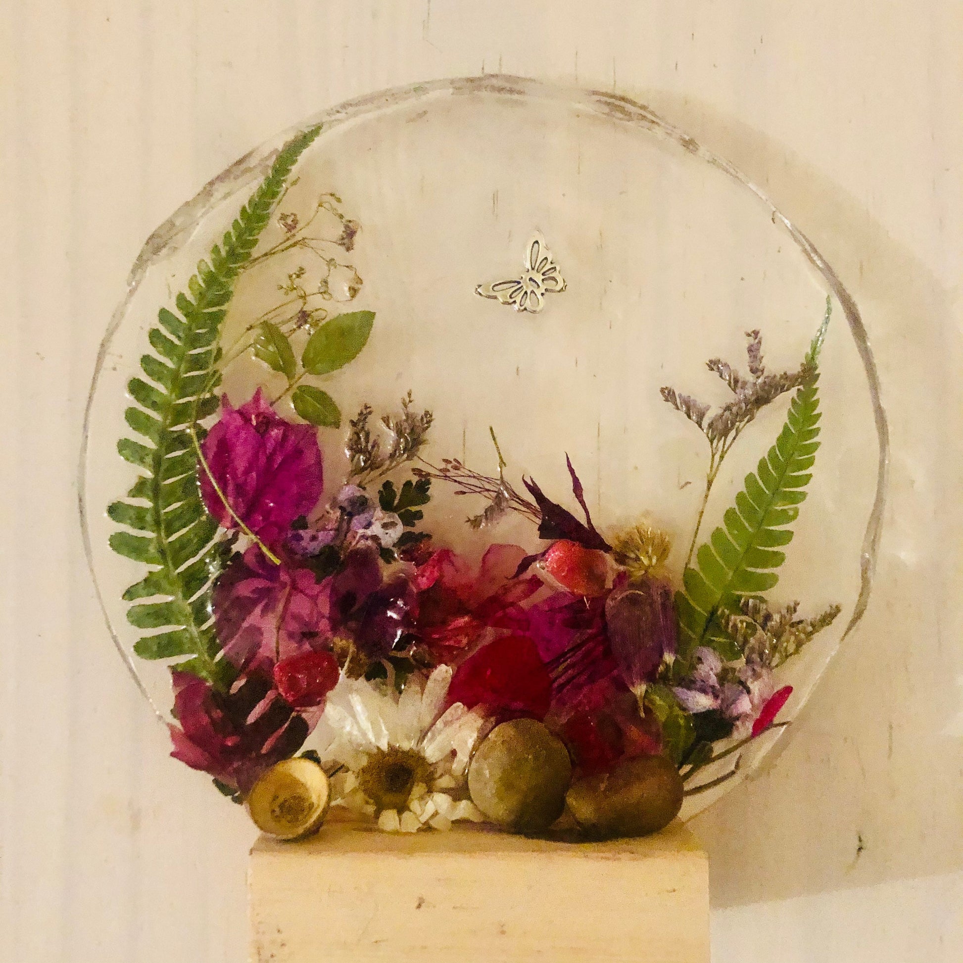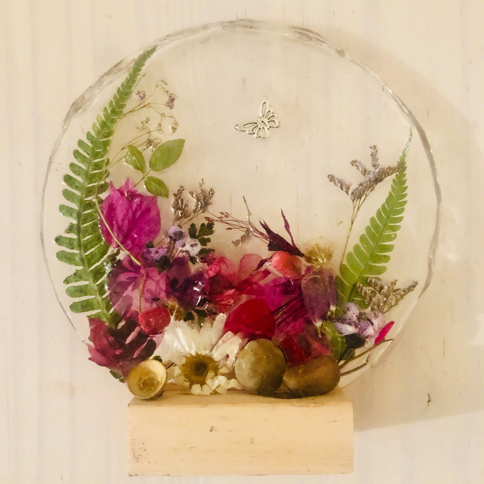 Wildflower and resin unique freestanding home decor, gift for her, birthday gift for nature lovers, English garden resin preservation