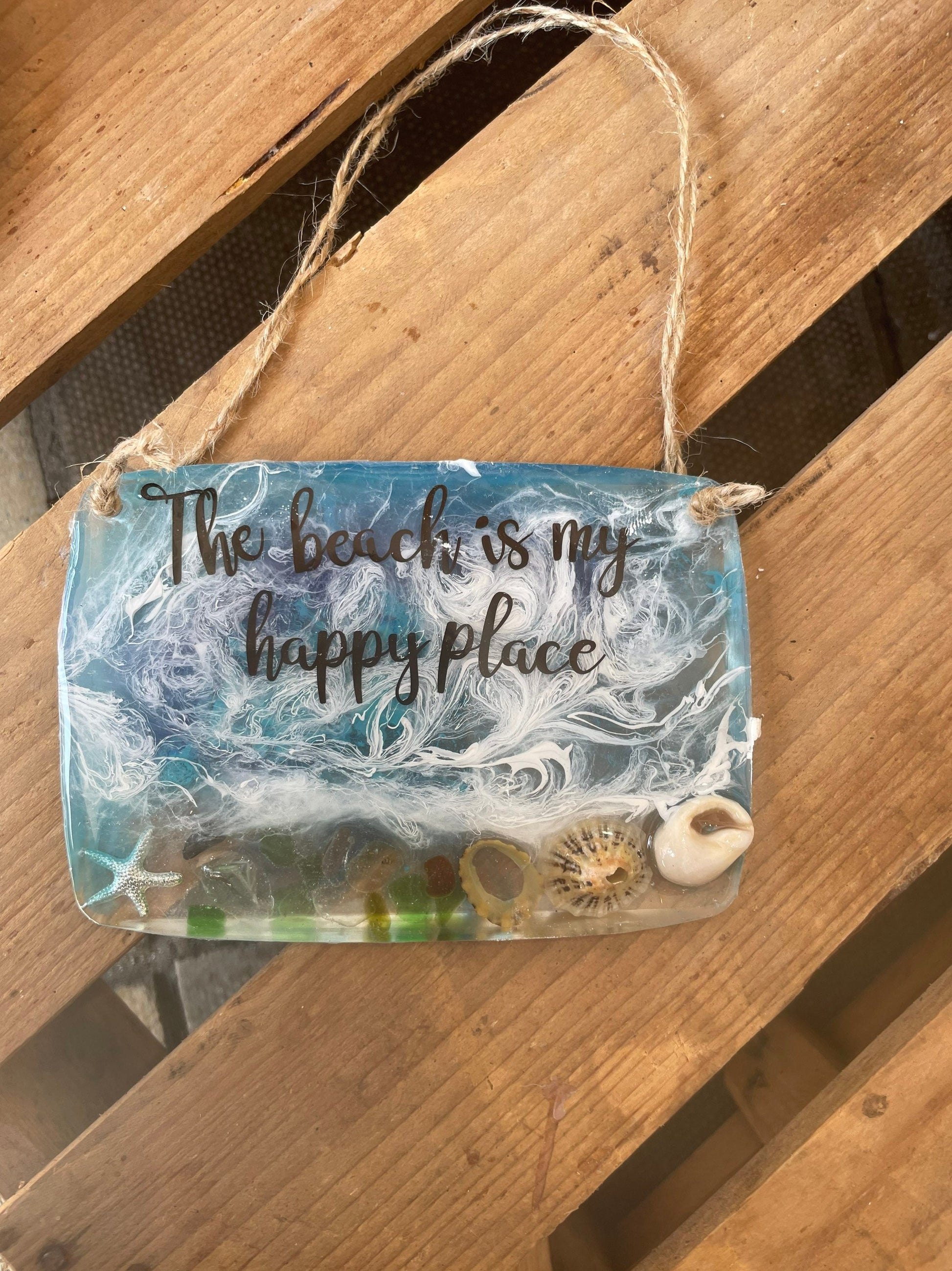 Resin waves hanging wall art, the beach is my happy place wall hanging, handmade gift for beach lover, gift for her, seaside gift for her,