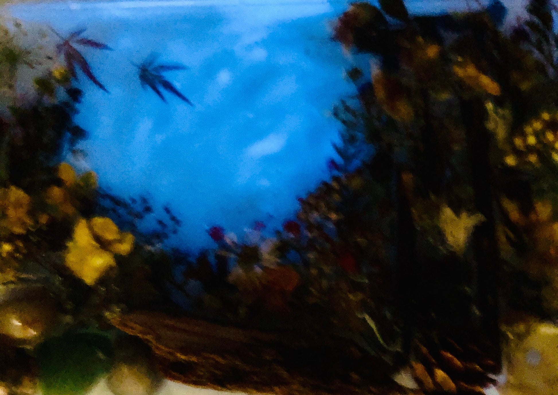 This piece has a touchable 3D effect so you can run your fingers over the flowers, leaves, twigs shells and imagine that you are in the great outdoors.