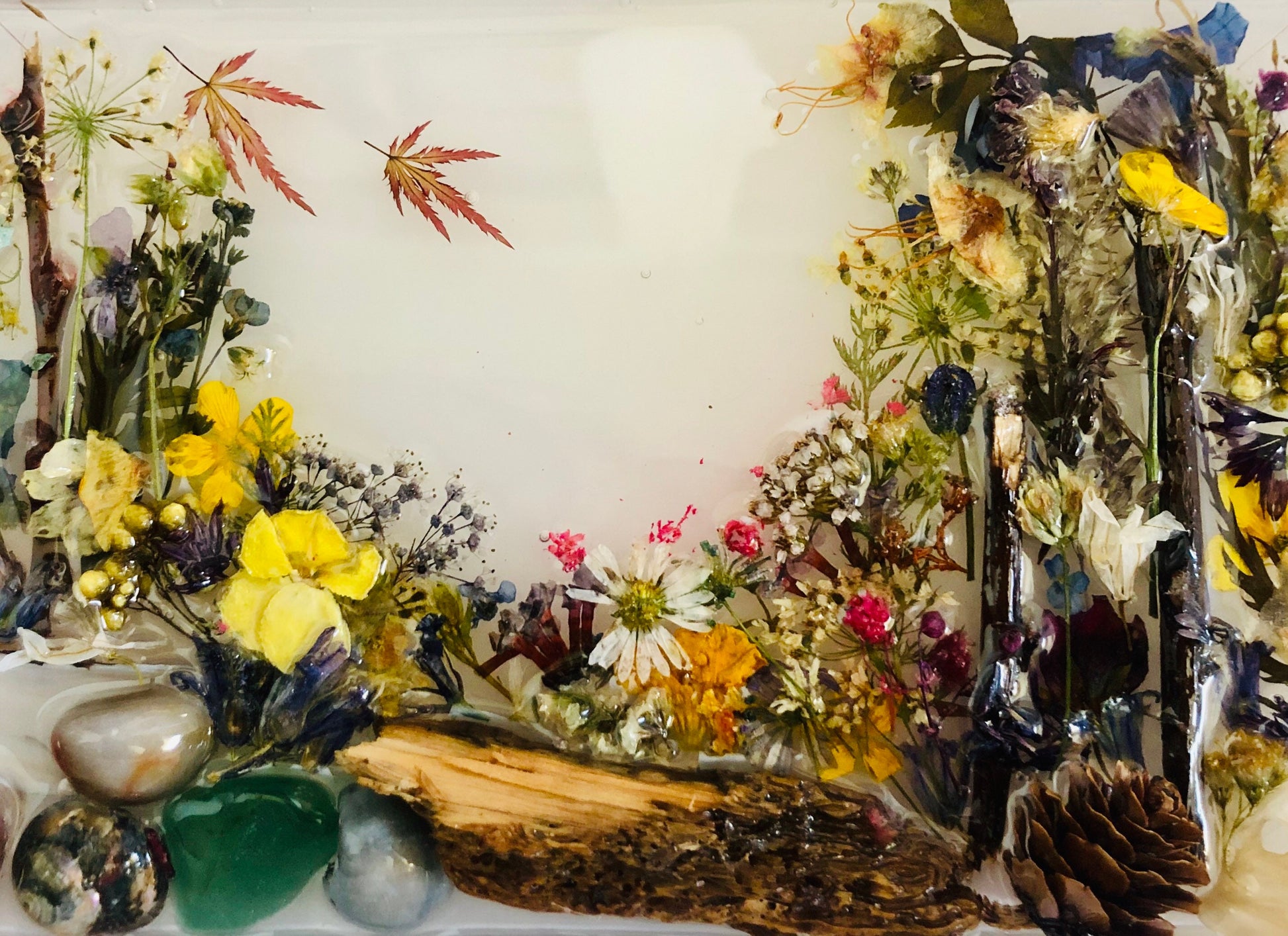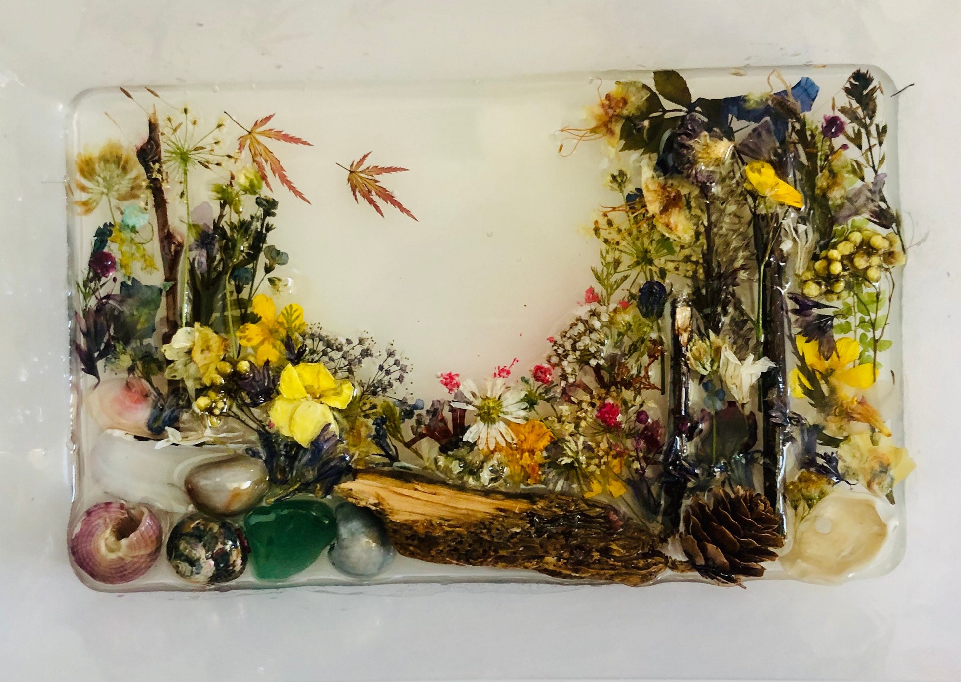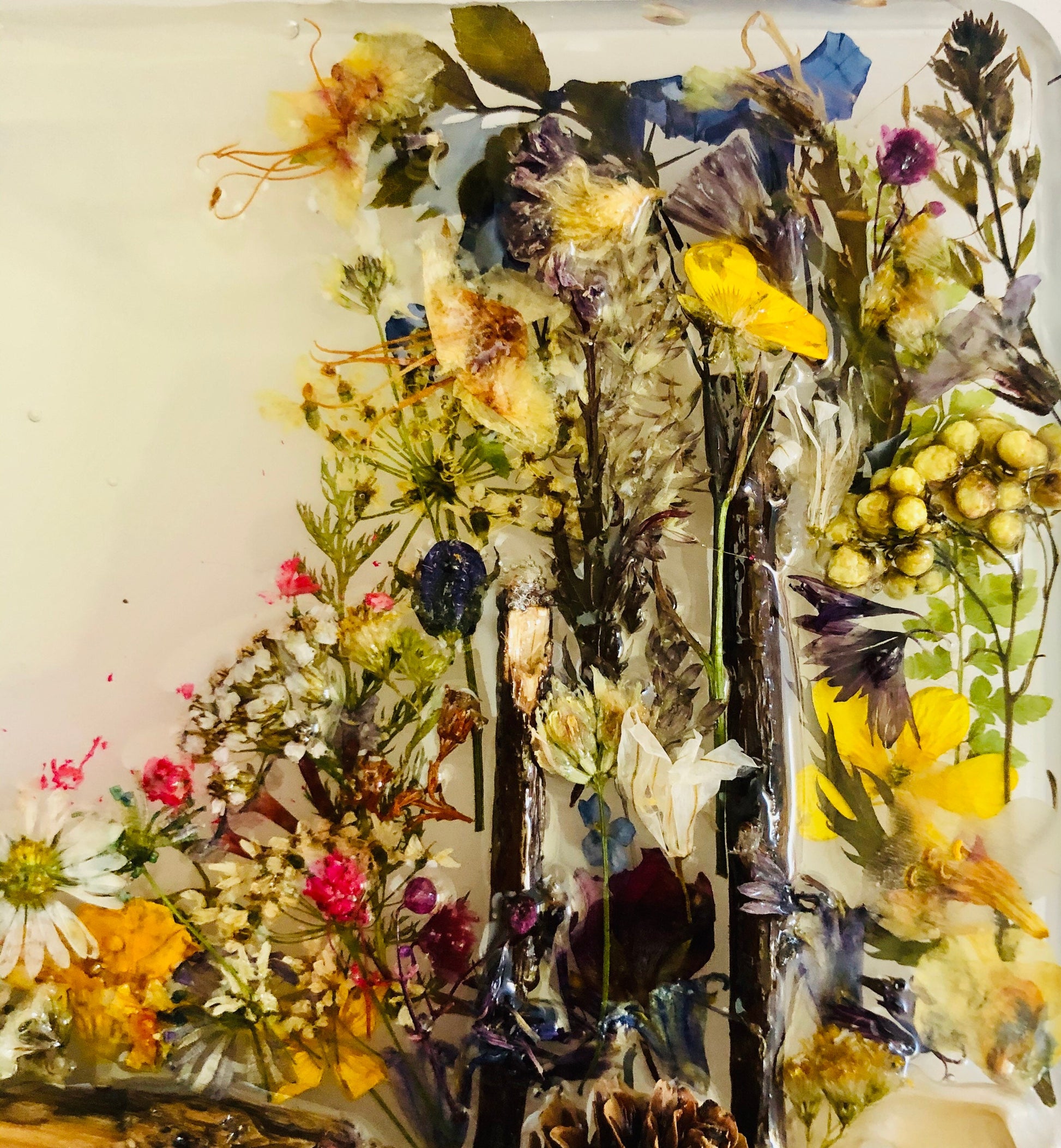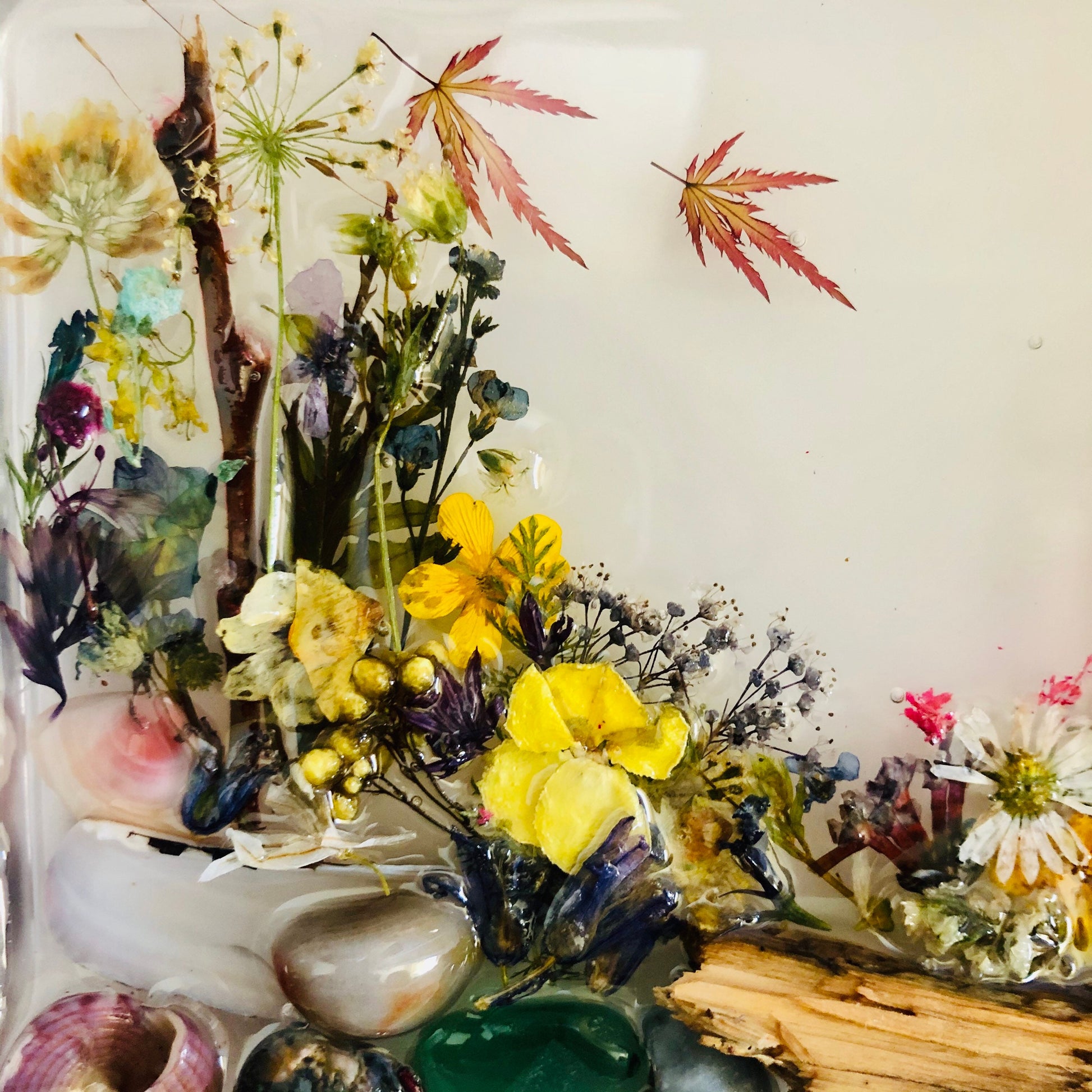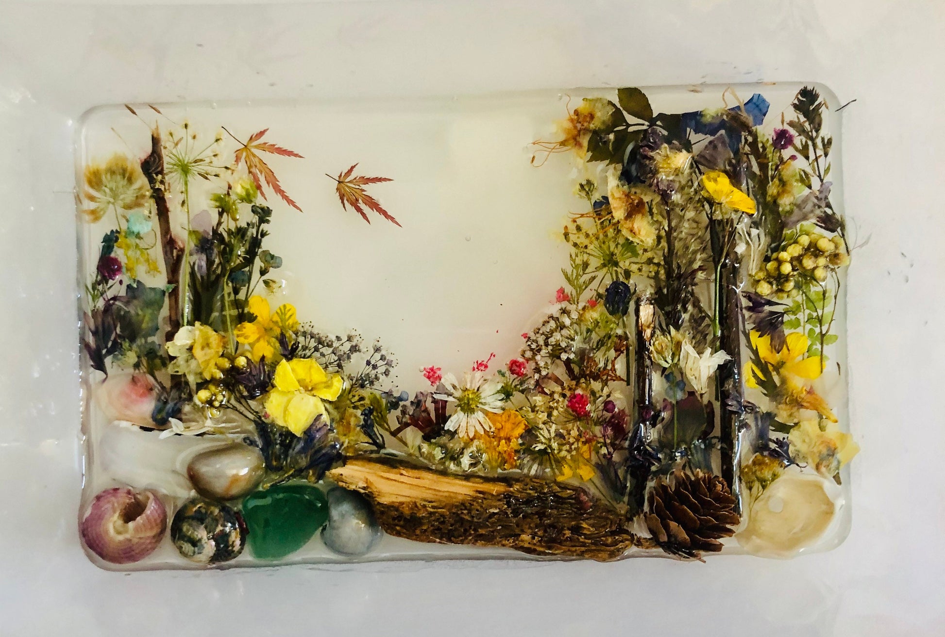 Real flower and Resin flower wall hanging , real flower resin woodland scene,botanical flower decor,birthday gift for her,resin wall art ,