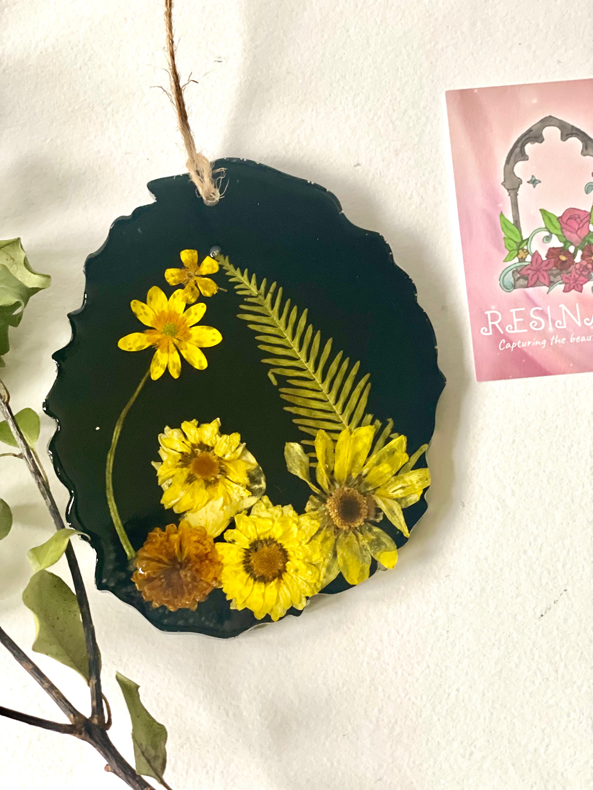 Real flower and resin gift, hanging resin flower ornament, gift for nature lover, spring birthday gift,