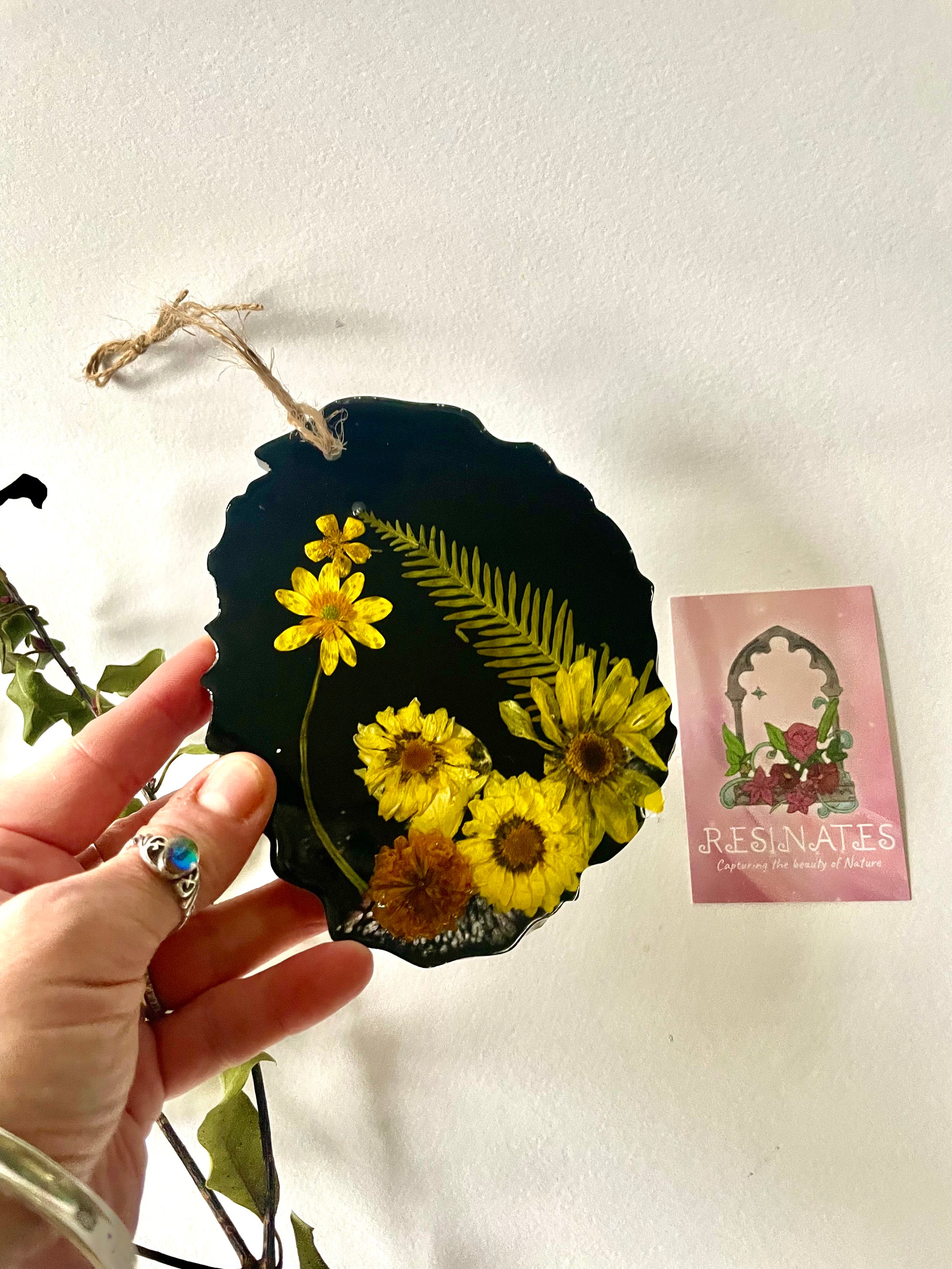 The resin that we use is UV resistant to limit yellowing, to avoid this please keep your resin items out of full sunlight. All orders come wrapped in tissue paper tied with twine, we aim to use recyclable packaging where possible and reuse any packaging that comes to us.