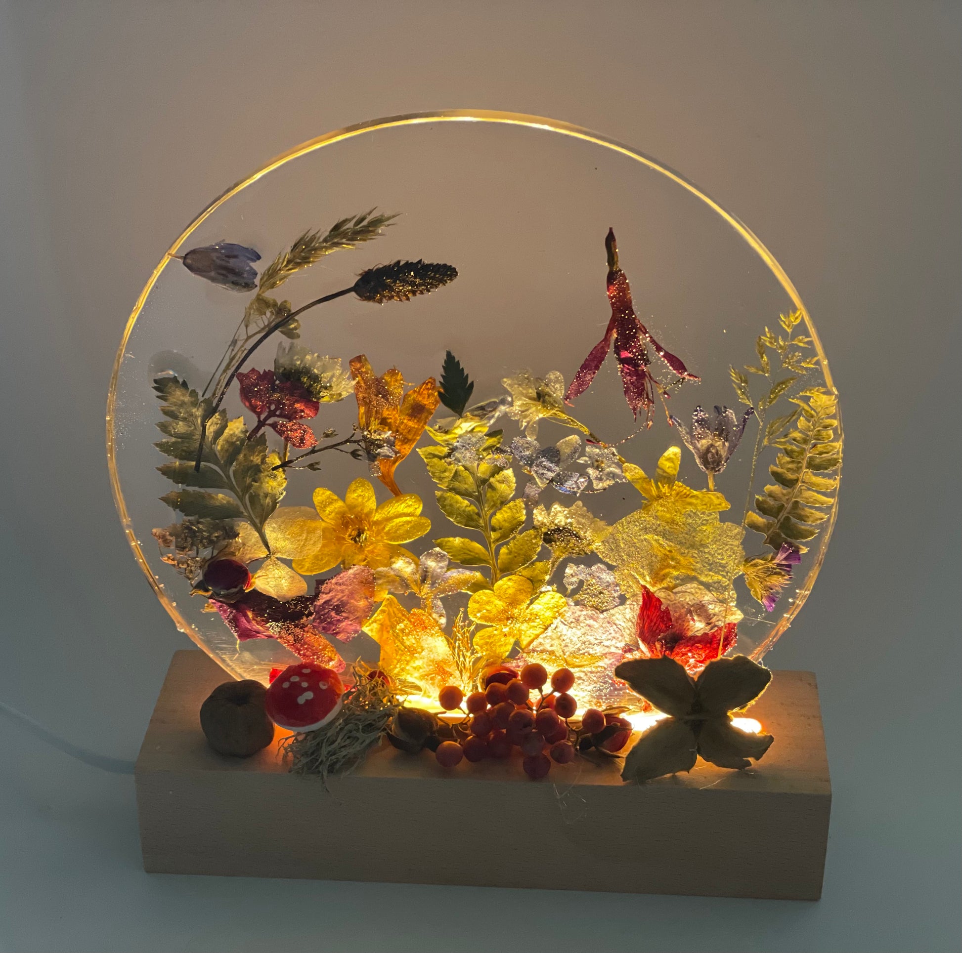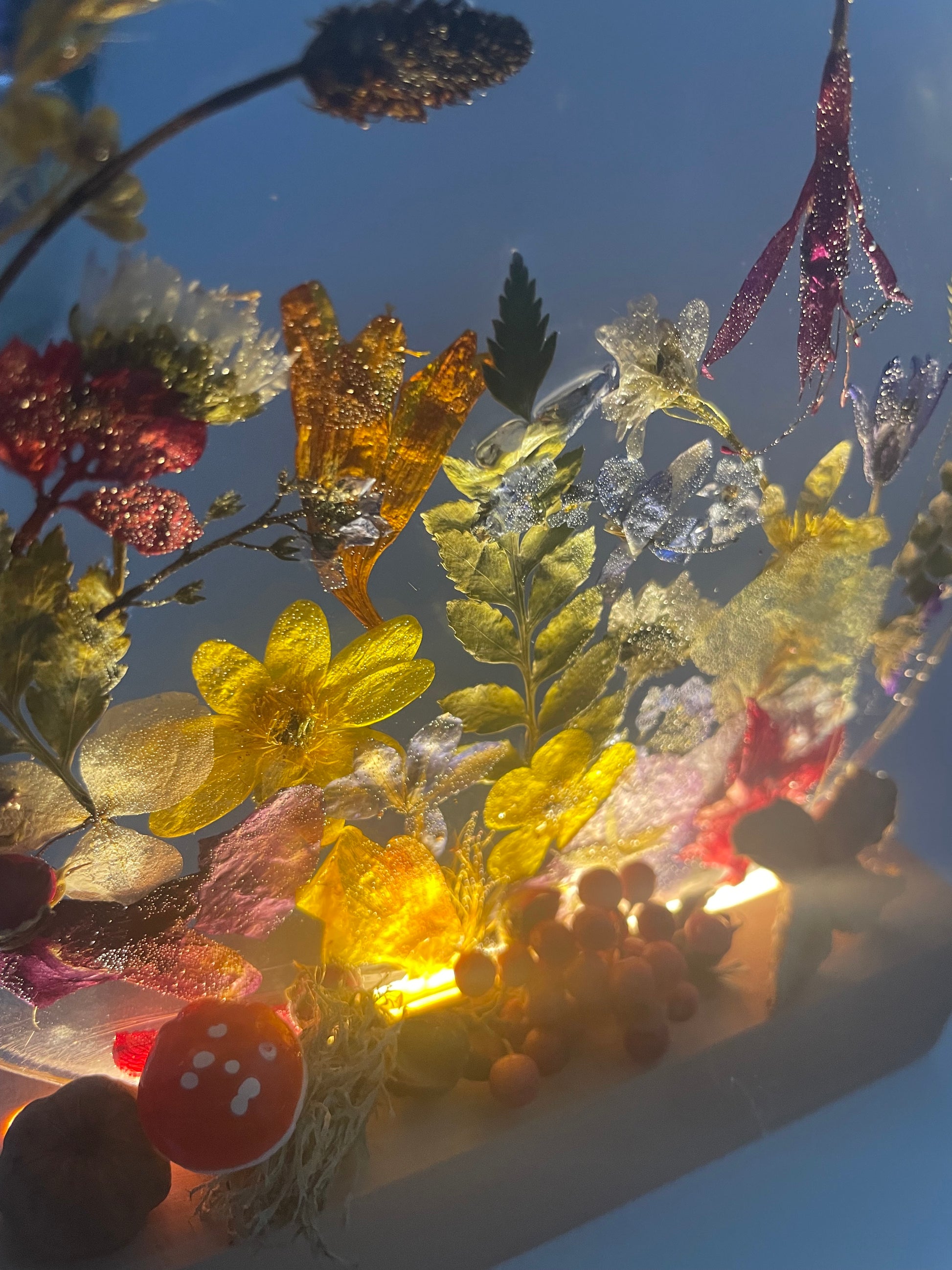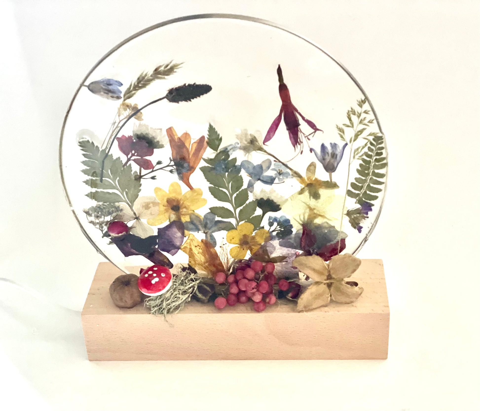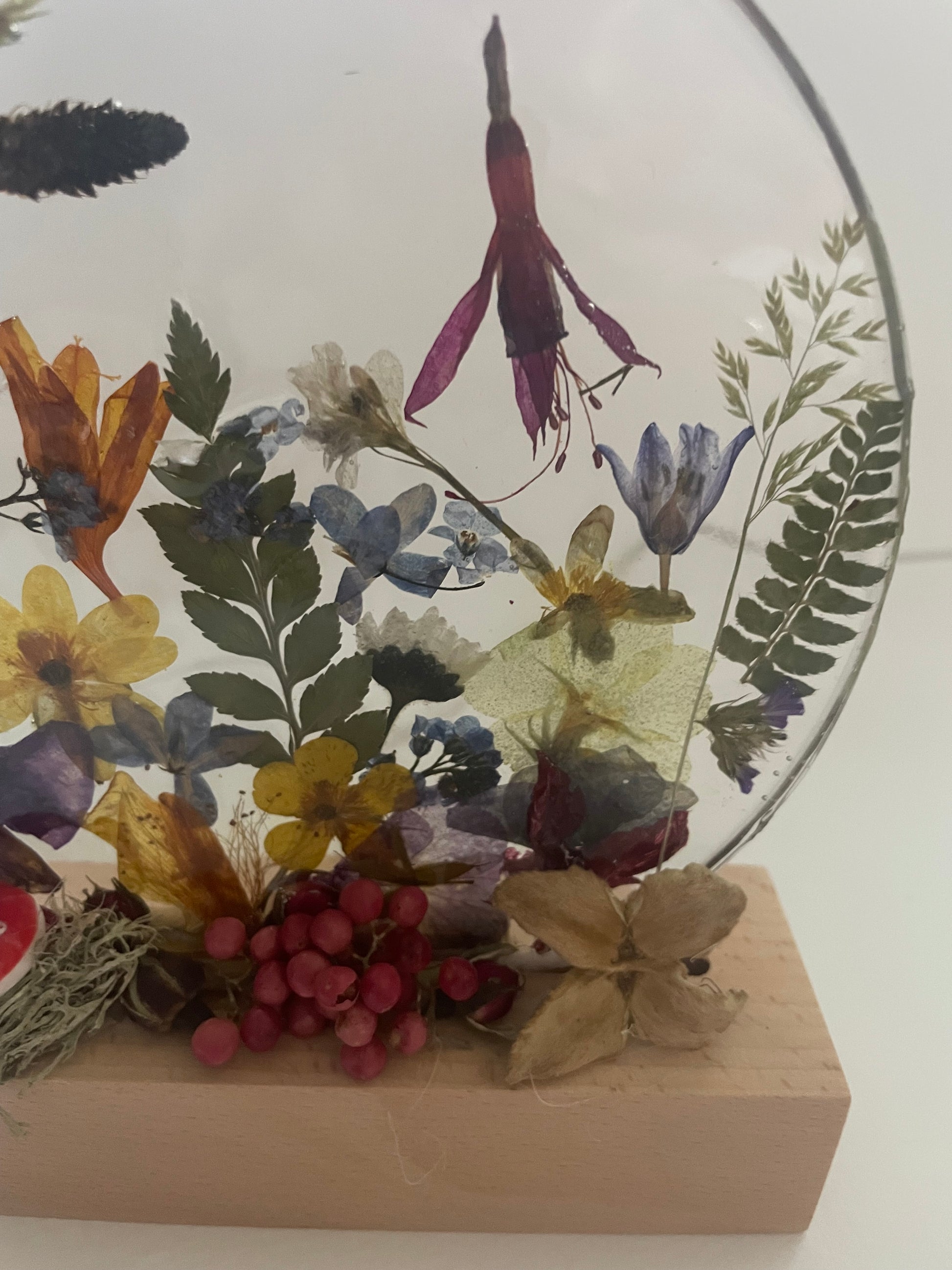 Wildflower and resin unique freestanding home decor, gift for her, birthday gift for nature lovers, English garden resin preservation