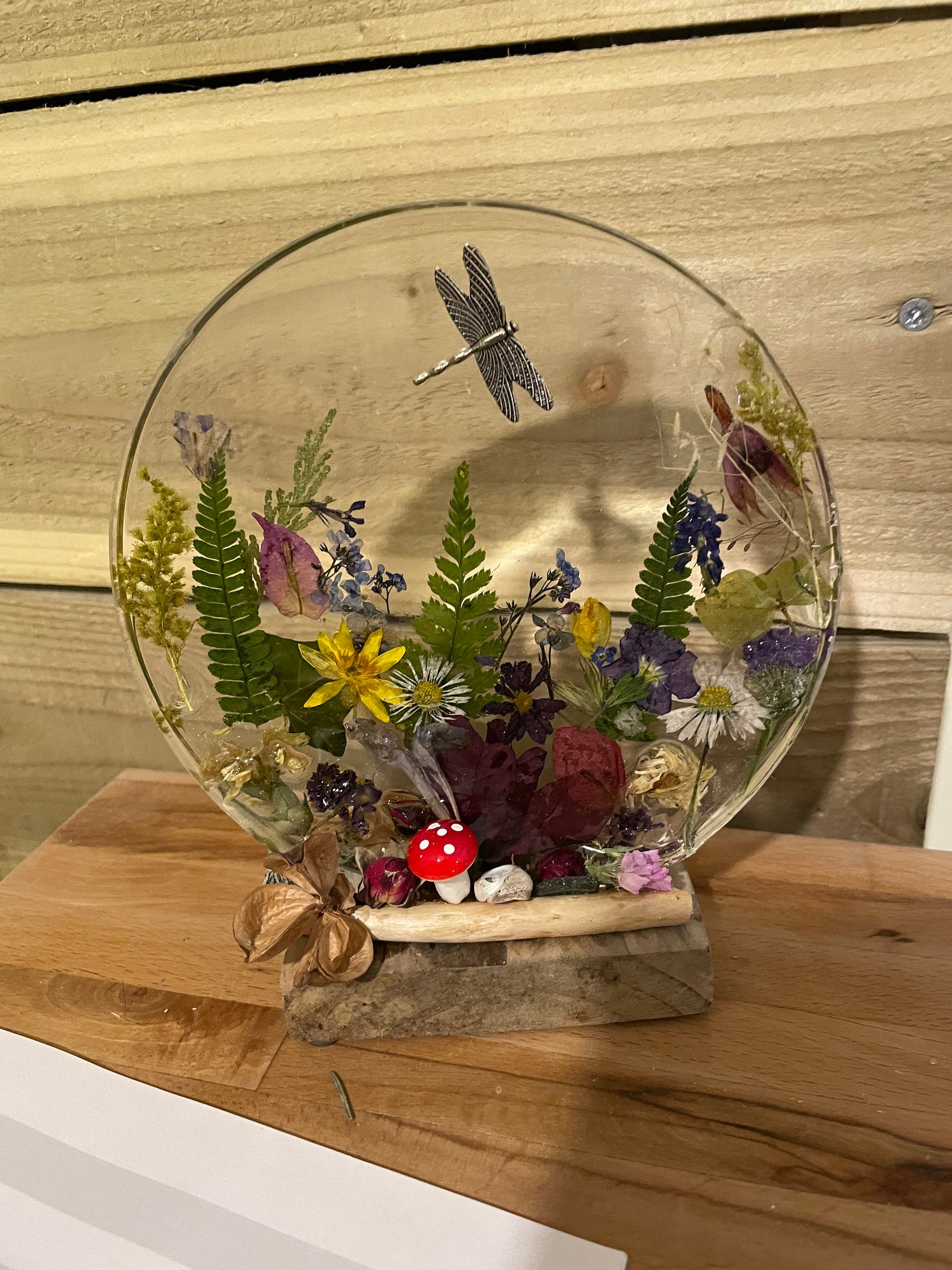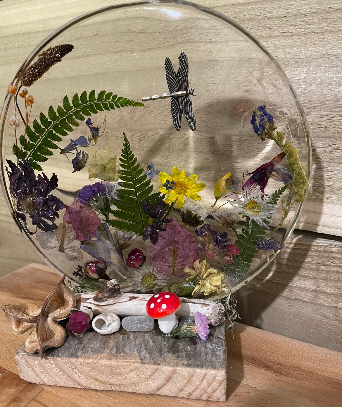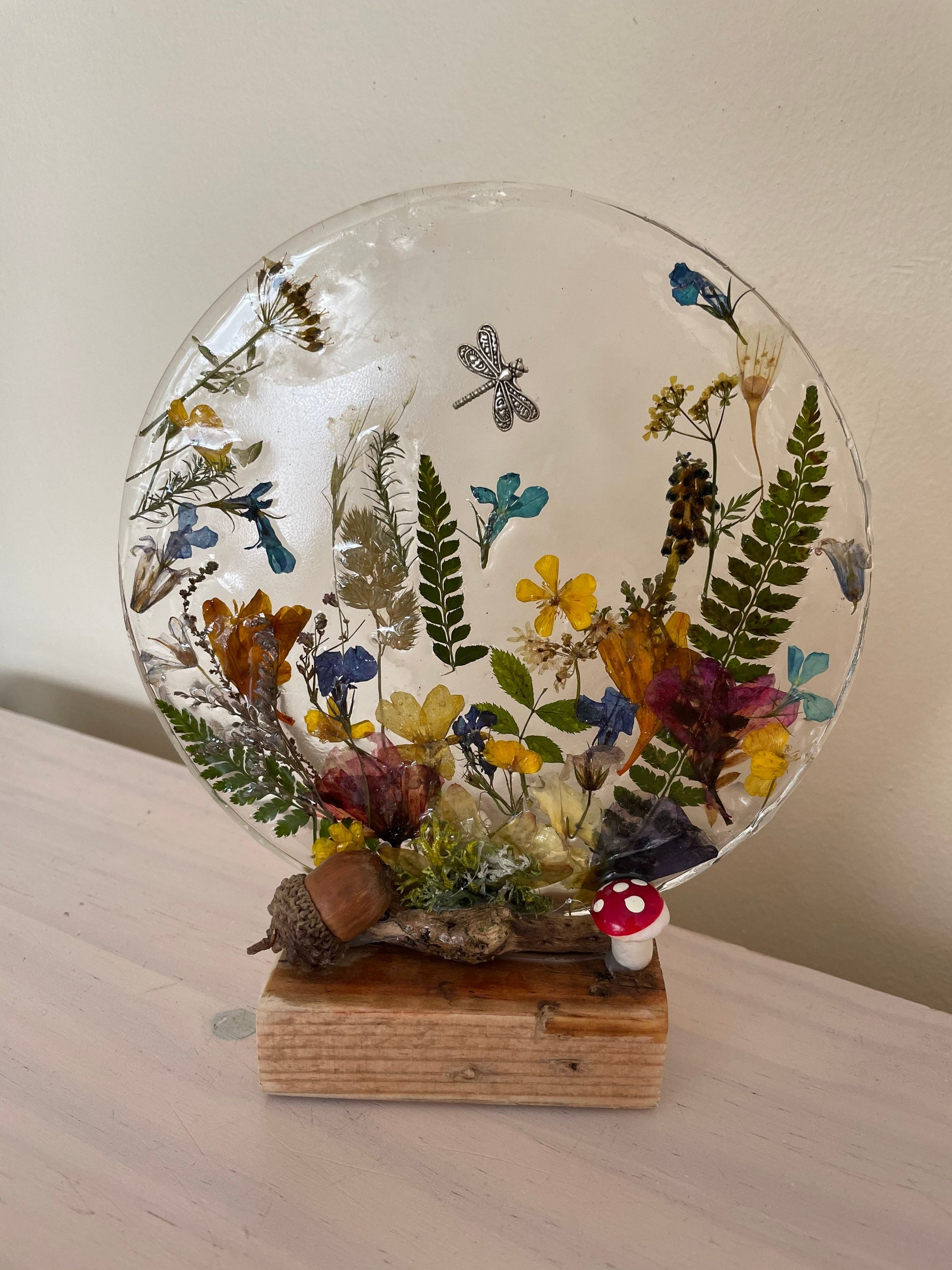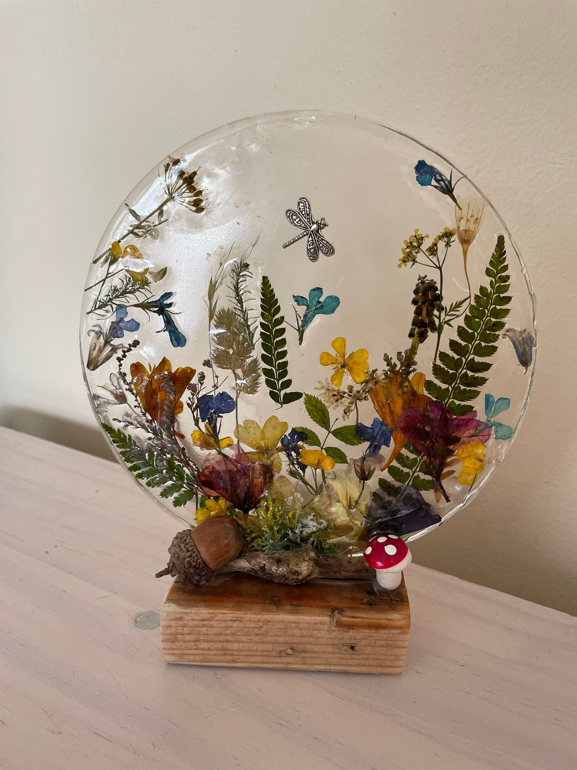 Wildflower and resin unique freestanding home decor, gift for her, birthday gift for nature lovers, English garden resin preservation,