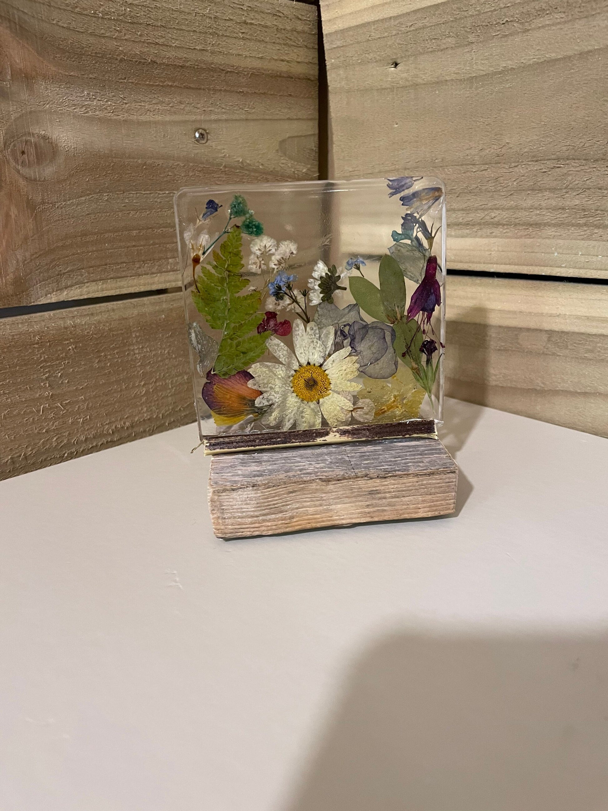 Wildflower and resin unique freestanding home decor, gift for her, birthday gift for nature lovers, Mothers Day gift, flower resin ornament,