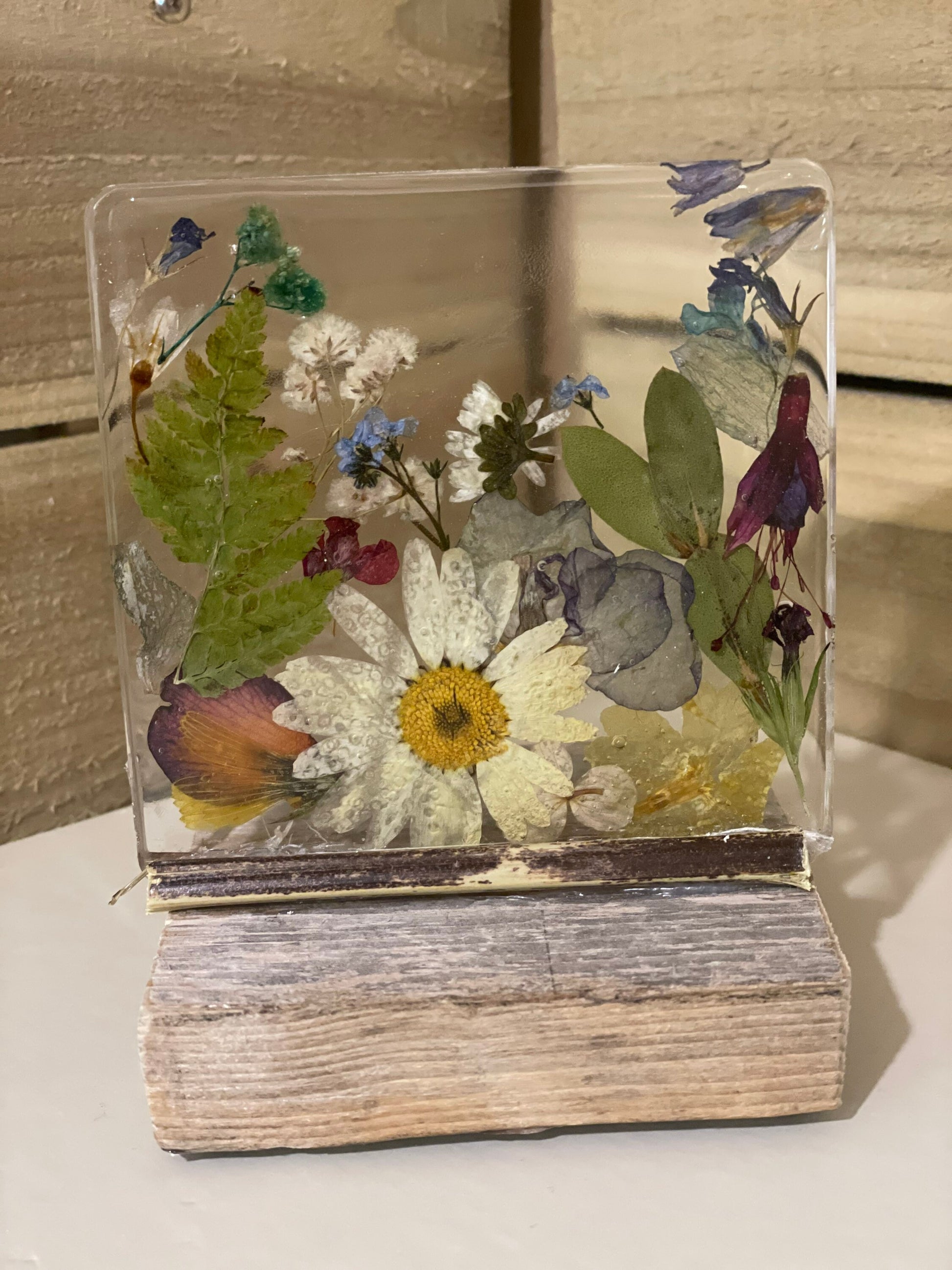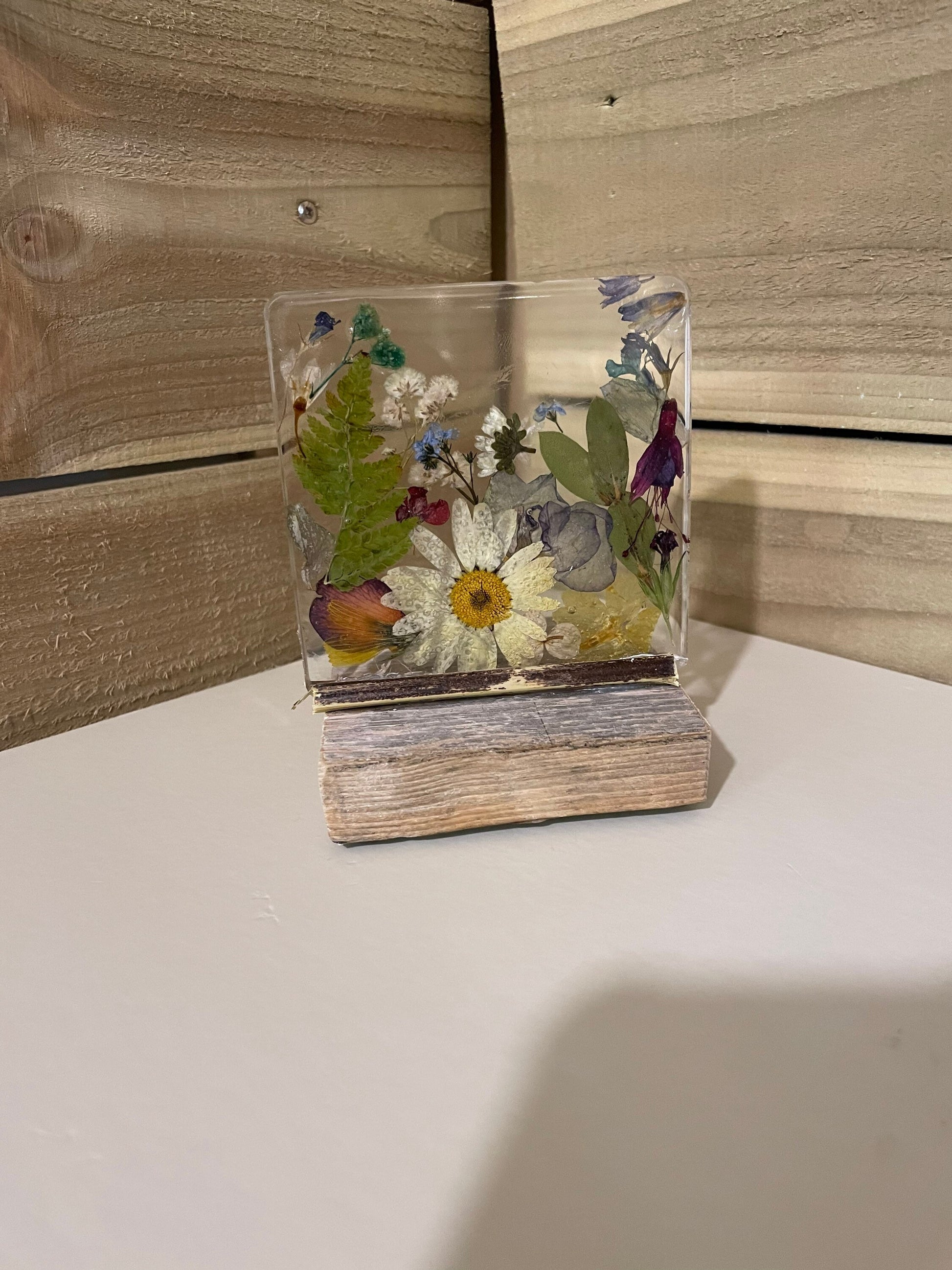 Wildflower and resin unique freestanding home decor, gift for her, birthday gift for nature lovers, English garden resin preservation, valentines gift, Mother’s Day gift