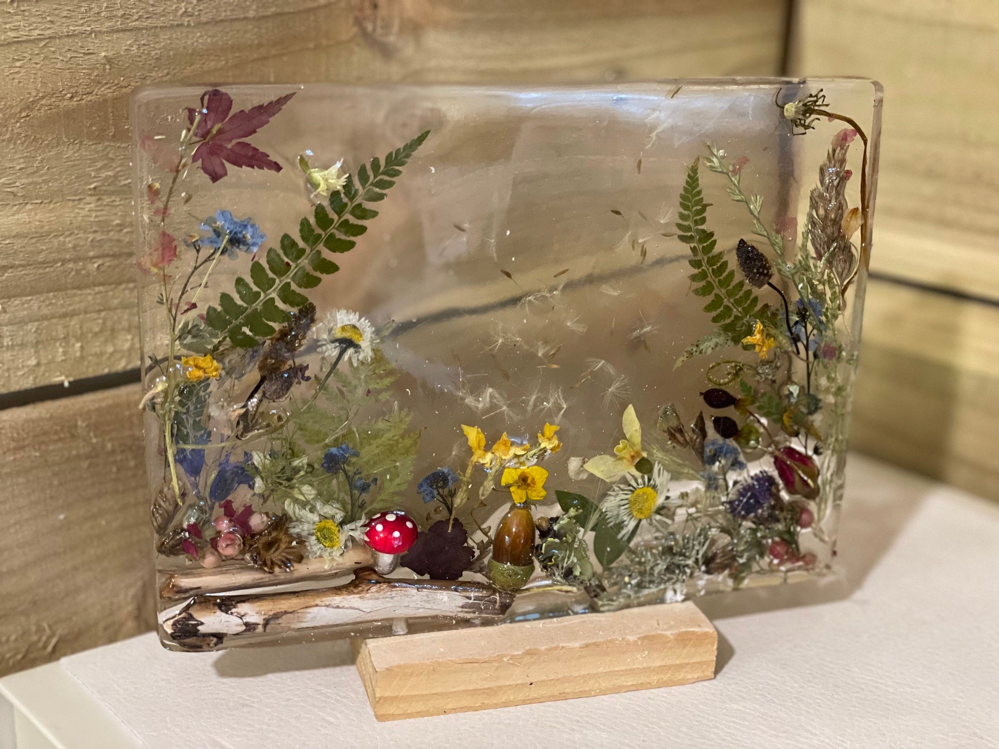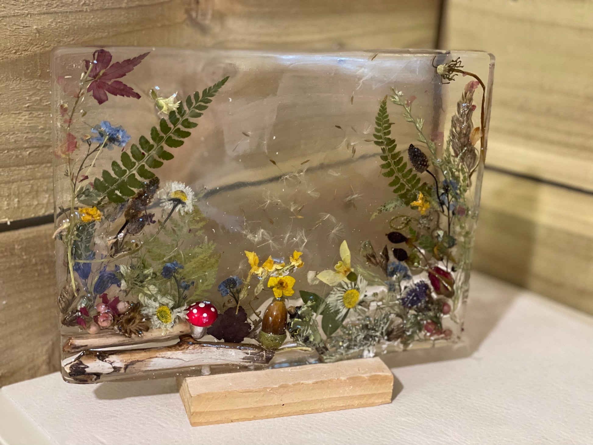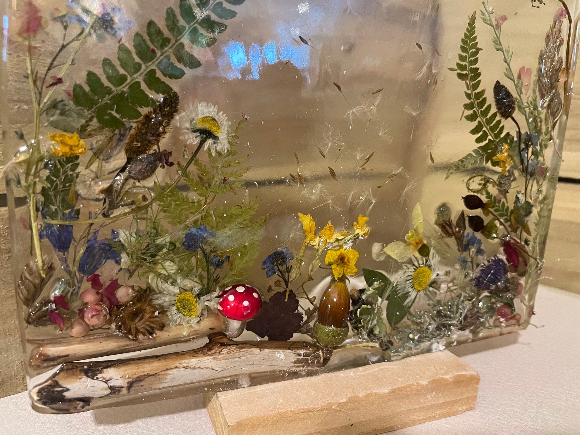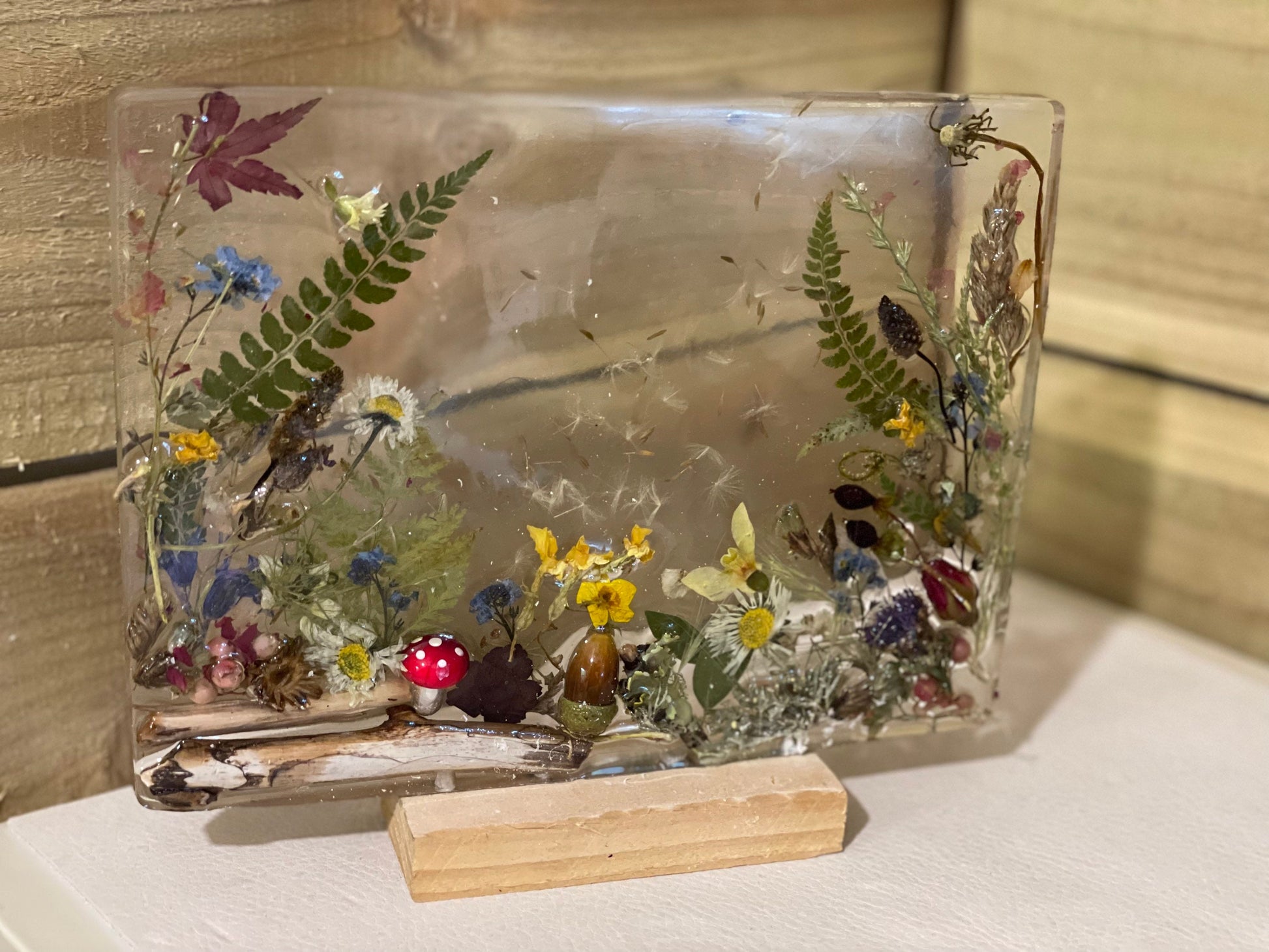 Wildflower and resin unique freestanding home decor, gift for her, autumn birthday gift or nature lovers, English garden resin preservation,