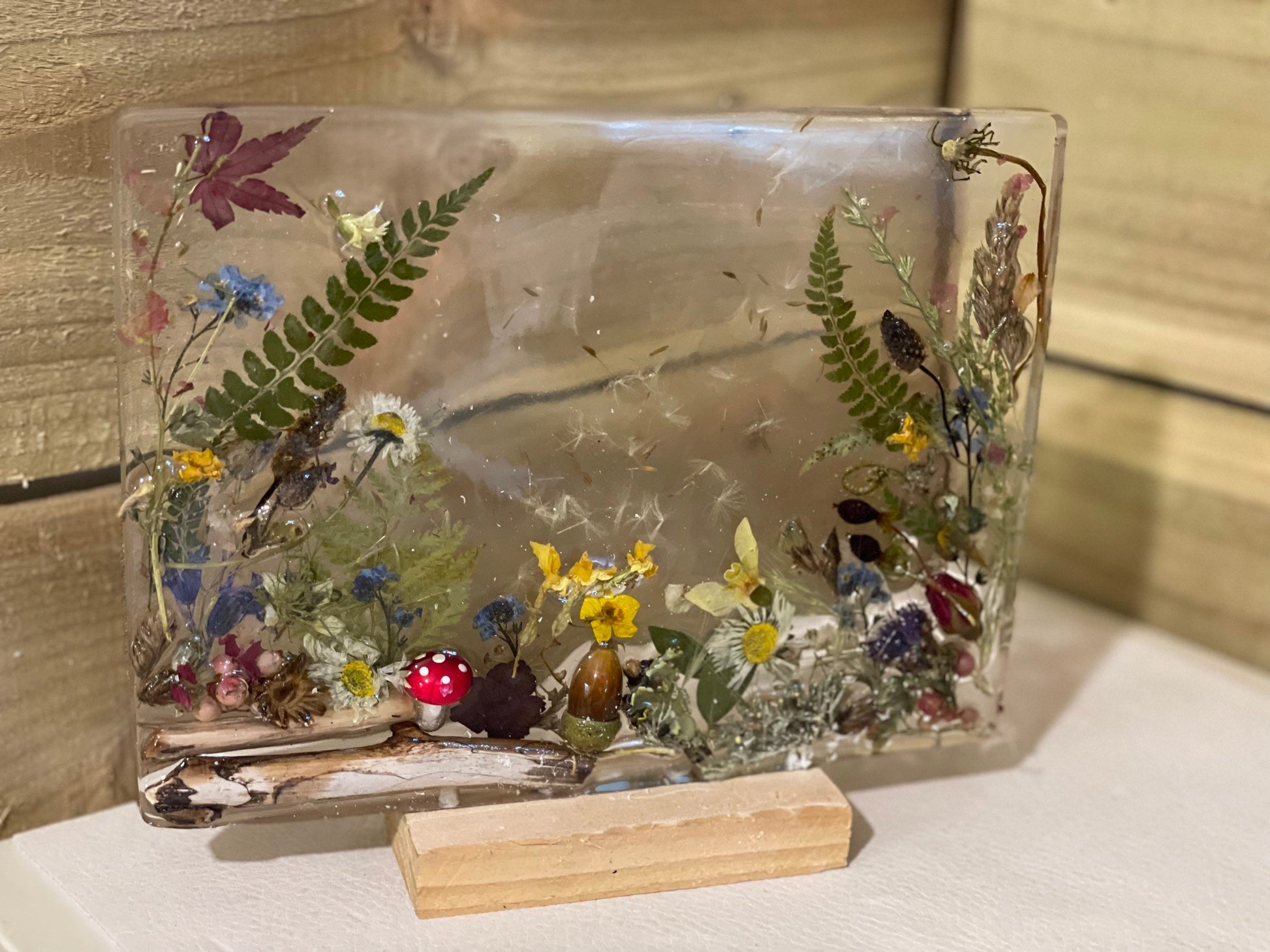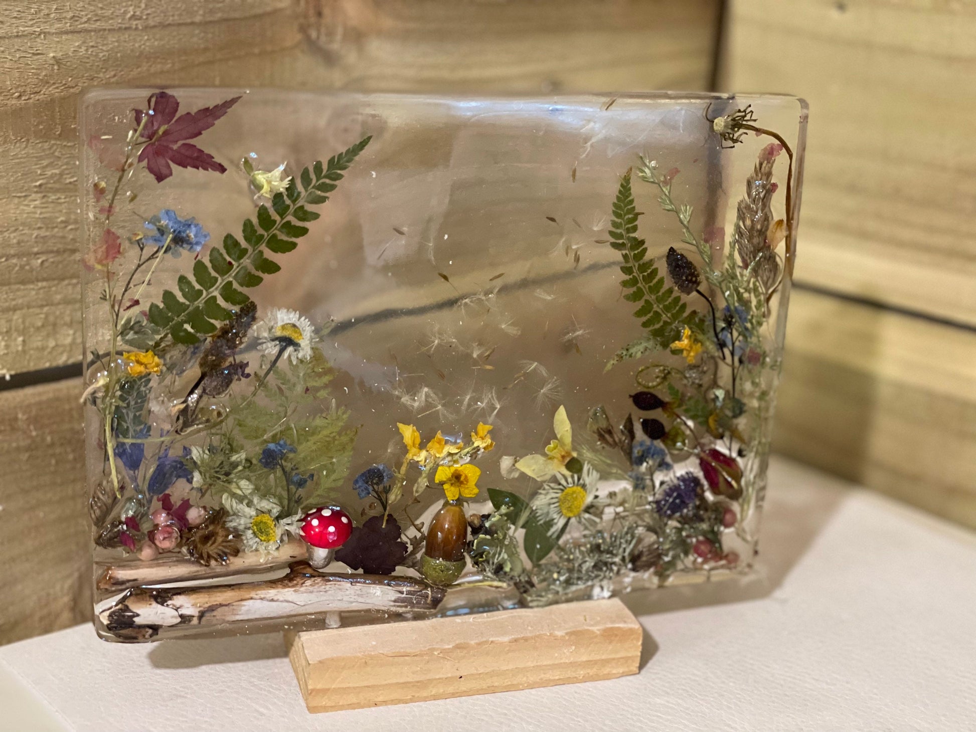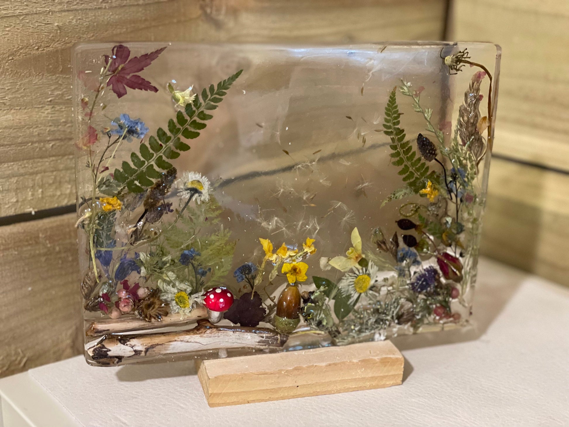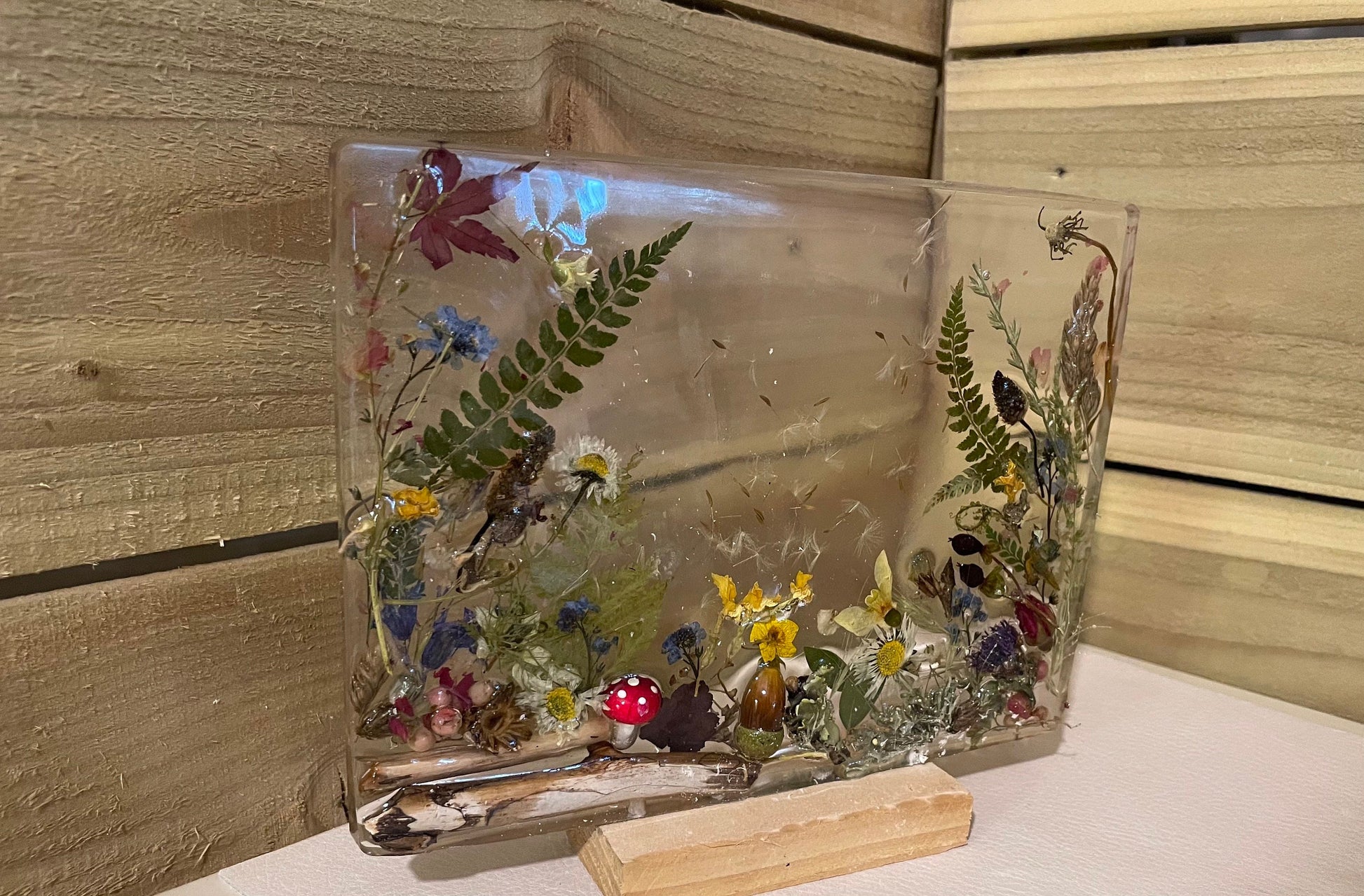 Wildflower and resin unique freestanding home decor, gift for her, autumn birthday gift or nature lovers, English garden resin preservation,