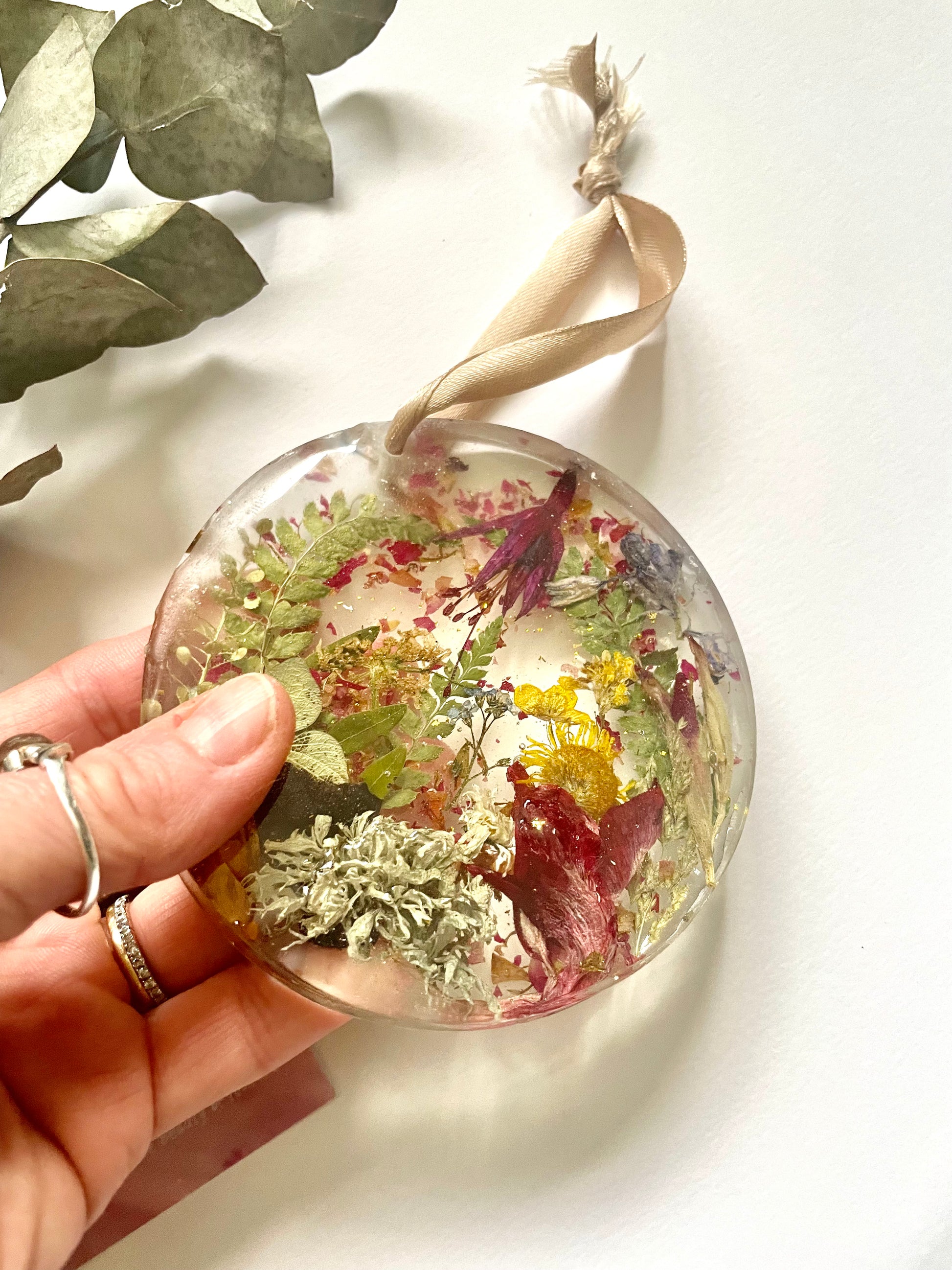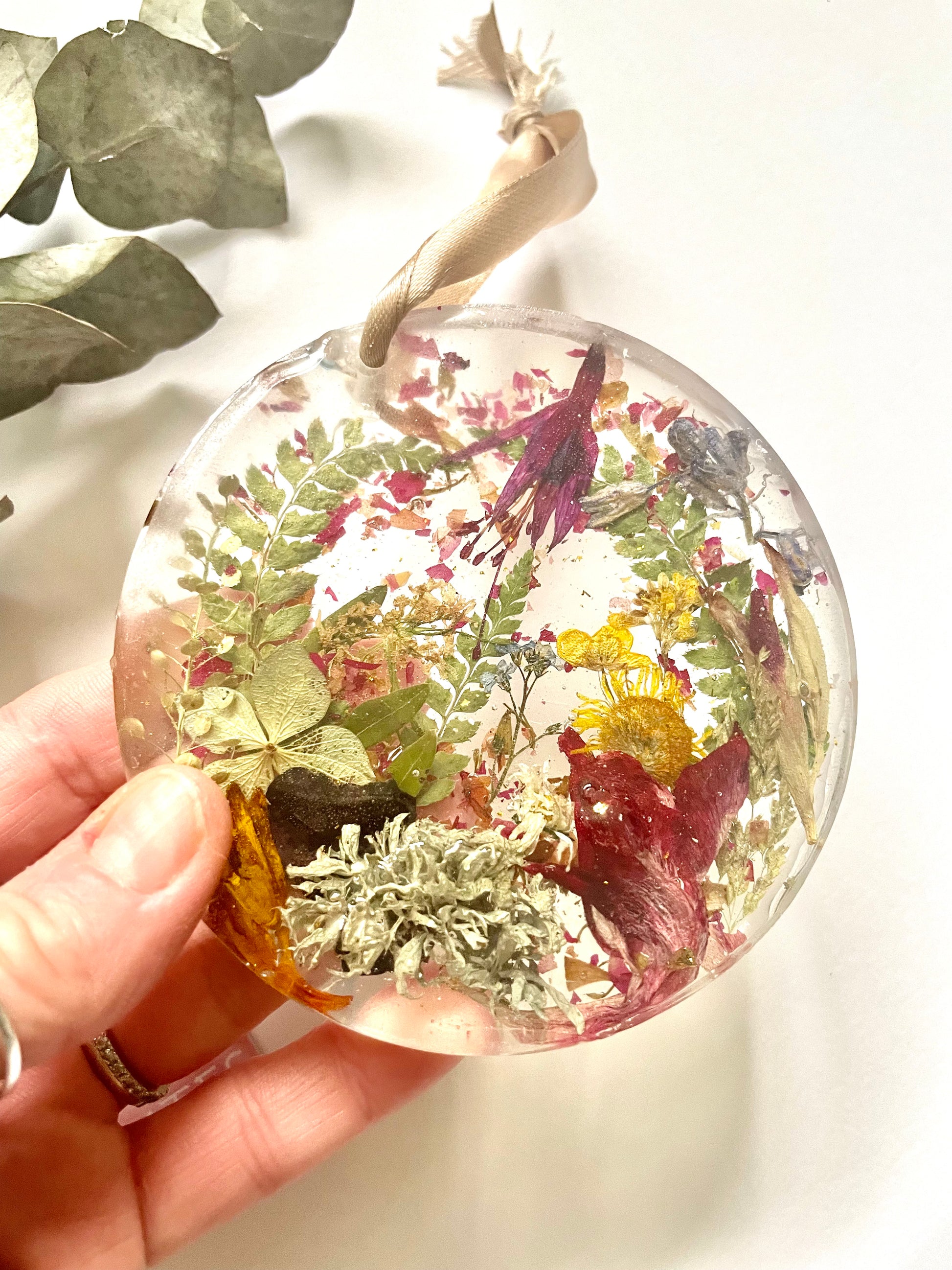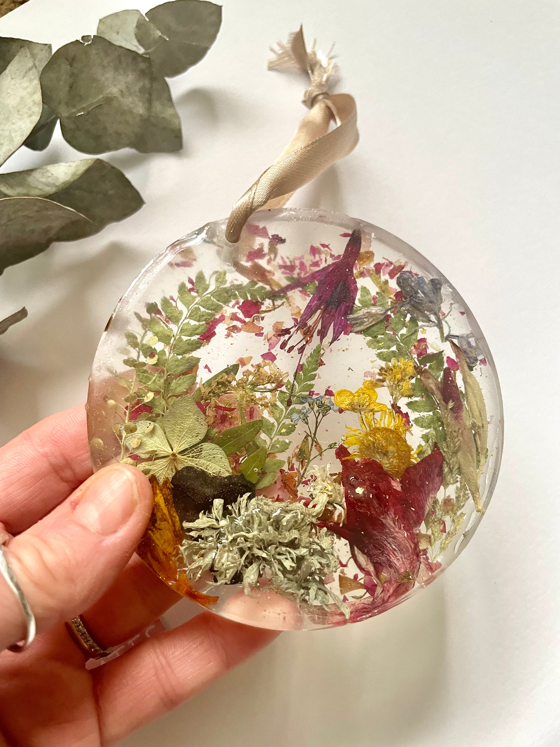 Wildflower resin disc hanging decoration