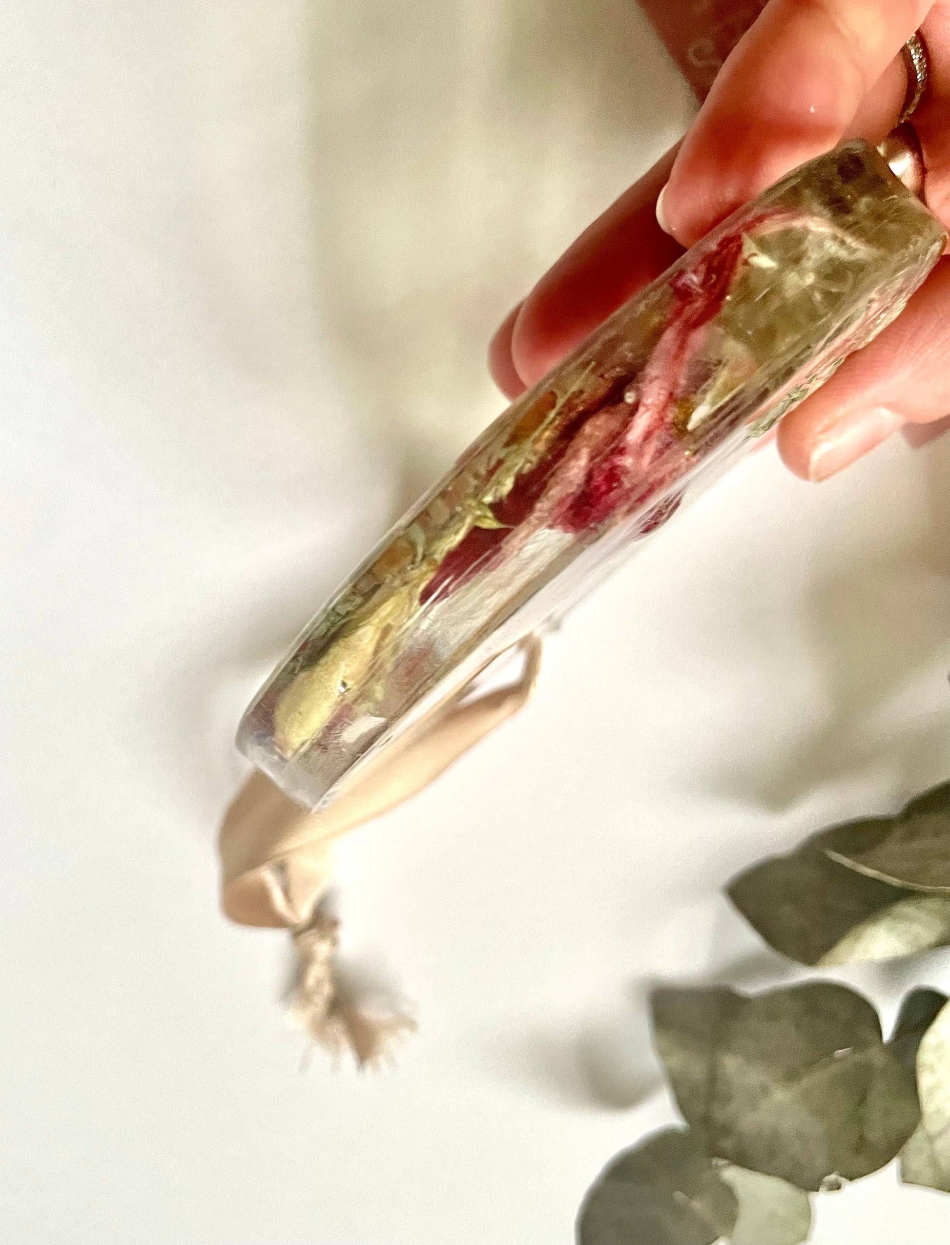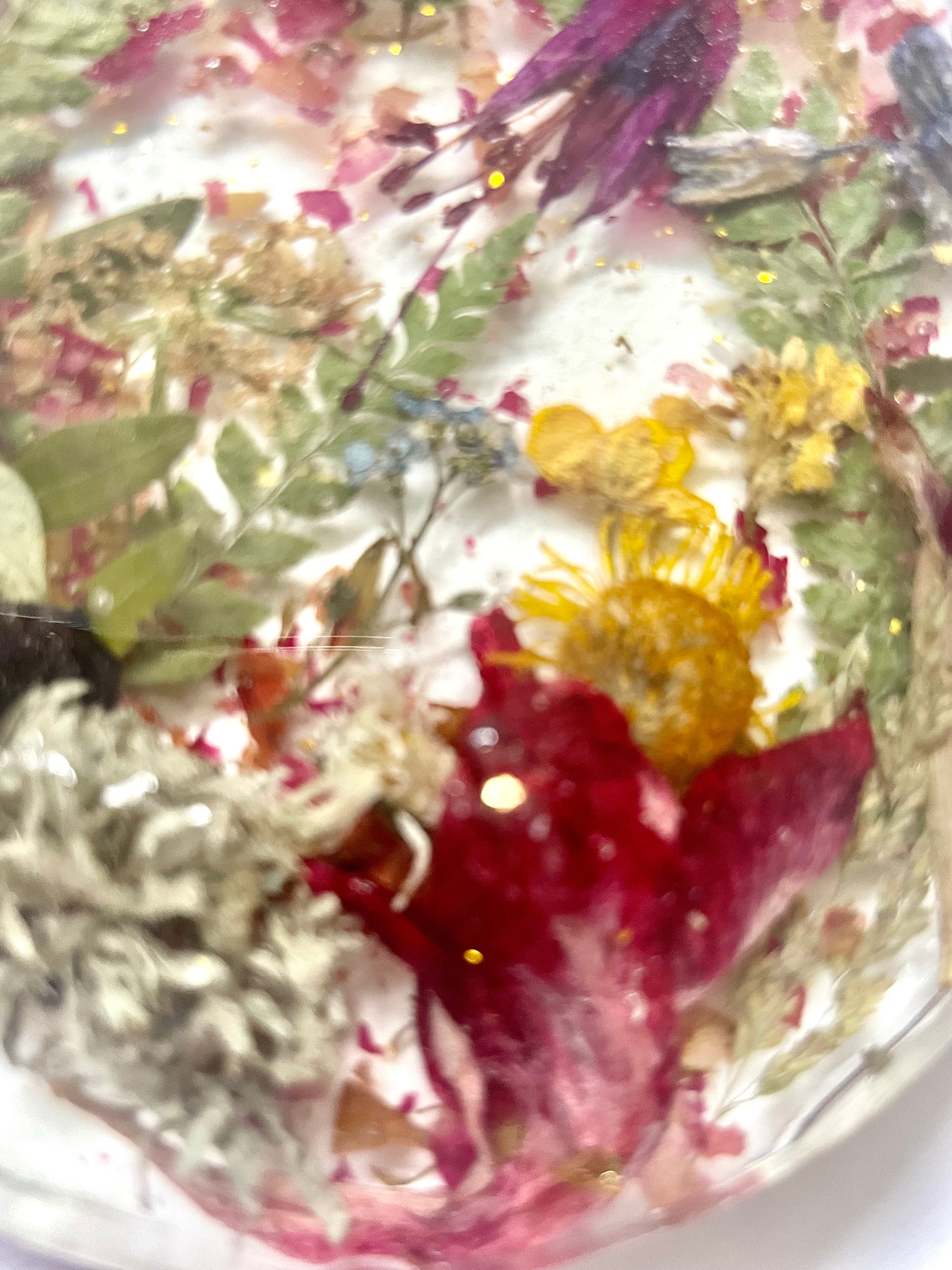 We only use real flowers and sometimes this means that the style of flower may vary slightly in each set but they will always be a close a match as possible and items will always be as full if not more so than the ones in the photographs. All of our items are unique and handmade with love and care using real pressed flower and foliage preserved in epoxy resin. We grow as many of our own flowers as we can, but occasionally we do have to outsource to meet demands. Due to the nature of the flowers and the resin itself, some imperfections and air bubbles can occur, we use the best quality materials we can find to keep these as minimal as possible.