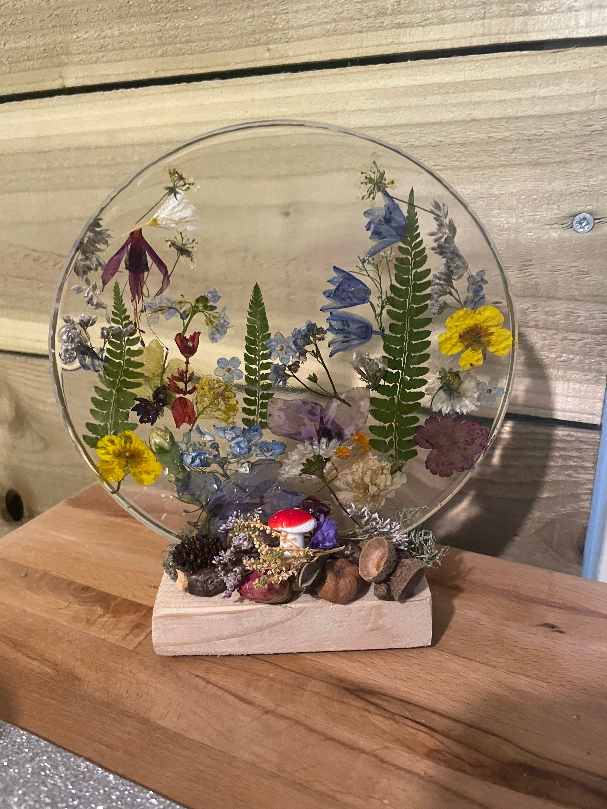 Wildflower and resin unique freestanding home decor, gift for her, birthday gift for nature lovers, English garden resin preservation